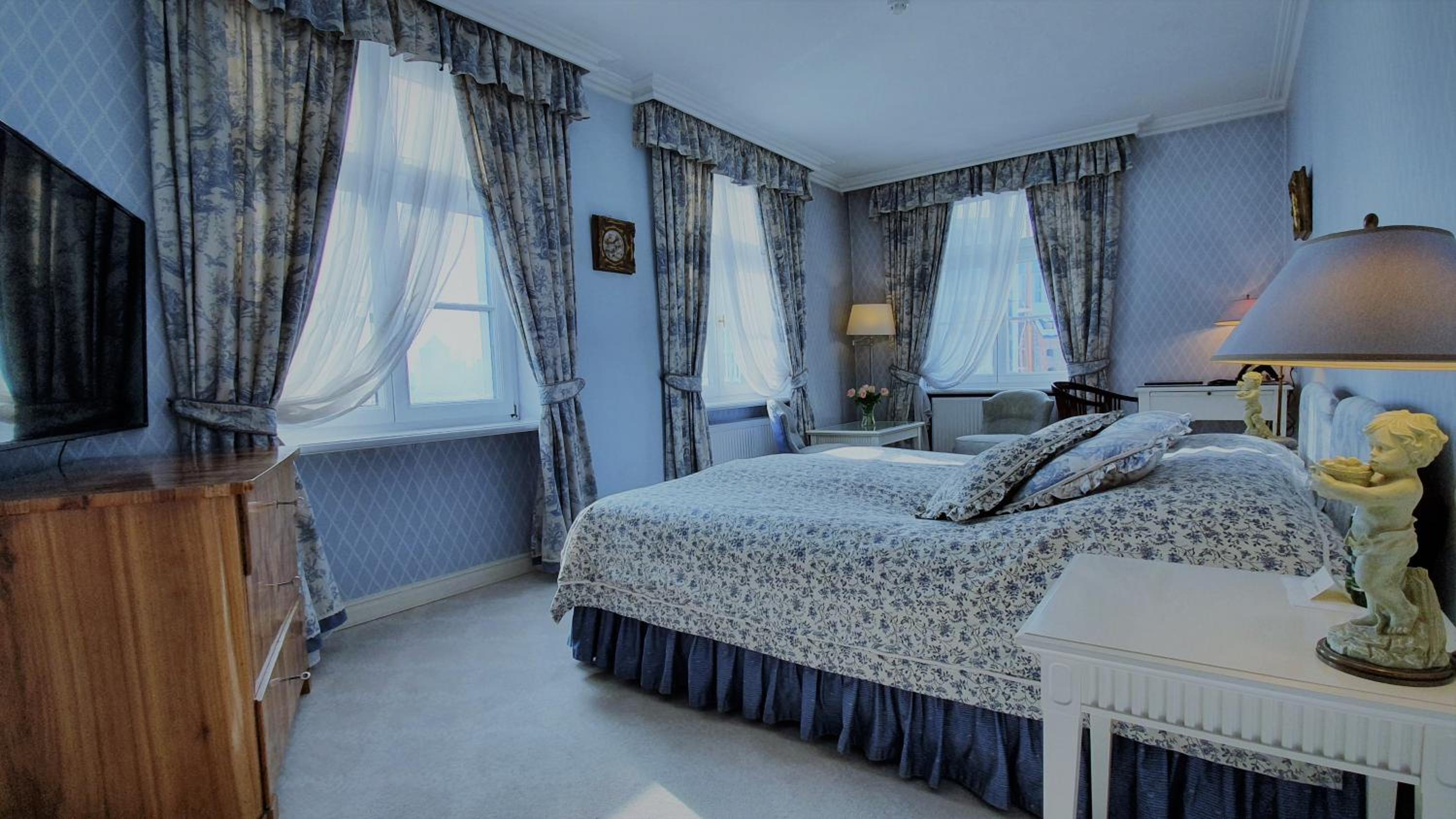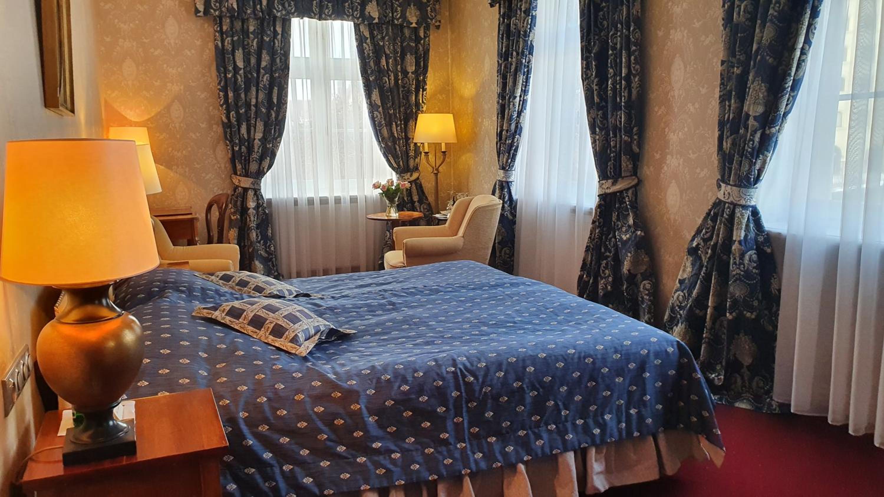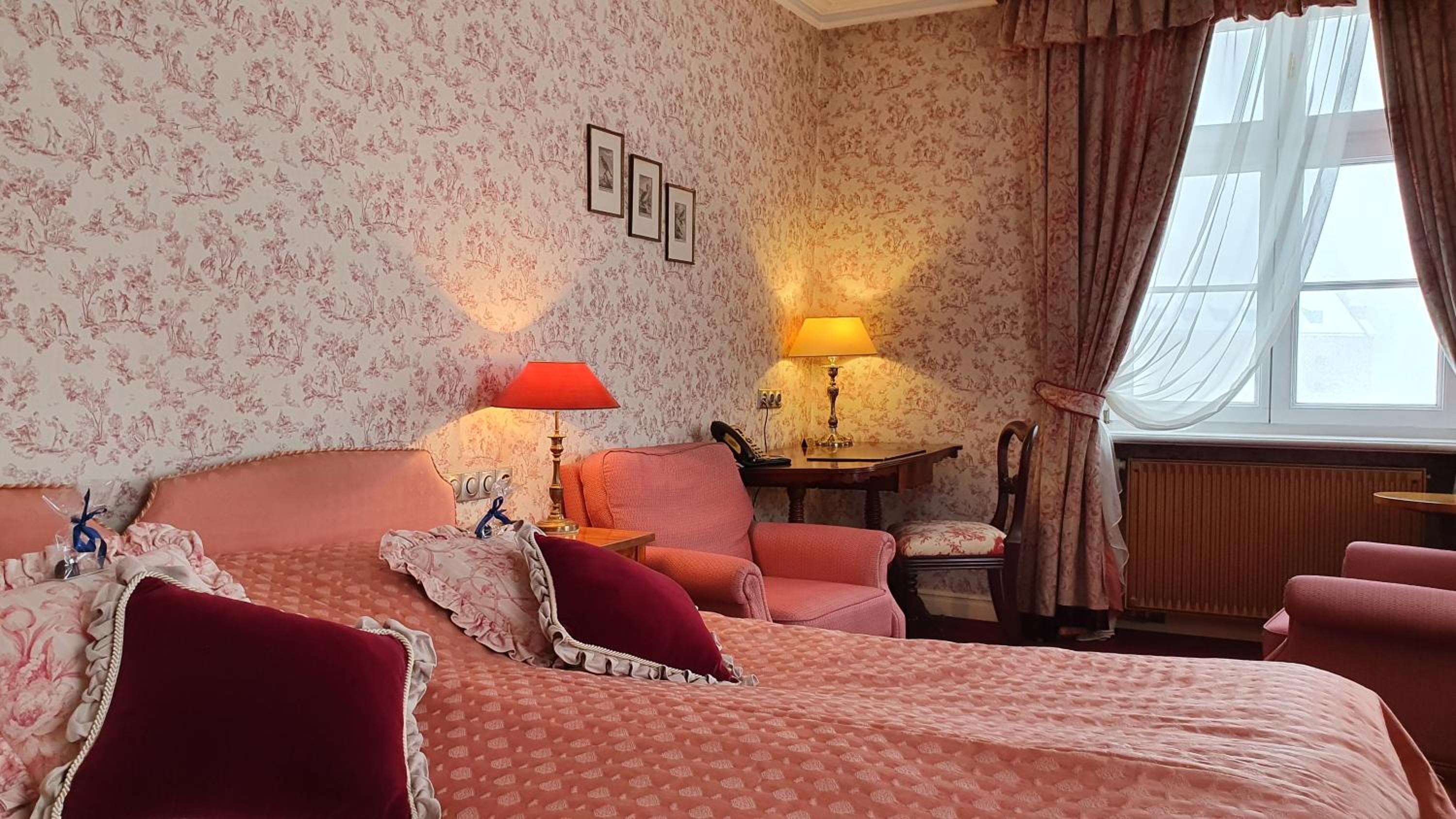 This is an old elegant hotel with very attentive staff & the cleanliness was exceptional. The location was just right, close enough to easily access the old town but far enough out of the way of rowdy night goers. The room facilities were good with a kettle, tea, coffee & a large glass bottle of water which was refillable. There is a mini bar (chargeable), a safe & dressing gowns with slippers. Plenty of hanging space with lots of hangers & good sized drawers.