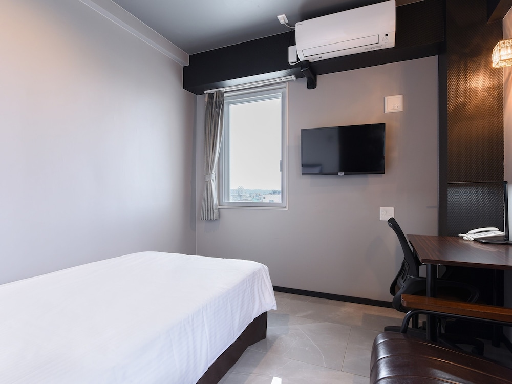 The room was very compact, and very new inside. Welcome staff were located on the second floor, and not on the ground floor, so it was a bit confusing on my arrival. After 15 minutes of looking around; the staff from the second floor came down to greet me; and I got checked led in. The language barrier was very real; as my Japanese was non existent. Google translate helped. I was travelling solo by bicycle around the island, and wanted to keep the bike in my room. This was permitted. The building elevator was tiny; and had to stand the bike vertically, to fit the elevator. But it did work just fine, and the bike stayed with me on the 7th floor. There were a lot of local food options near by. Ate supper at a 4 seasons stake house; and breakfast at a coffee shop; lots of them around.