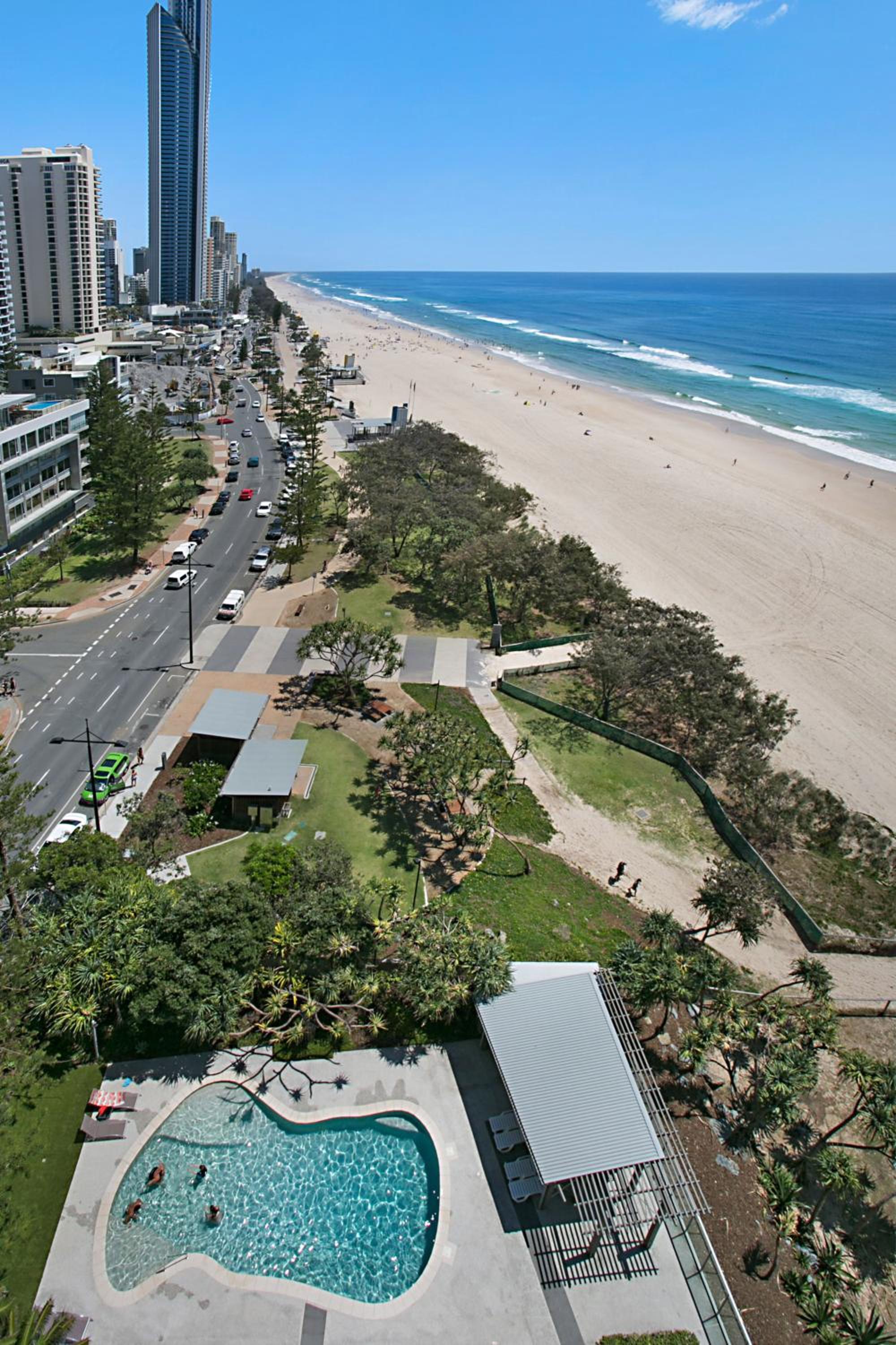 Un emplacement idéal à proximité de Cavill avenue et à deux pas de la plage. Un « appartement deluxe » avec des équipements de qualité et climatisé. Et surtout une vue imprenable sur la mer.