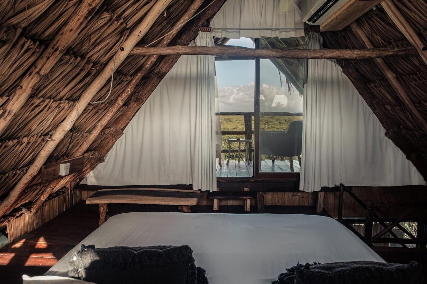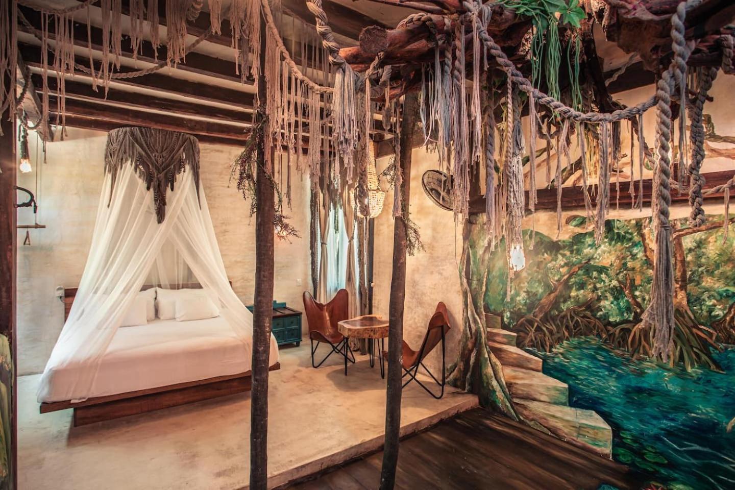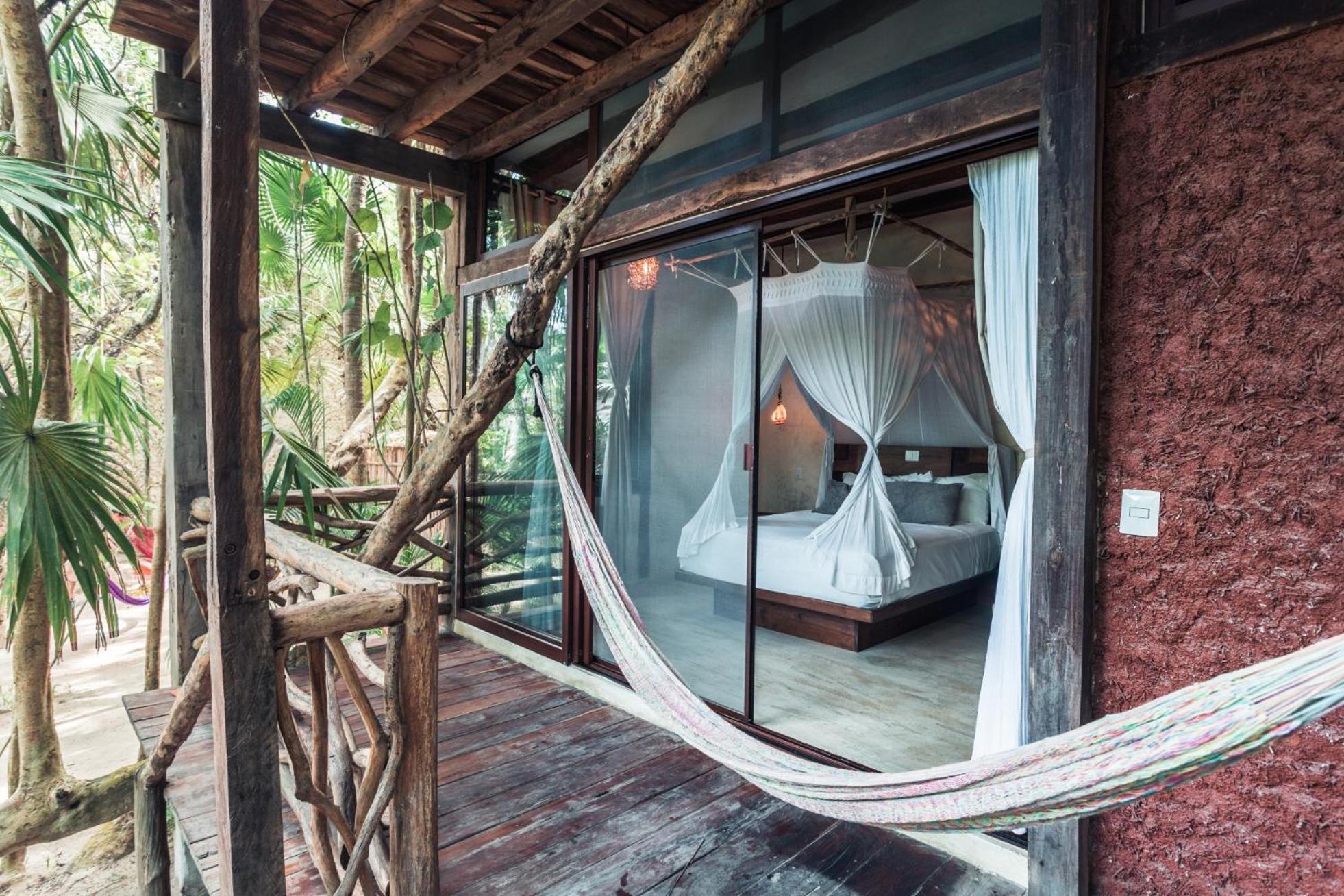 Escape to Hidden Treehouse Tulum Eco-Hotel, nestled in the heart of Tulum's natural beauty. Embrace tranquility in our air-conditioned rooms with free WiFi and private bathrooms.