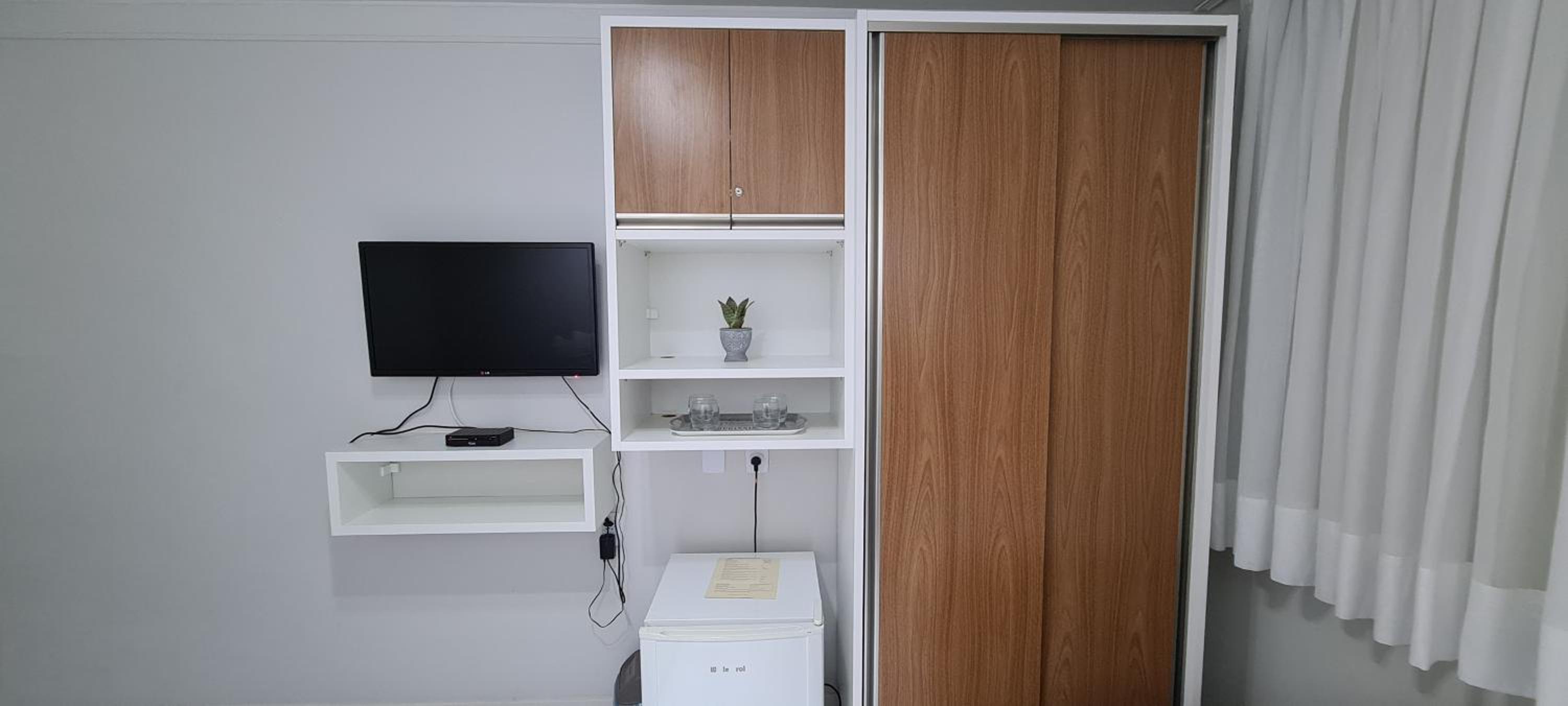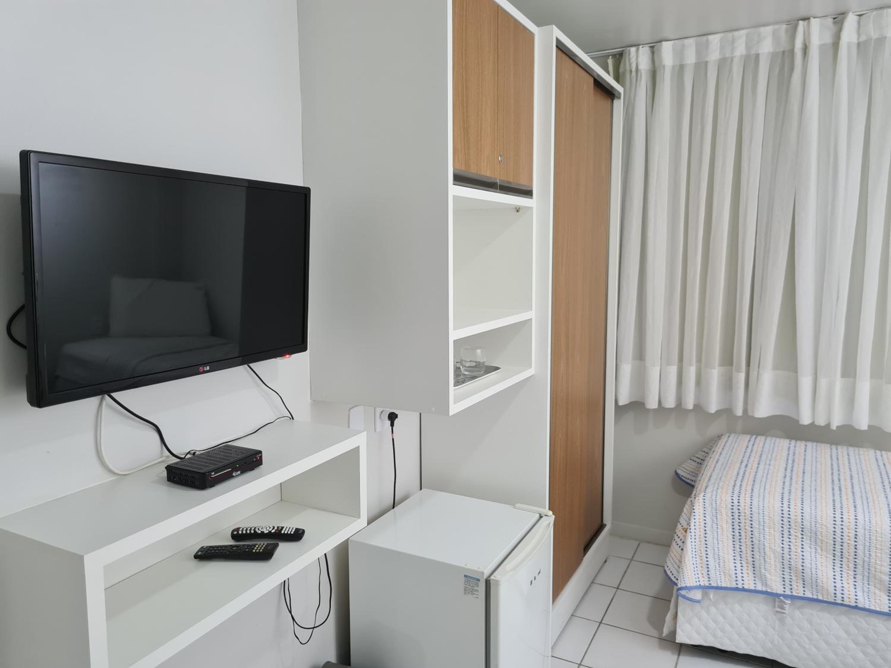 colchão é confortável, local e maravilhoso. deveria ter copos no quarto e forno microondas. o proprietário deveria entrar com um acordo com hotel pra ter limpeza no quarto todos os dias.