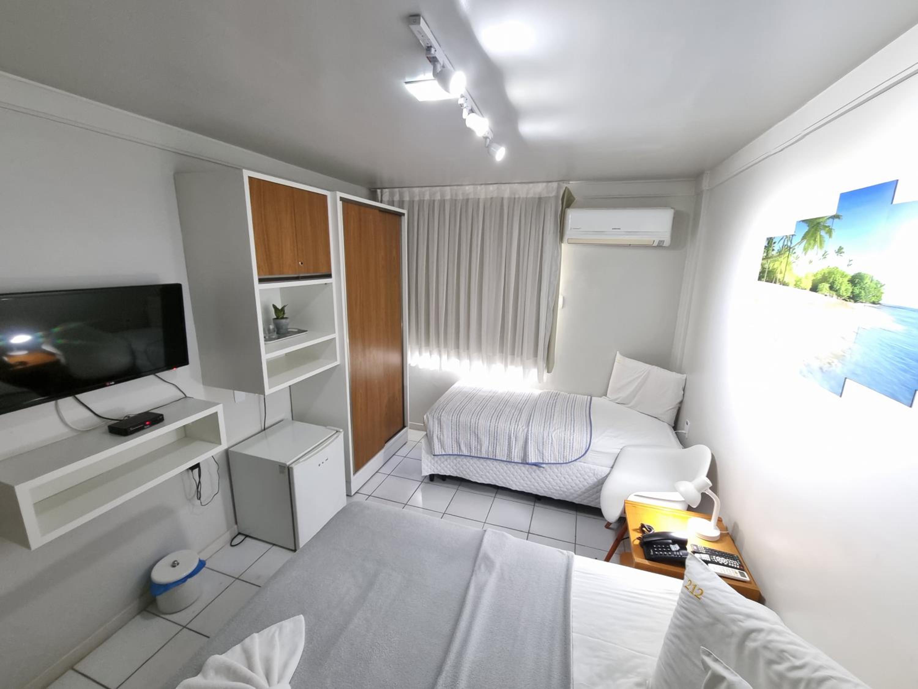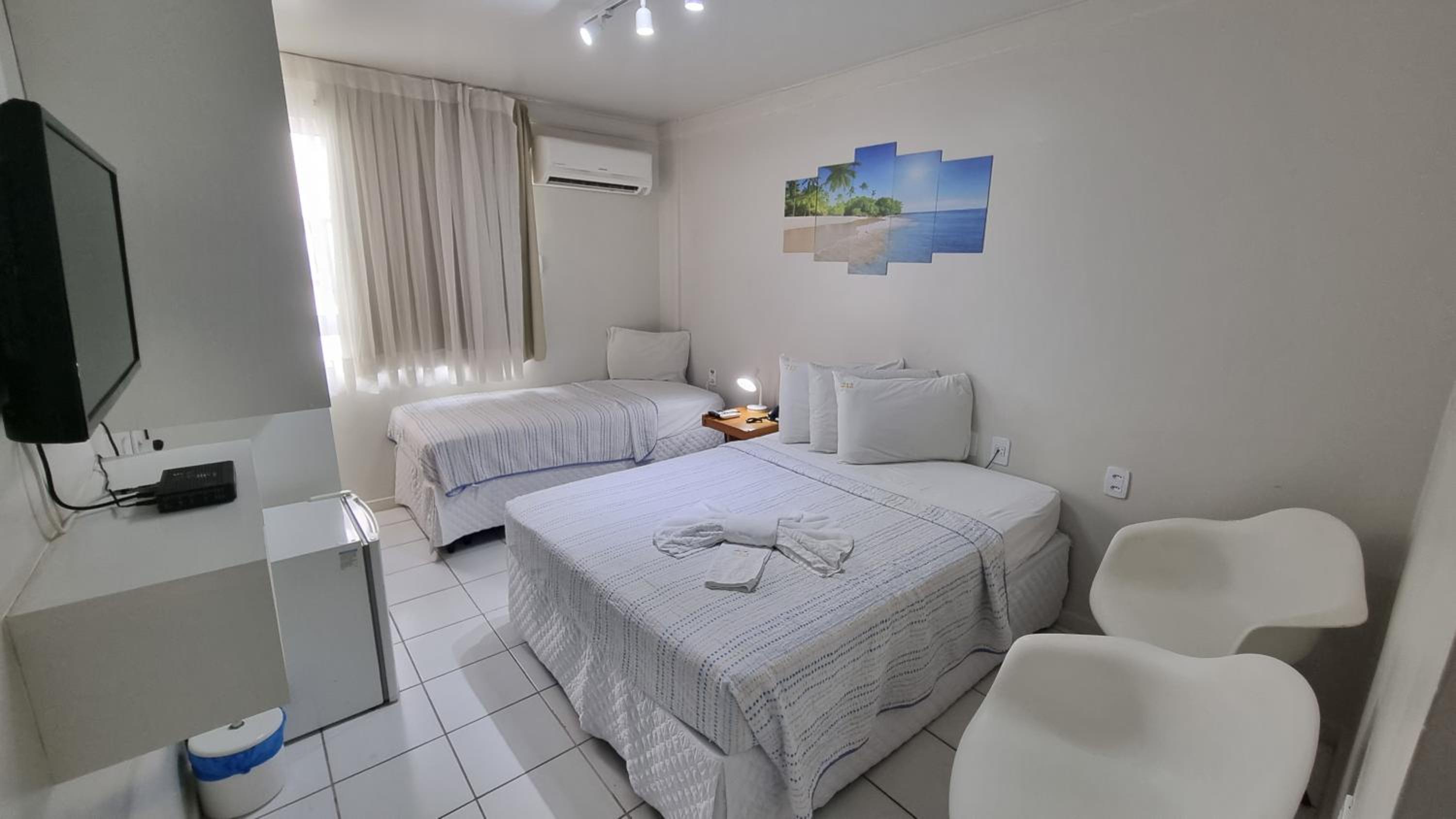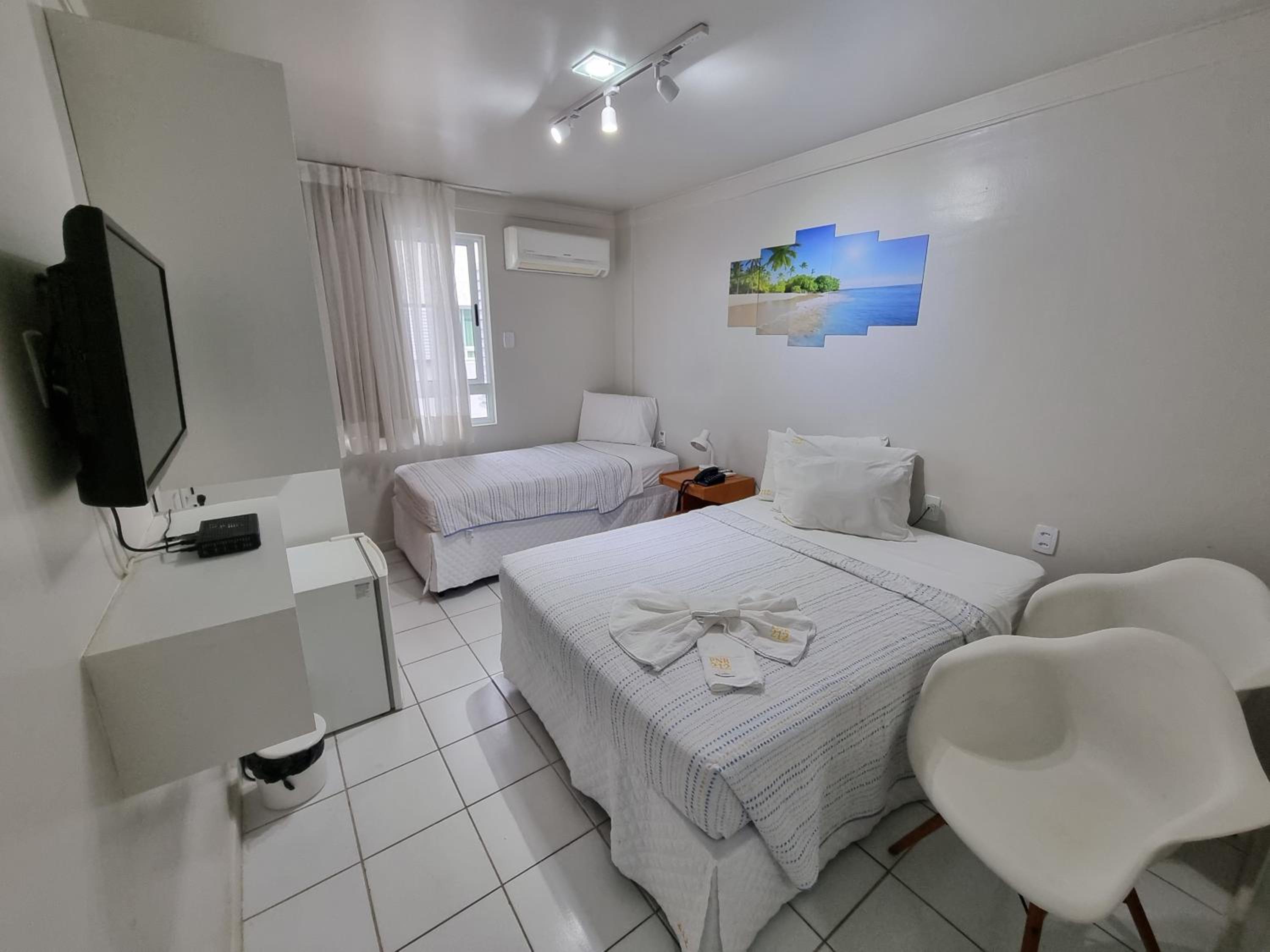 tive que pedir pra trocar as toalhas no 3 dia e como estamos local de litoral, guando voltamos do passeios chegamos com areia e eu esperava que pelo menos o quarto fosse limpo. como tenho abito de arruma a cama e meu filhos também já saímos deixando-as camas arrumaras. mas se fosse esperar pra alguém organizar ficaria triste. mas só isso a reclamar falta de limpeza