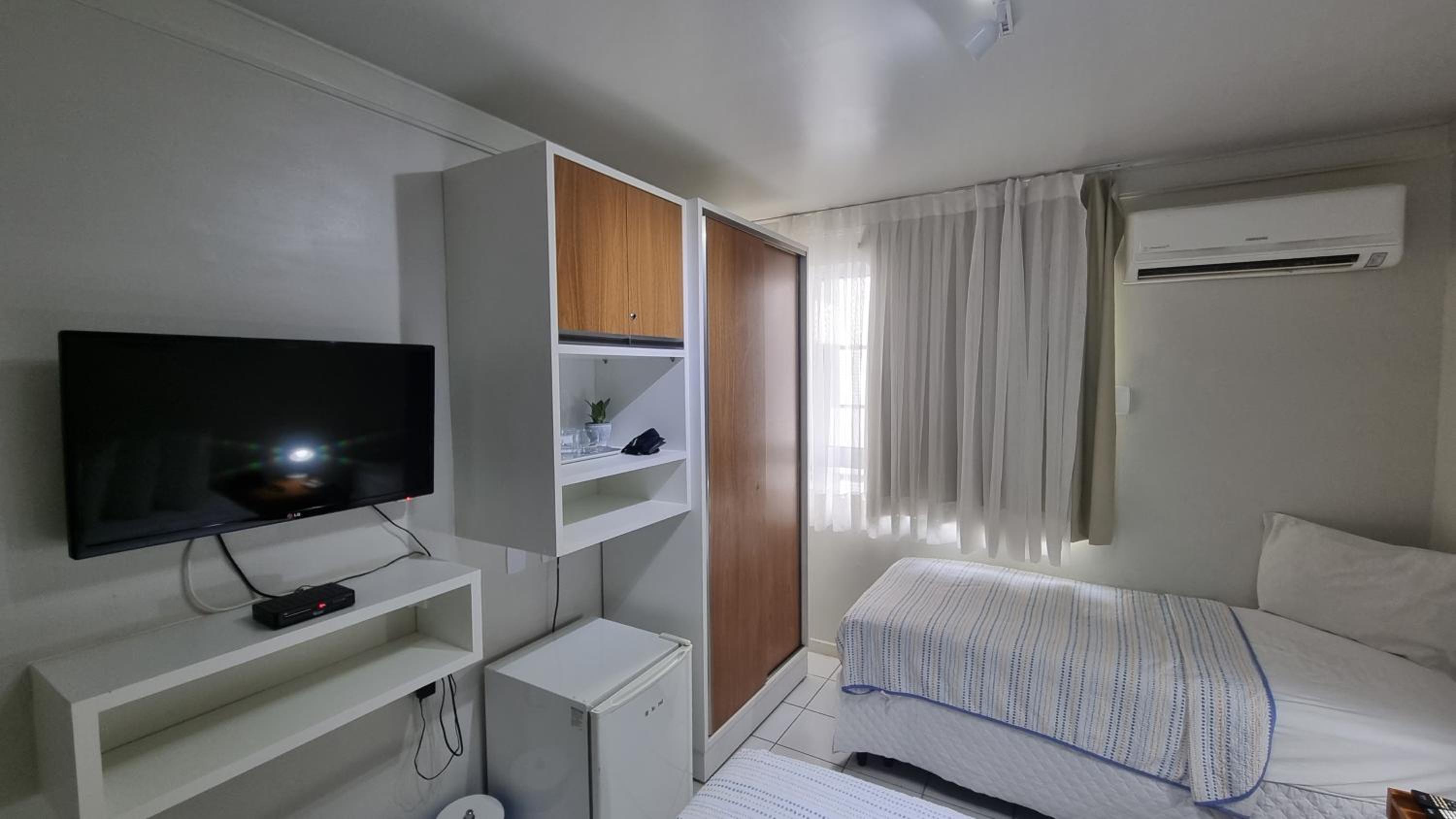 Muito empoeirado, ar condicionado sujo e móveis bastante empoeirados, cortina com morfo, camas ruins.
