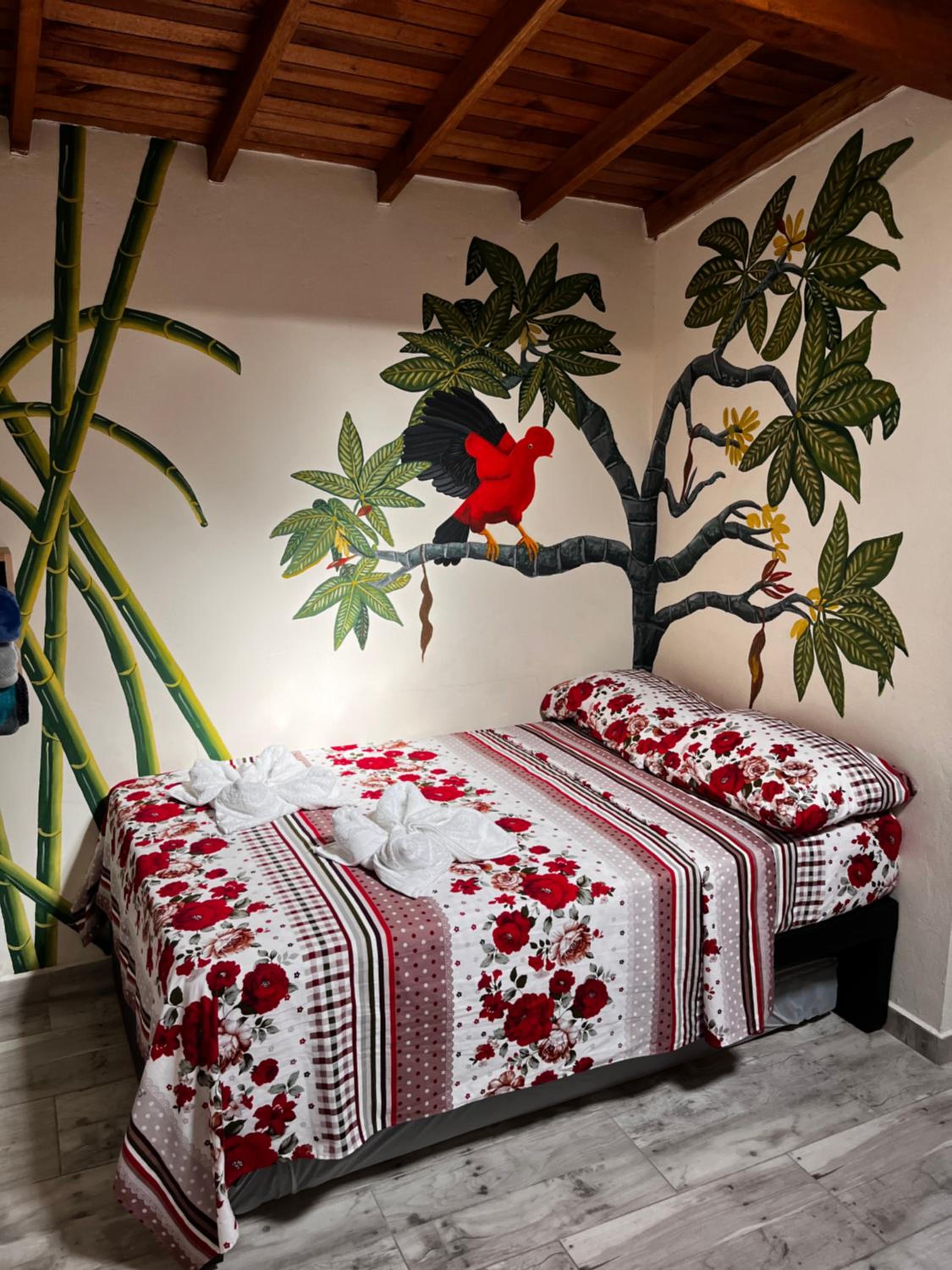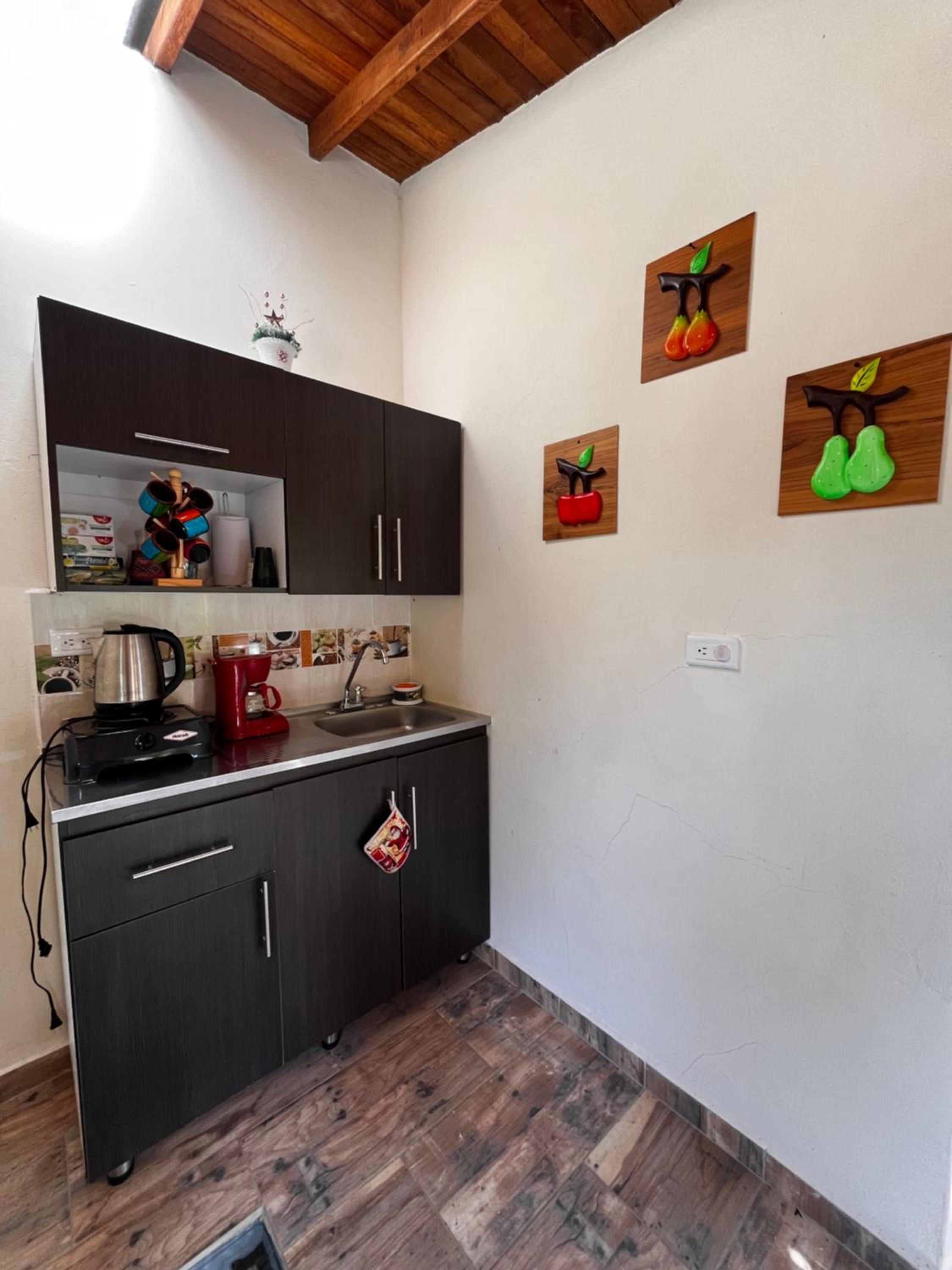 El personal del local se pasa de amable, nos cuidaron como si fuéramos familia, además tenían a disposición 24 horas café ☕ insignia de la región (importante para amantes del café y para jardín y su cultura cafetera). La habitación preciosa y muy limpia, es particularmente delicioso dormir mientras escuchar el sonido del rio que pasa junto al hotel