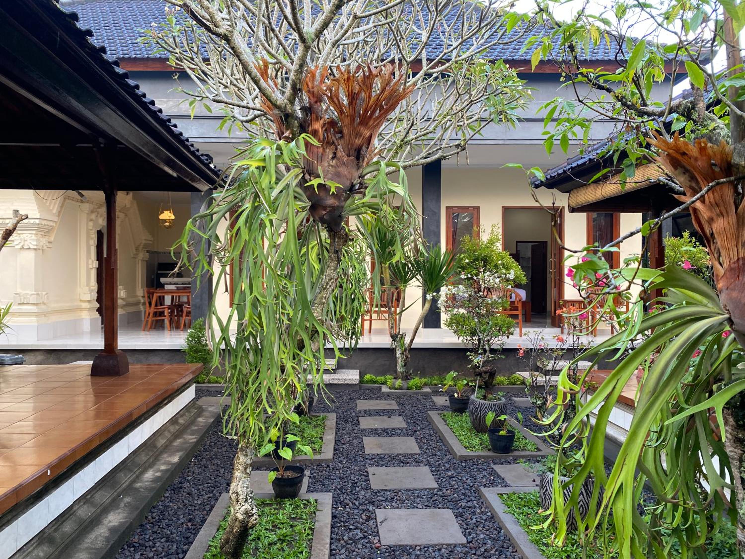 Bojig House Ubud offers a tranquil setting with a lush garden and inner courtyard views. The recently renovated homestay boasts modern amenities, including air conditioning, private bathrooms, and well-equipped kitchenettes in each unit.