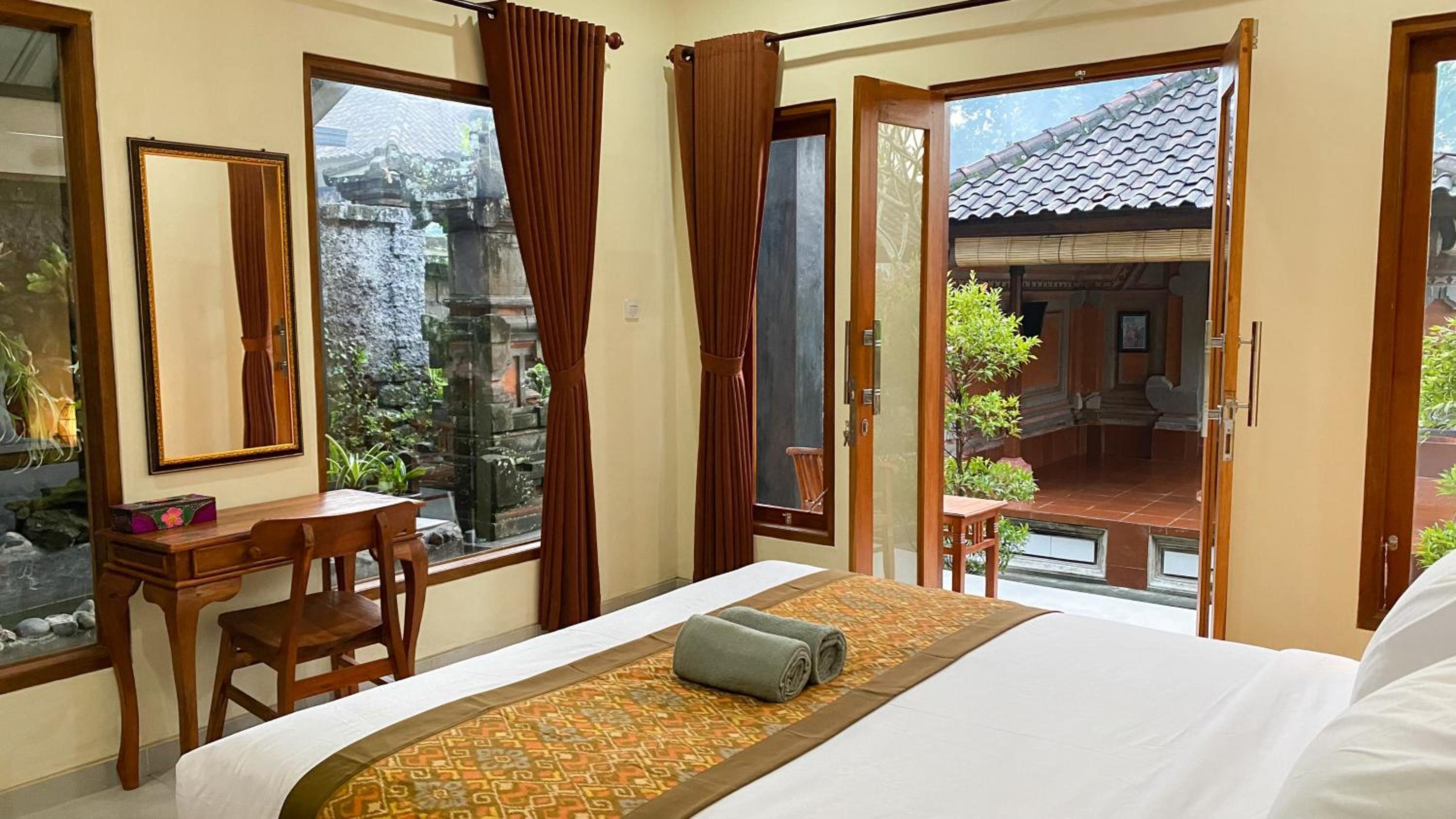 The place is great overall, the owners are very friendly, helpful and keen. The good breakfast with fruit plate will wait for you at your table every morning. The location is good for either going to Ubud or to waterfalls, butterfly park, reptile park, etc. in Sukawati area, while being in a calm side street.