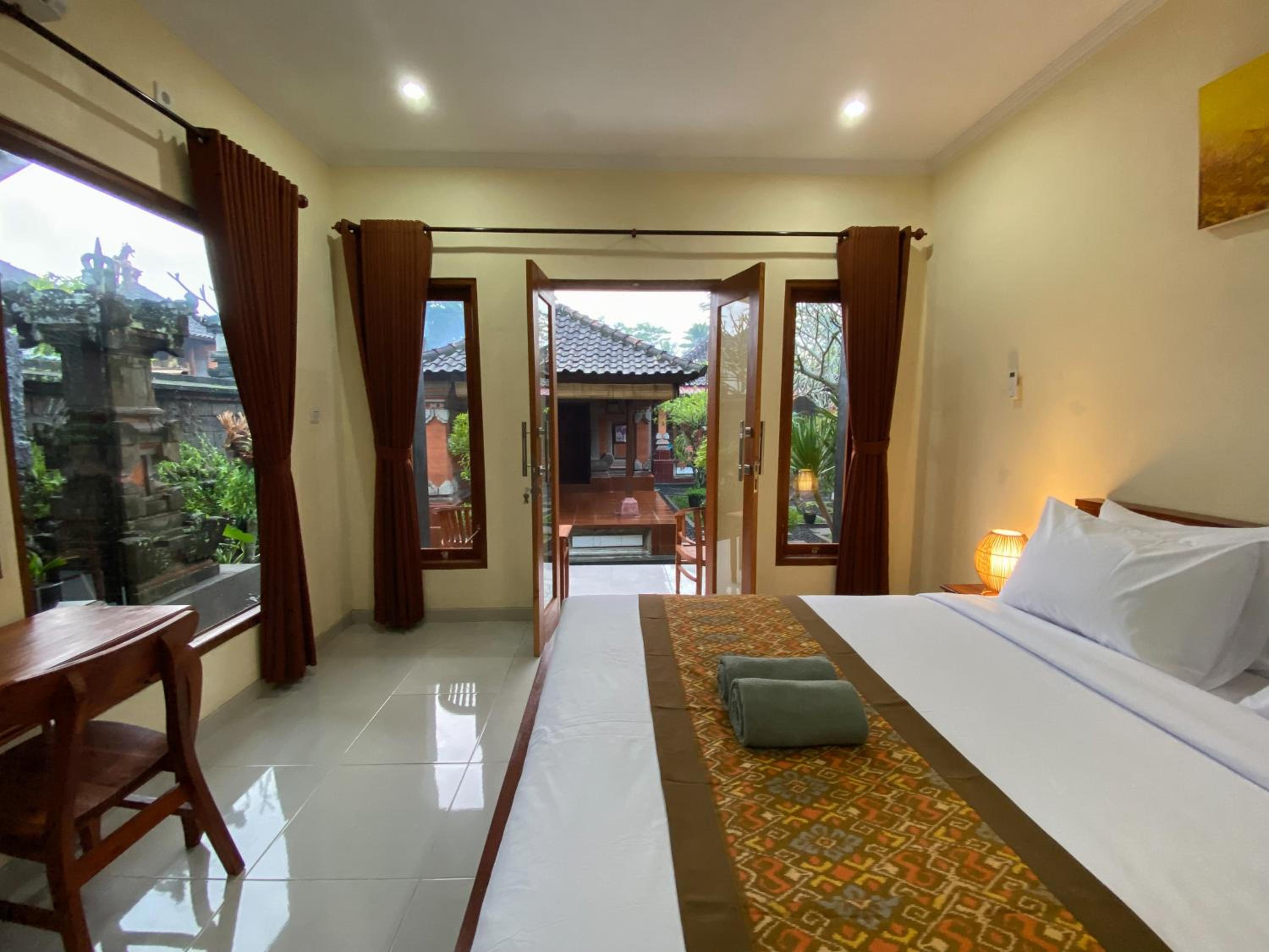 La chambre est très propre et bien équipée, le jardin et la terrasse sont agréables et l’emplacement est au calme, à environ 10 min en scooter du centre ville d’Ubud. Riska et sa famille sont très gentils et accueillants.