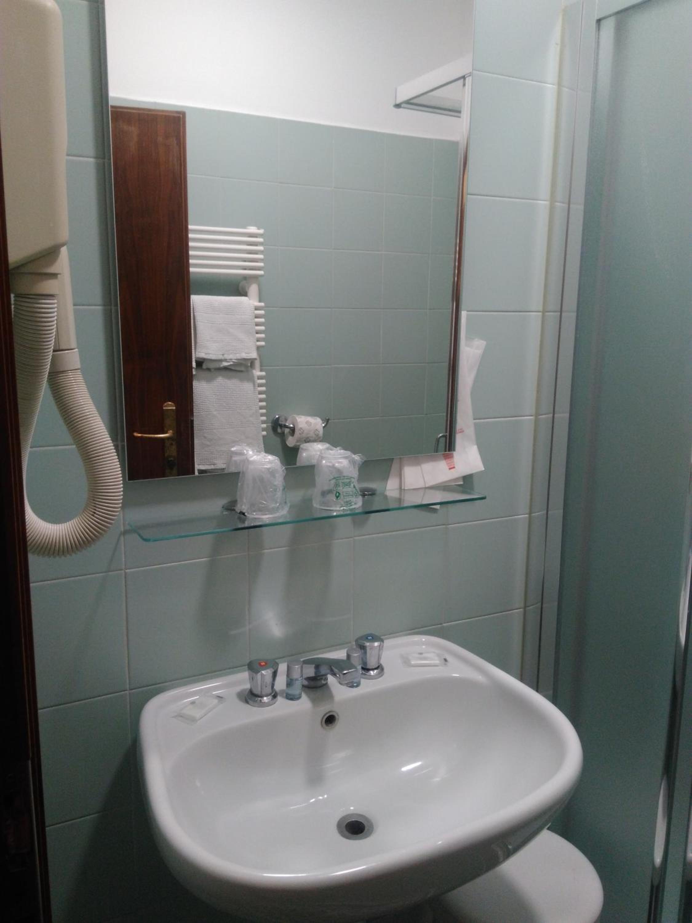 Il bagno della nostra camera aveva una porta a soffietto e durante la doccia era necessario mettere un asciugamano in terra per non allagare il bagno