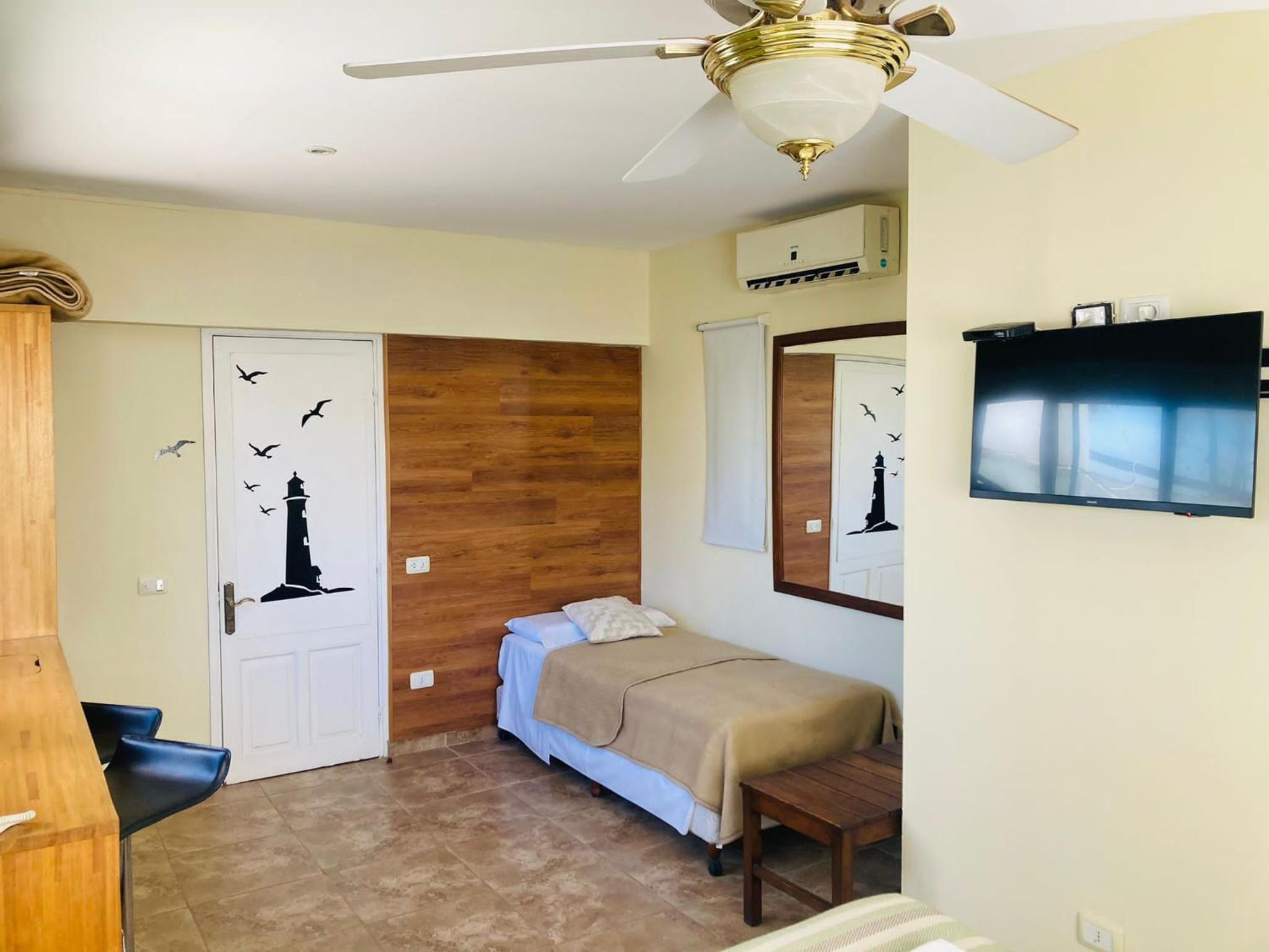 Las habitaciones son en un primer piso por escalera y no lo vi aclarado en el anuncio. Le falta mantenimiento a las habitacion ya que se rompio la tecla del baño, el decodificador de la tv nologre hacerlo funcionar y se tapa la pileta del lavatorio