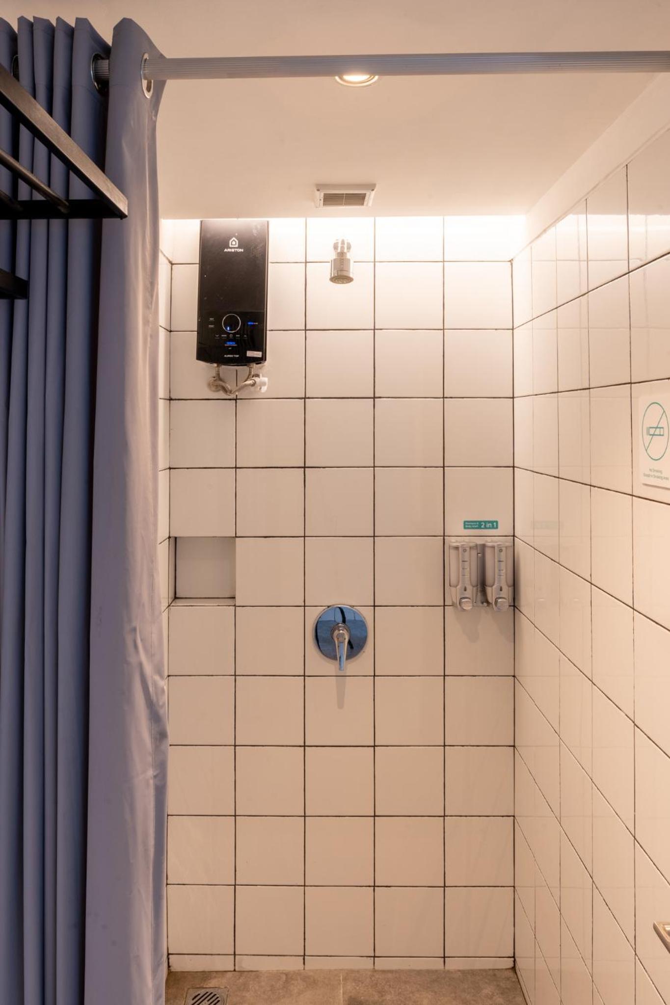 QR code to open your room, very clean room, good light controls. Shared toilet and showers but very well maintained and cleaned. Very good water pressure and warm as well! Towels were available. Be prepared for your neighbors snoring (ear plugs!).