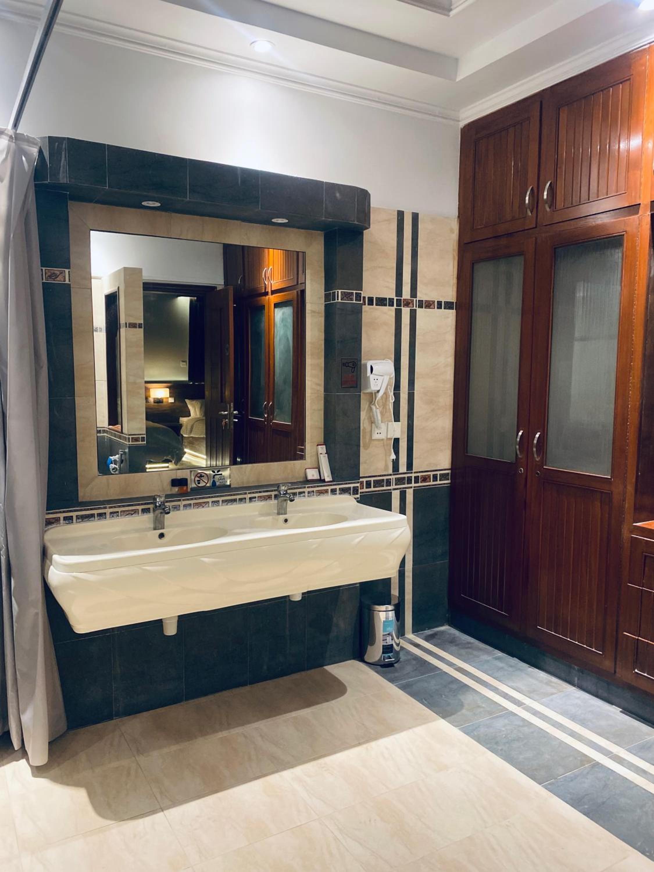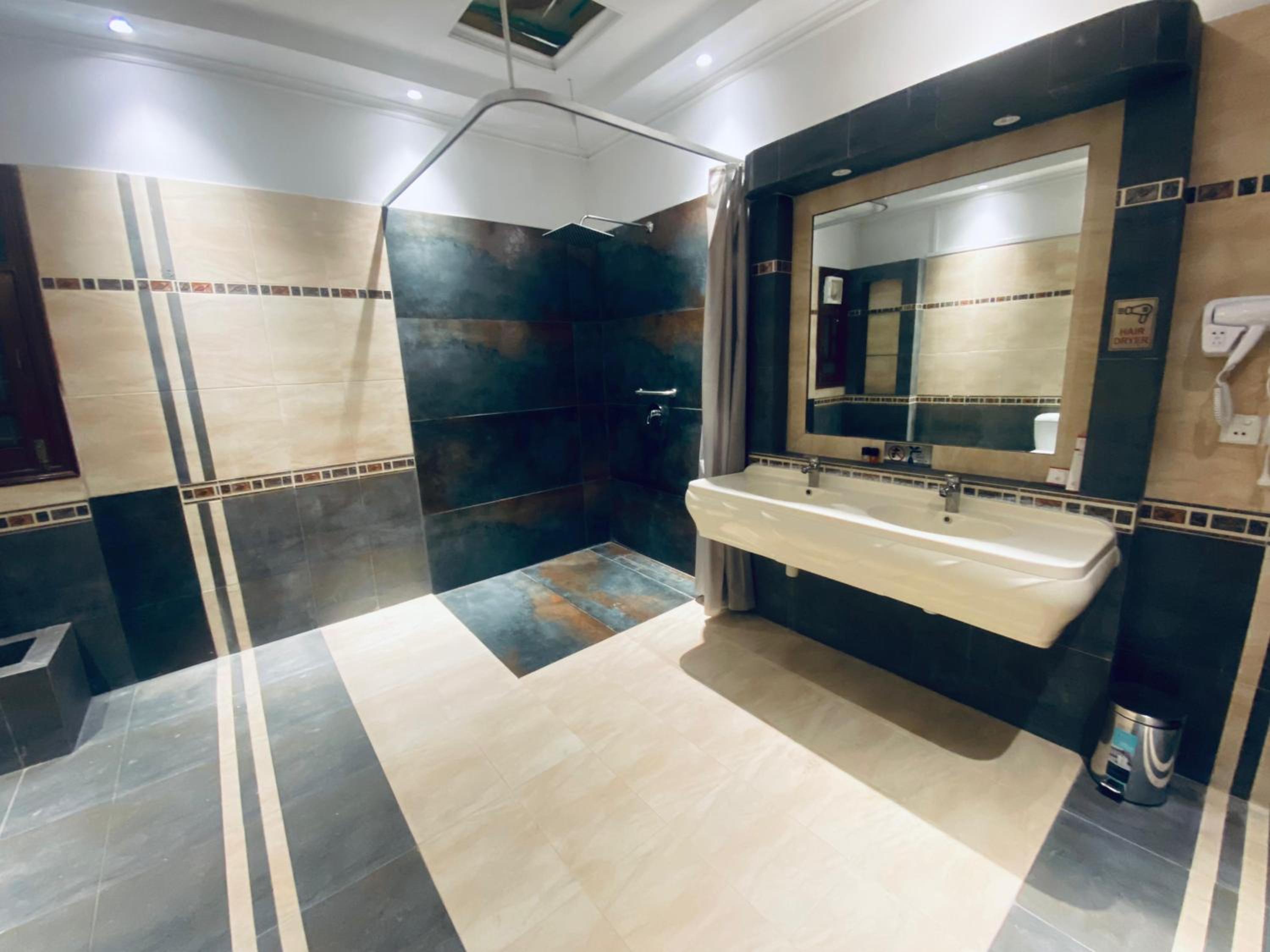 excellent washroom but no holder to hand towel n dress that could be kept away from shower sprinkles