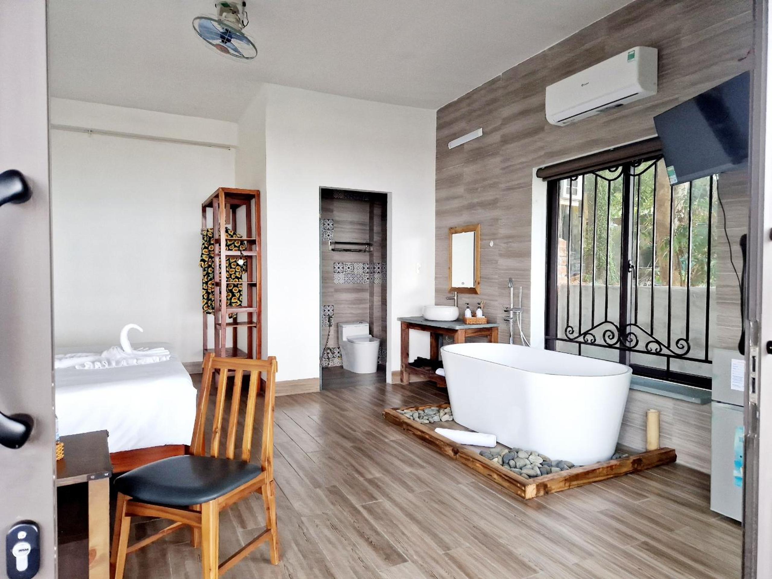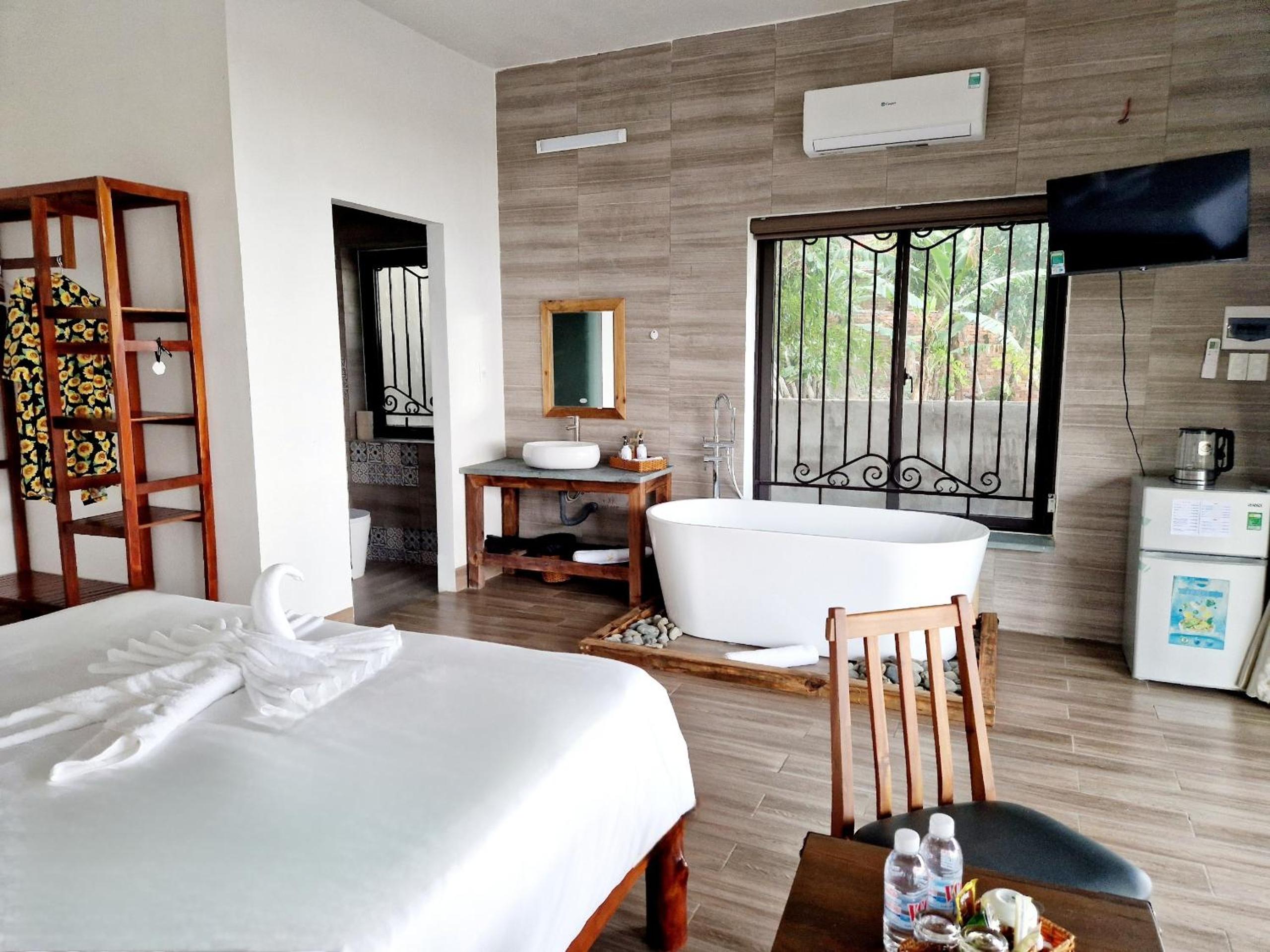 Tout était parfait, propreté, ambiance, petits déjeuners, restaurant excellent, mise a disposition de paddles kayak chaises longues etc . Annie parle français, anglais et vietnamien, d une gentillesse incroyable, tout pour passer un très bon séjour, on hésitera pas à revenir chez elle.