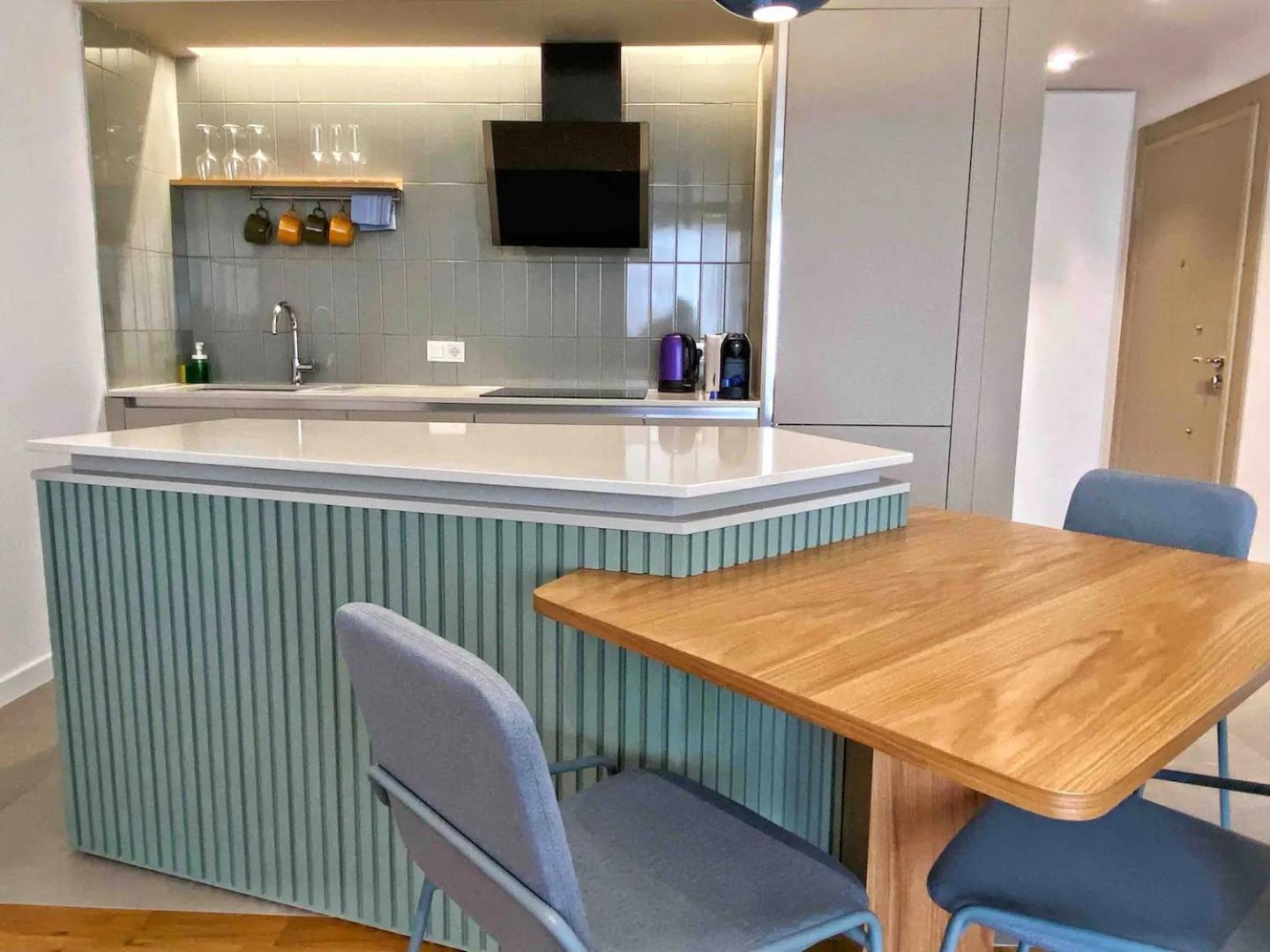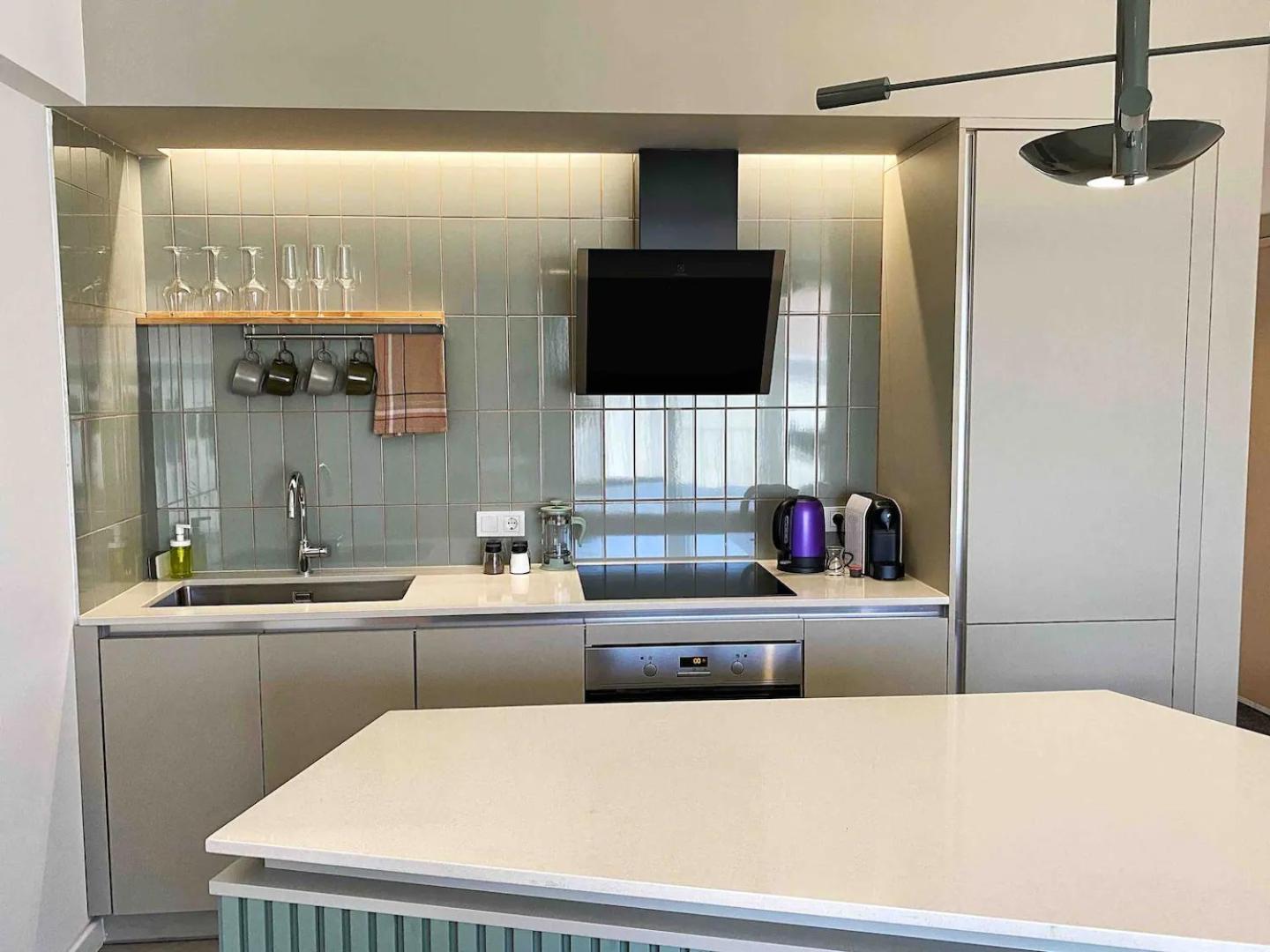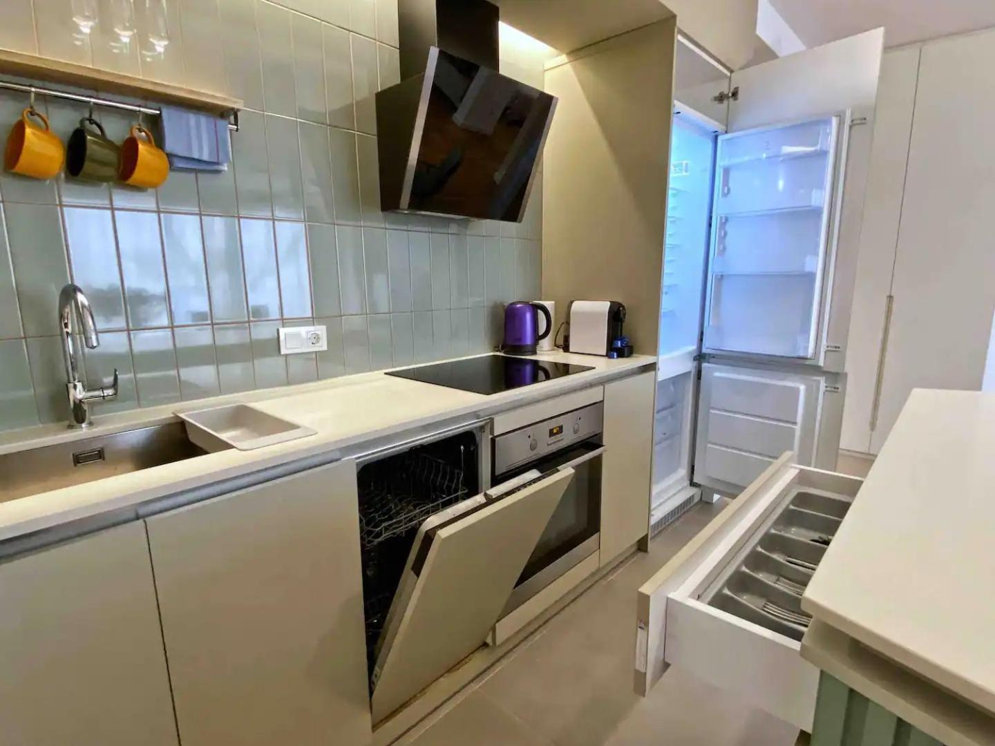 Prepare your favorite meals in a fully equipped kitchen with a dishwasher, perfect for extended stays.