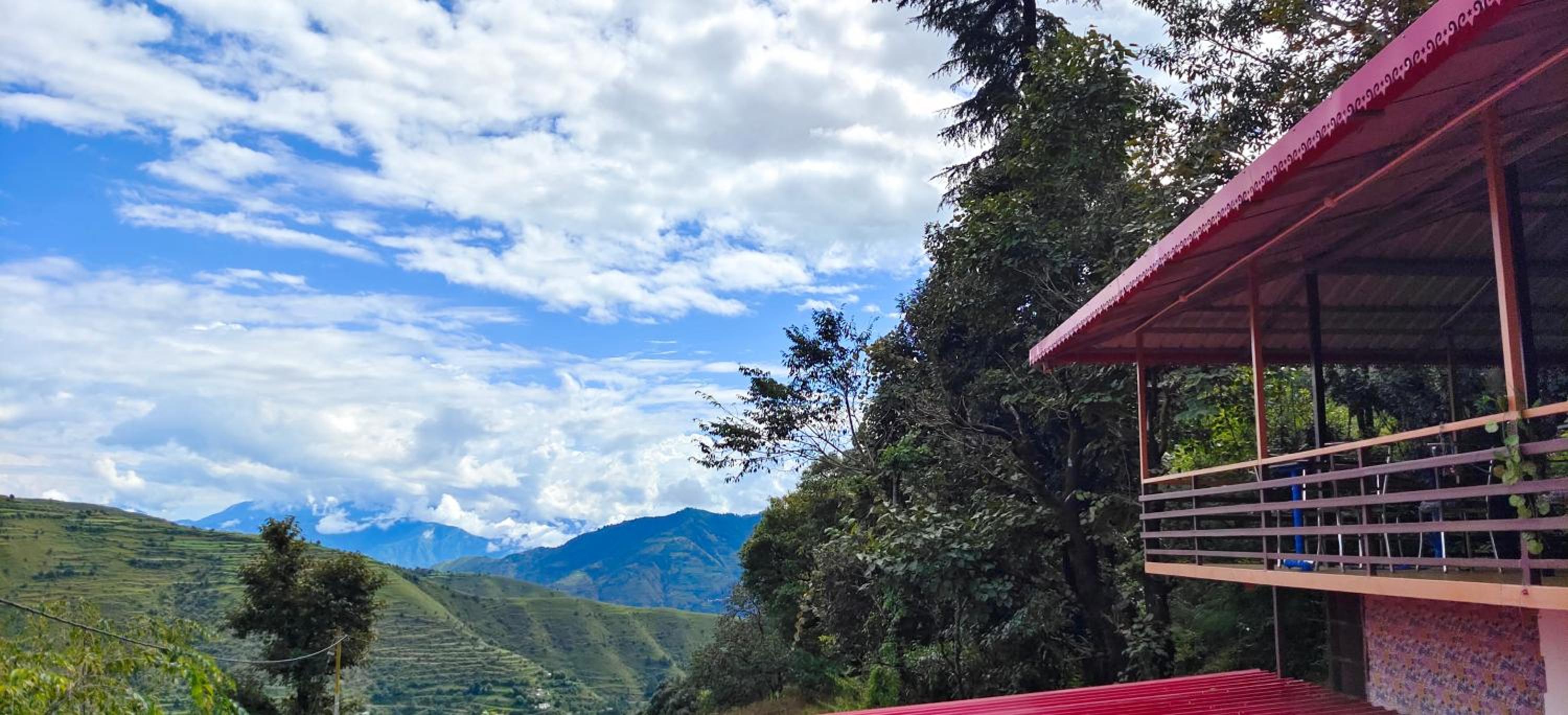 Wake up to stunning mountain views from your room at hotel chakrata green and camping, offering a picturesque backdrop for your stay.