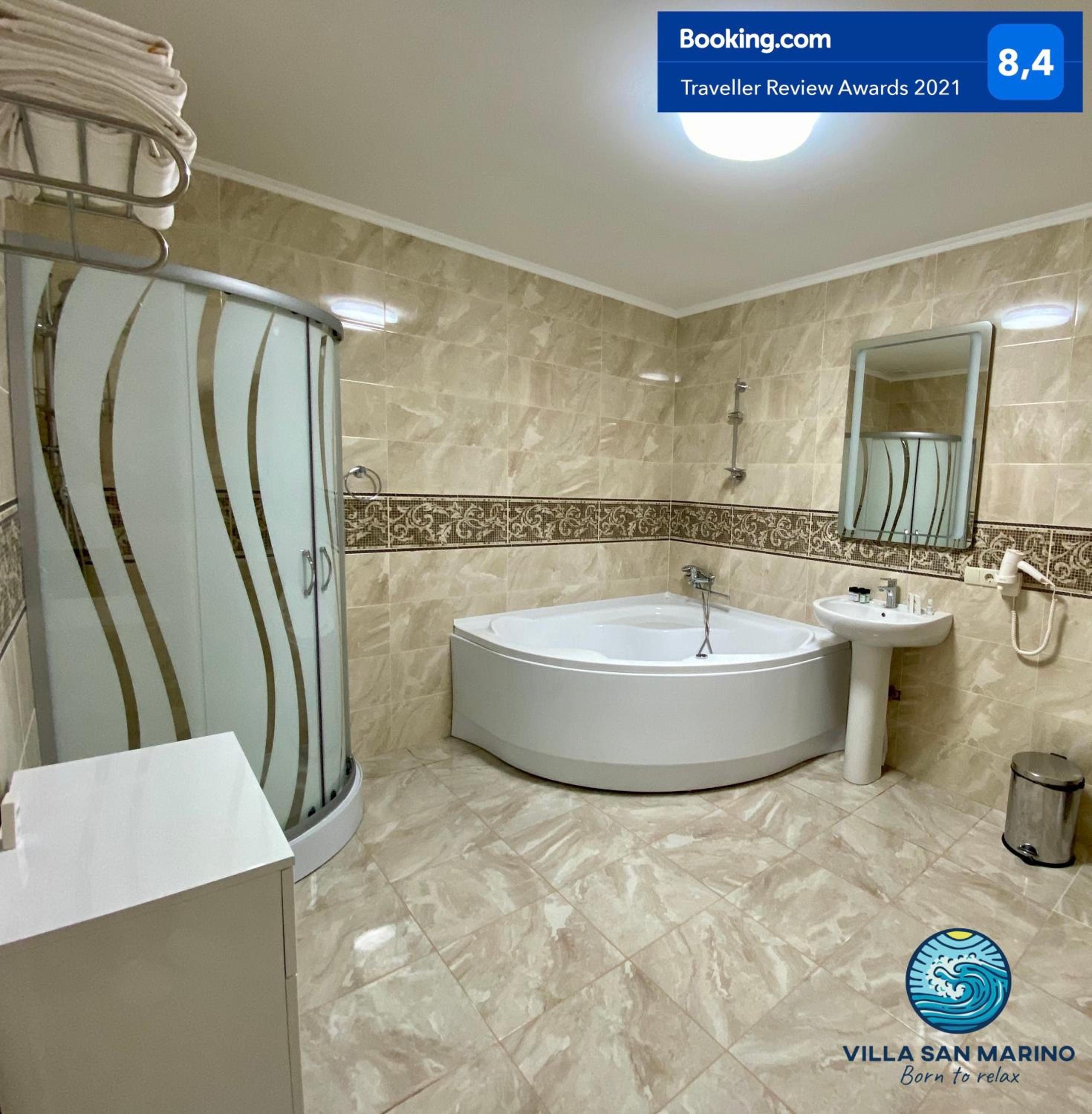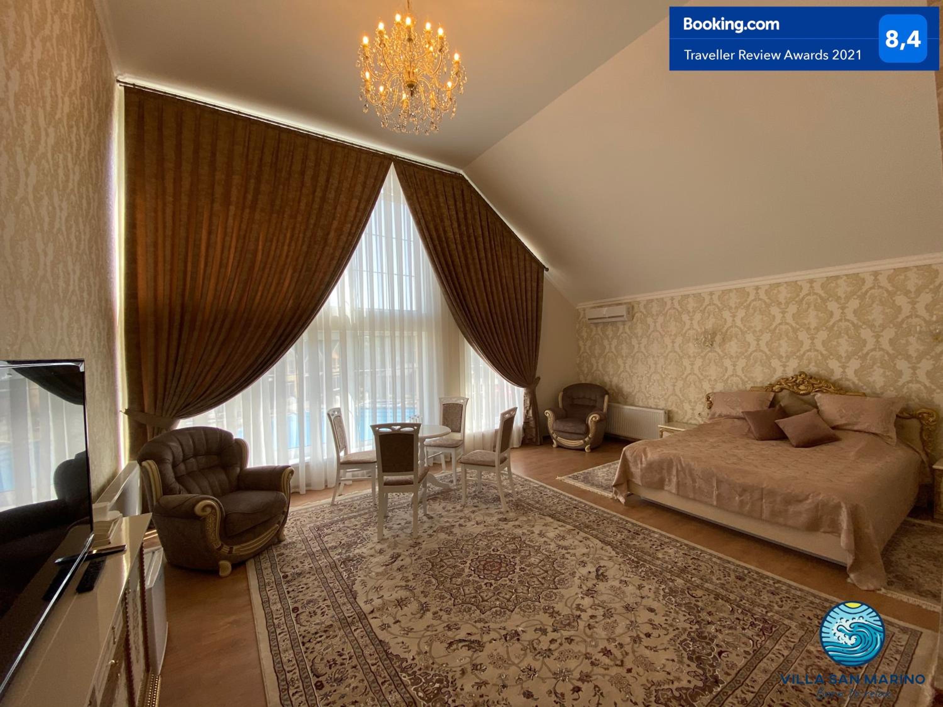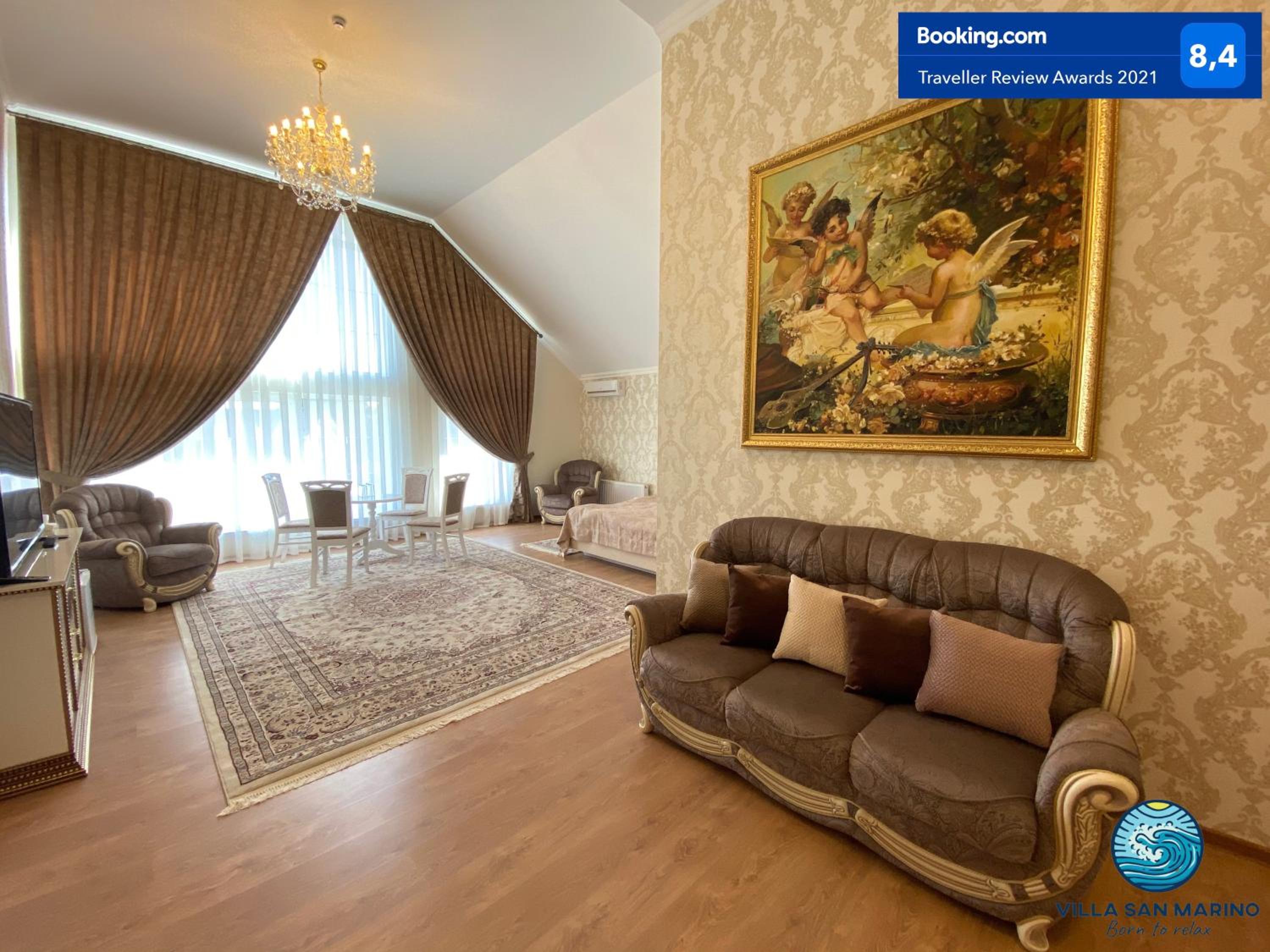 Villa San Marino in Vorzel’ presents a 4-star experience with a restaurant and bar at your service. The spacious rooms and elegant decor ensure a luxurious stay for all guests.
