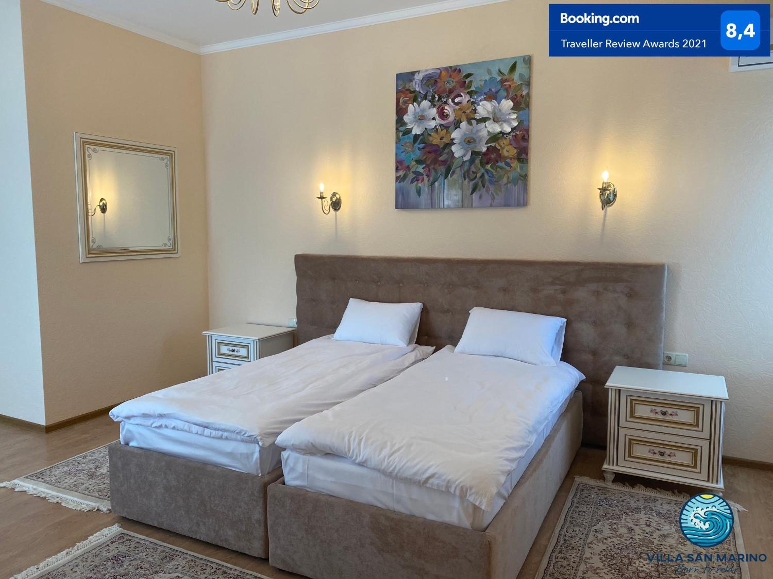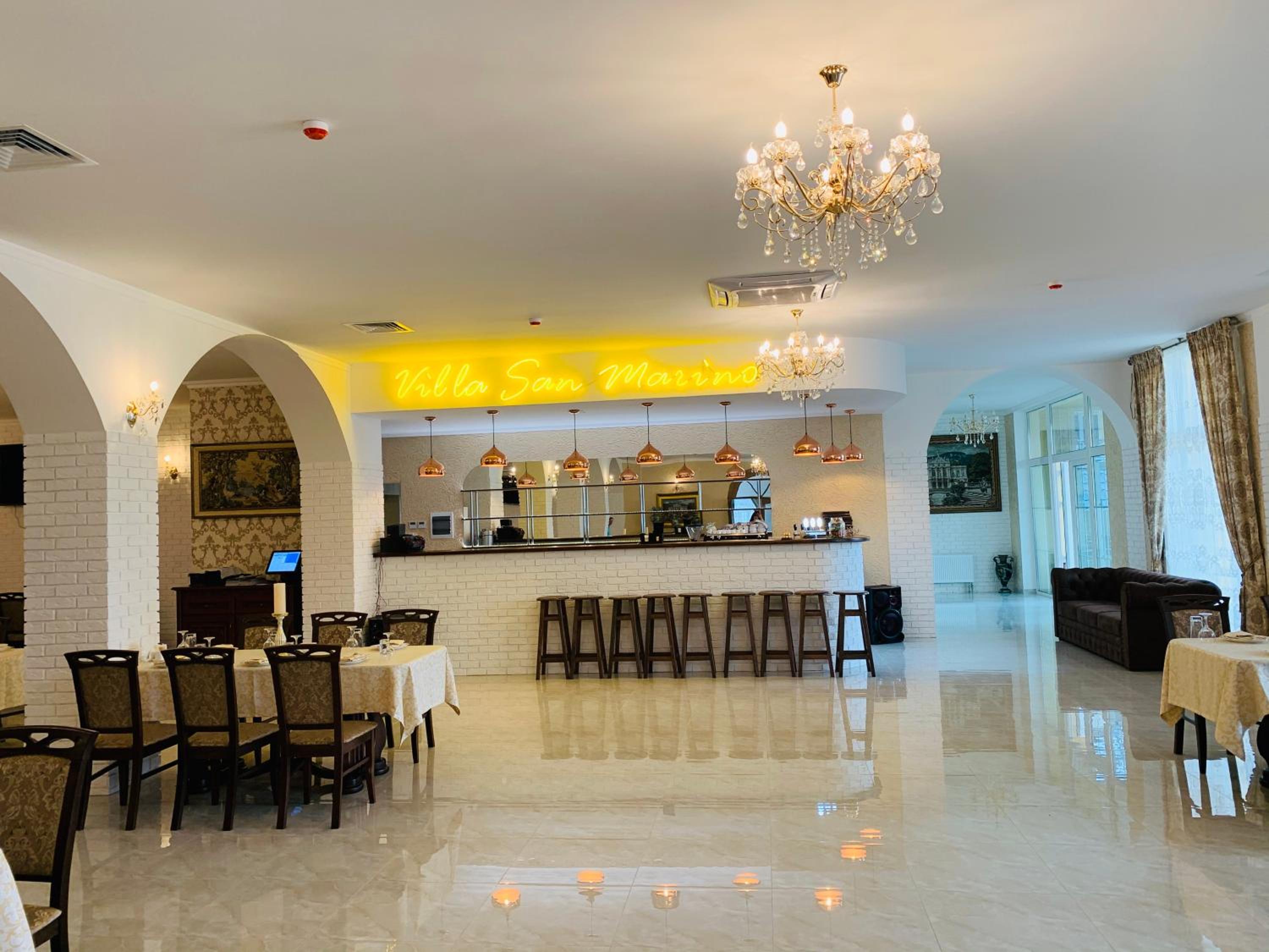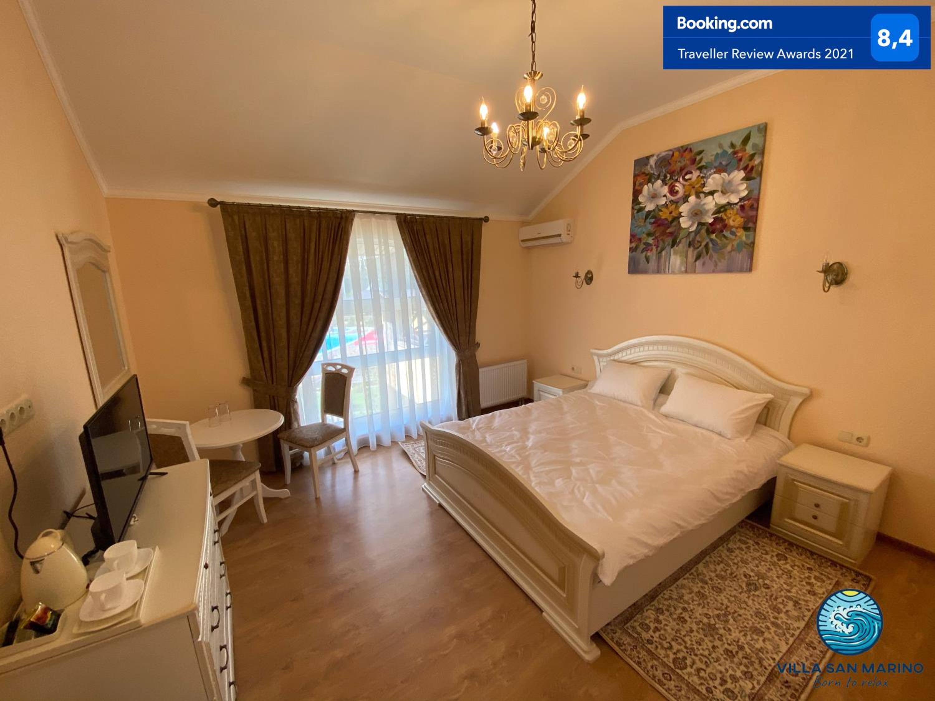 Villa San Marino in Vorzel’ presents a 4-star experience with a restaurant and bar at your service. The spacious rooms and elegant decor ensure a luxurious stay for all guests.