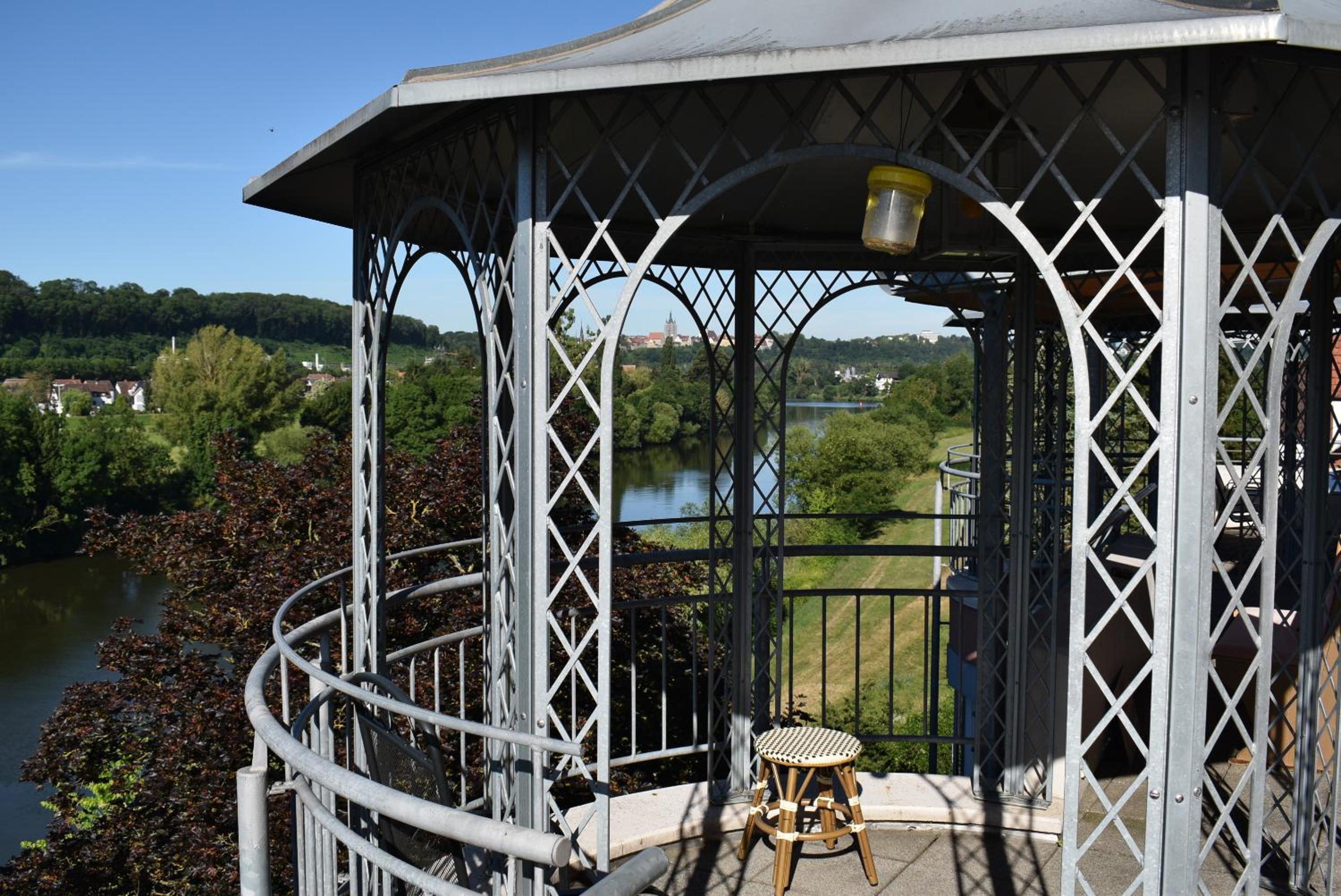 Die Lage über dem Neckar, sehr schönes Frühstück, sehr schönes Ambiente im Gastraum. Wundervolles Appartement.