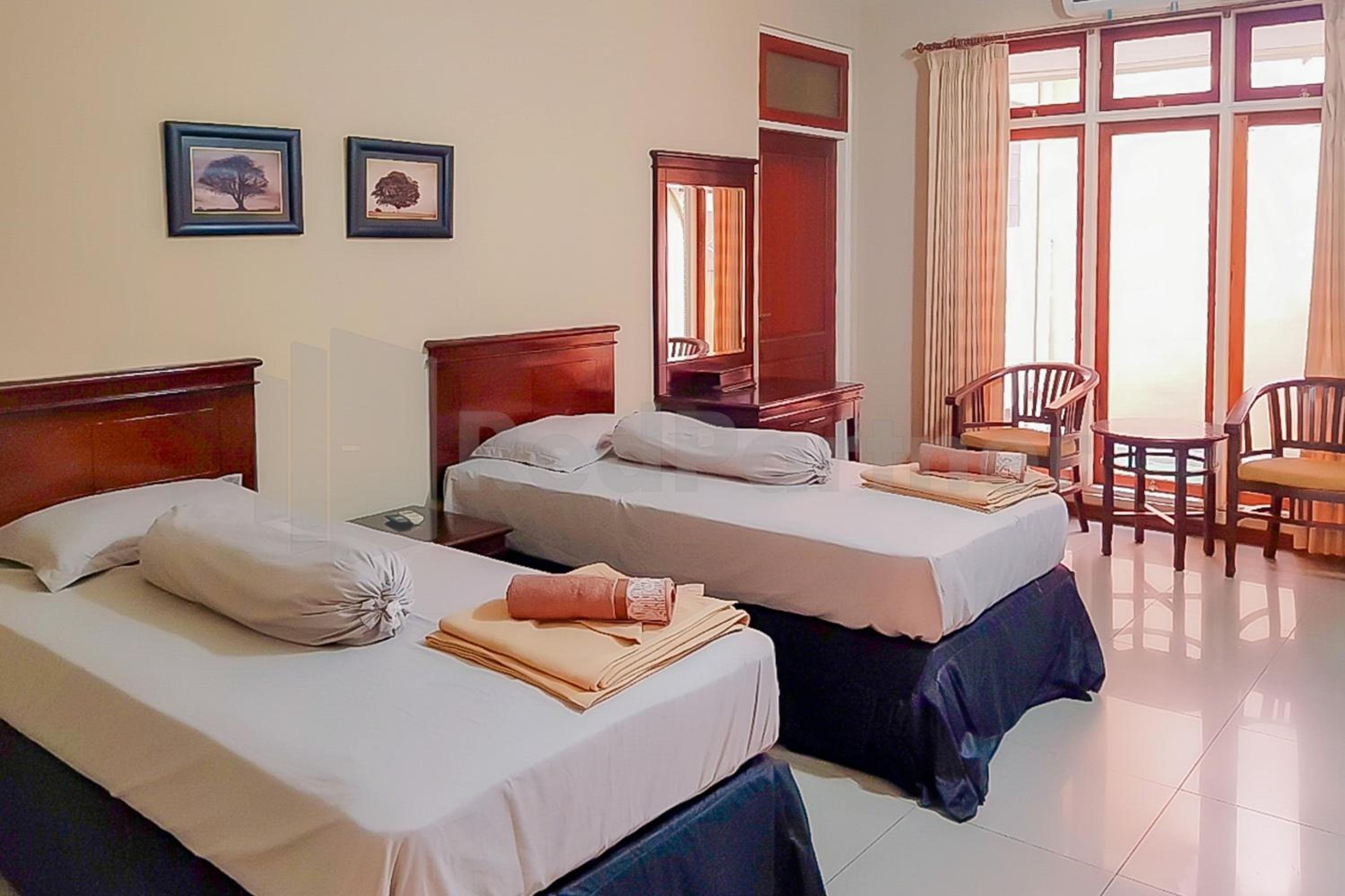 Experience comfort in our air-conditioned rooms furnished with a flat-screen TV, wardrobe, and private bathroom, ensuring a relaxing stay.
