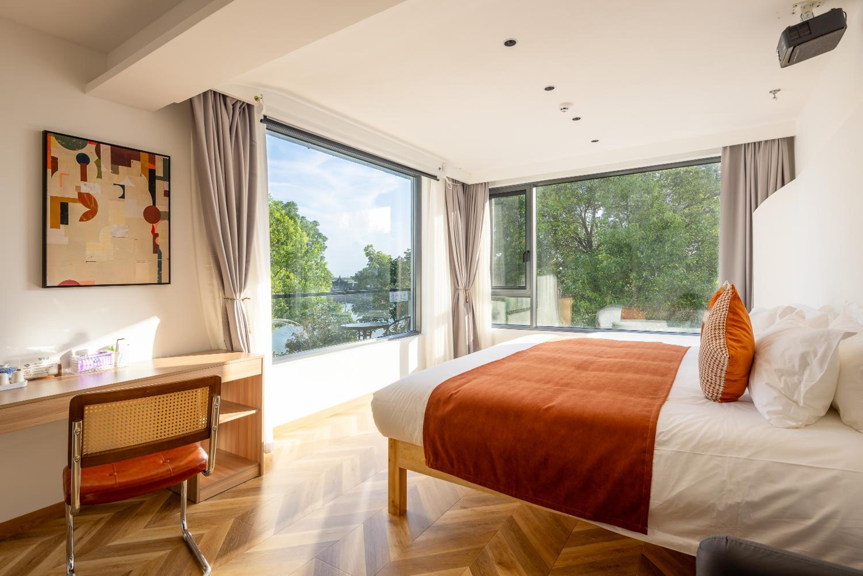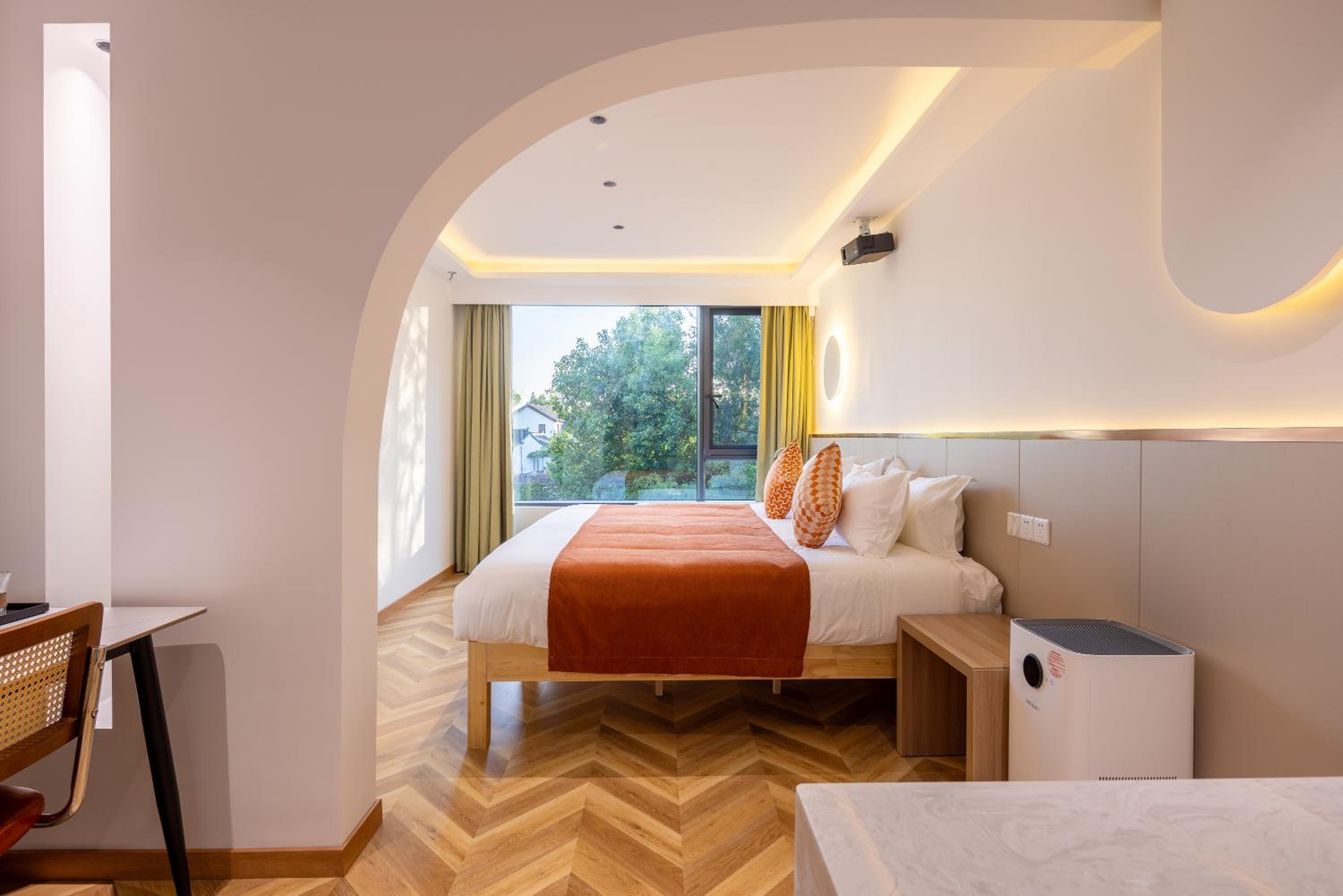 La struttura è nuova dotata di ogni comfort! Camera spaziosa, con un letto gigante e nella nostra camera c'era anche una vasca da bagno nella camera davanti una finestra da dove si poteva vedere sia l'acqua del fiume che le luci della città vecchia. Lo staff, Hu (spero di non scriverlo male) è stato gentilissimo! Ho apprezzato tanto che ci ha portato in un ristorante quando ormai era tutto chiuso. Lo ha fatto aprire per noi per poter cenare.