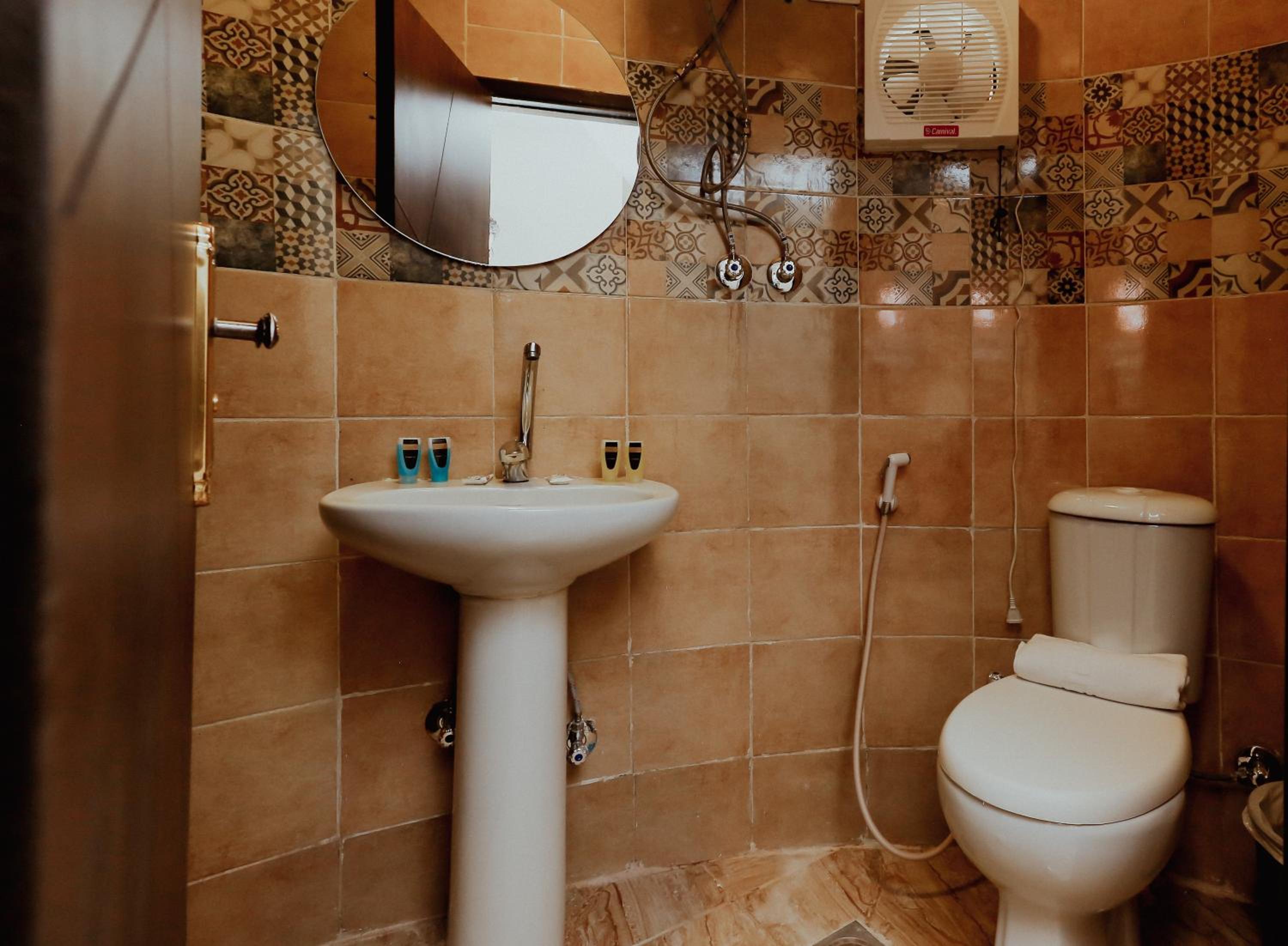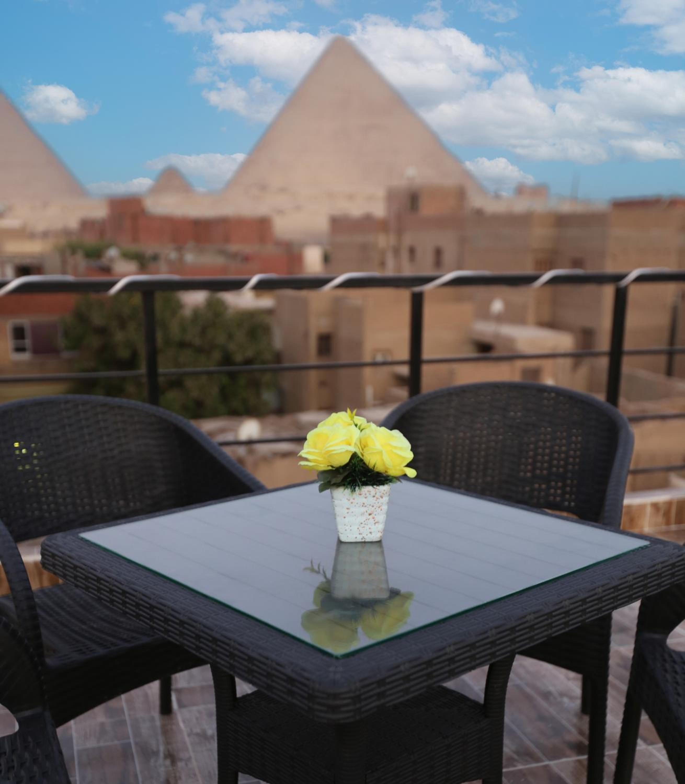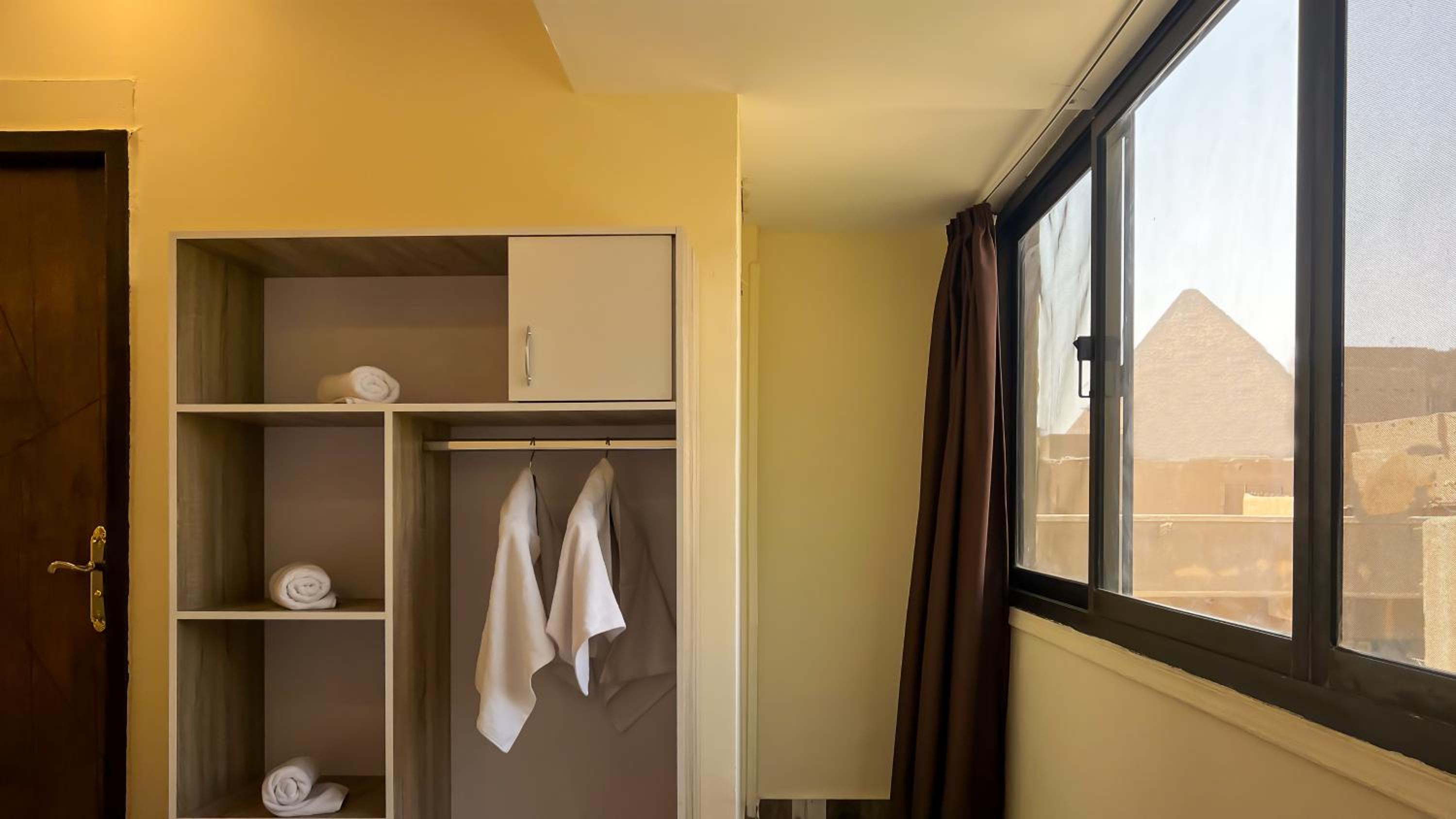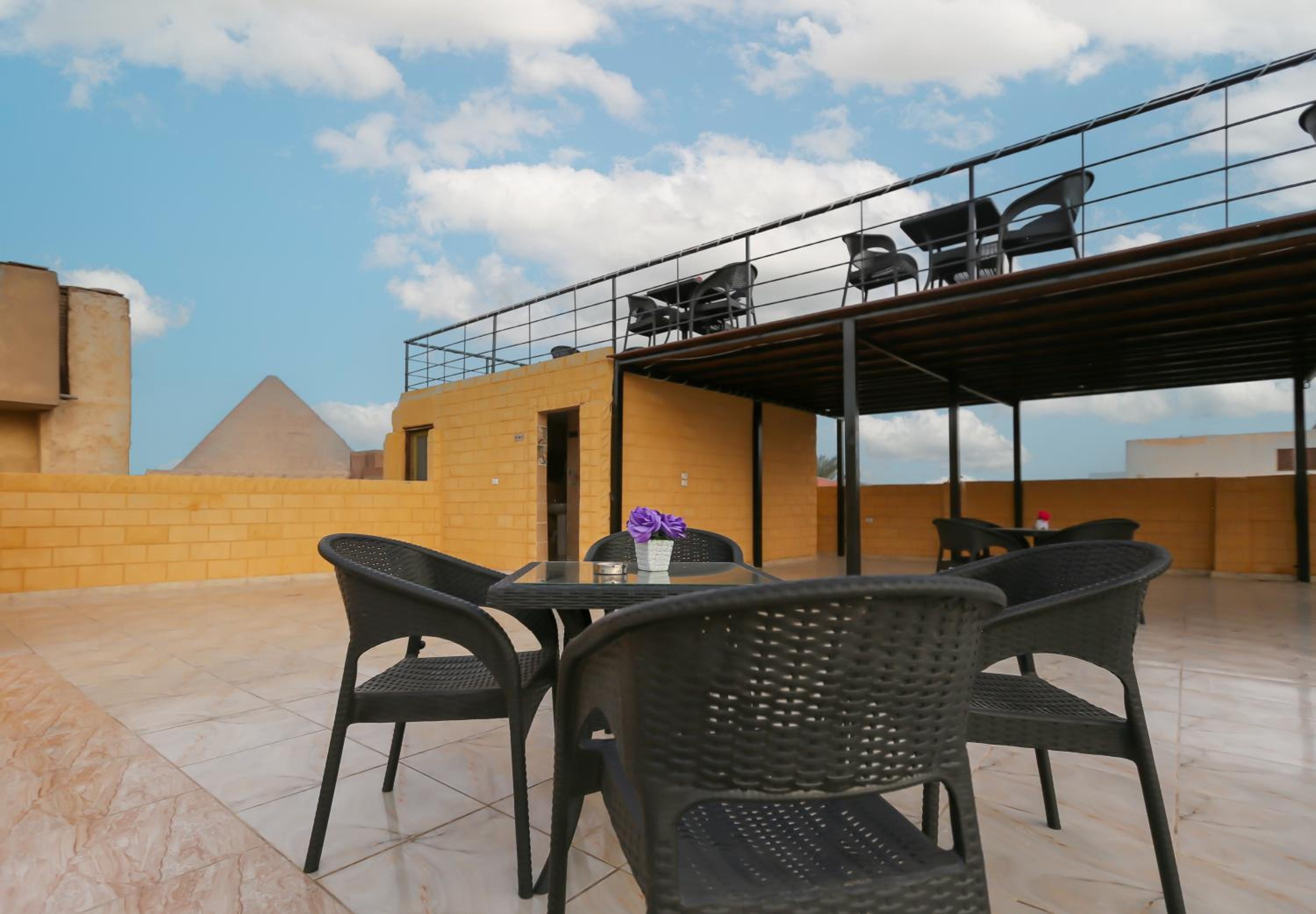 Right close to the pyramids with a very good view from the rooftop and all sorts of accessible shops right downstairs. This was very helpful to begin our first leg of stay. The rooms are decent enough, the bathrooms seemed to have no locks or latches but that seems to be the overall norm here. Otherwise the place is good enough to chill with decent breakfast options and extreme value for money