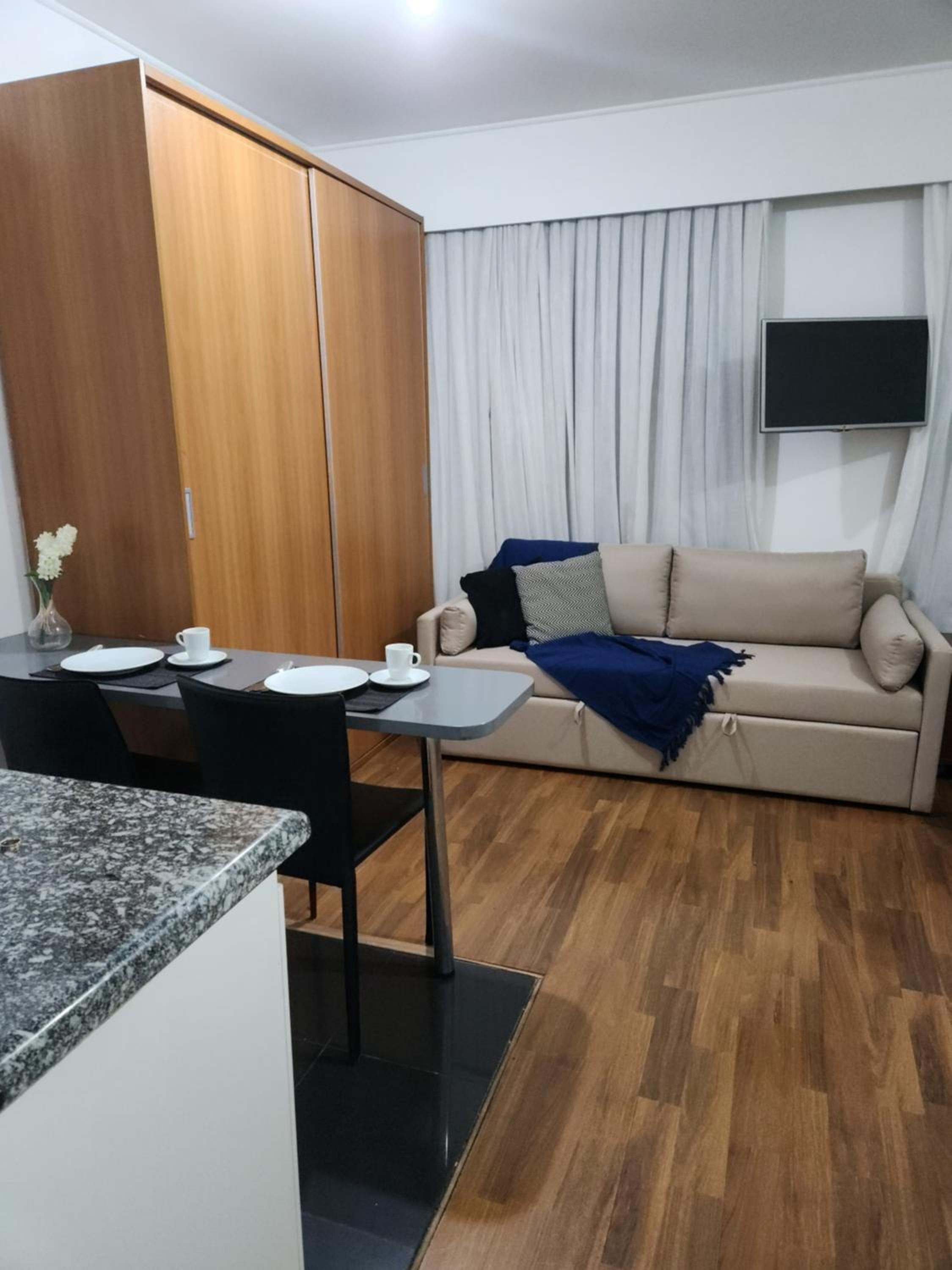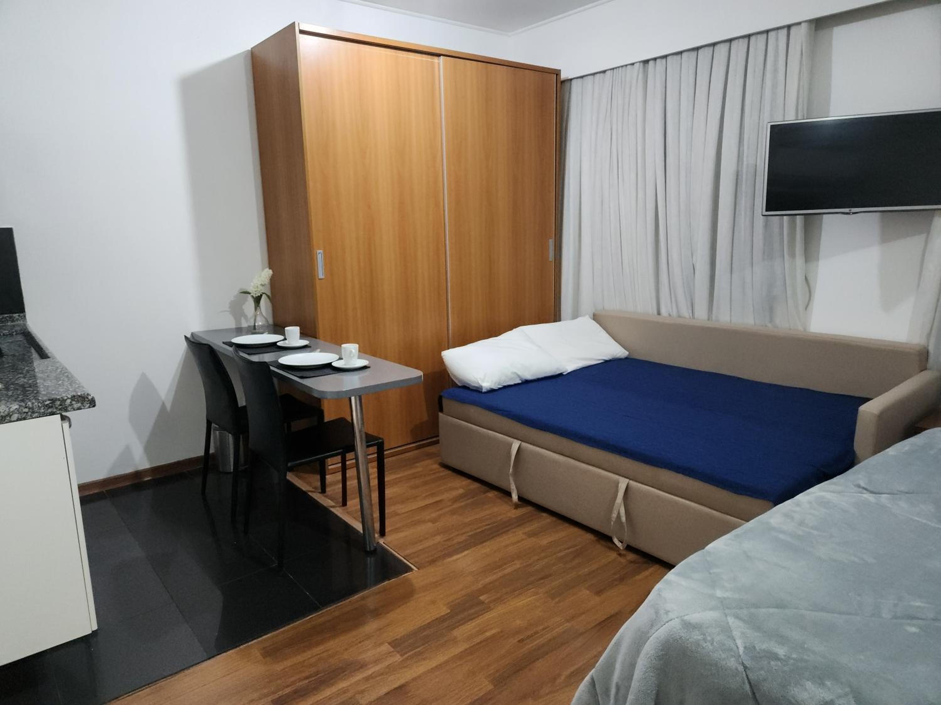 A localização é muito boa, perto de bares, padaria e restaurantes.