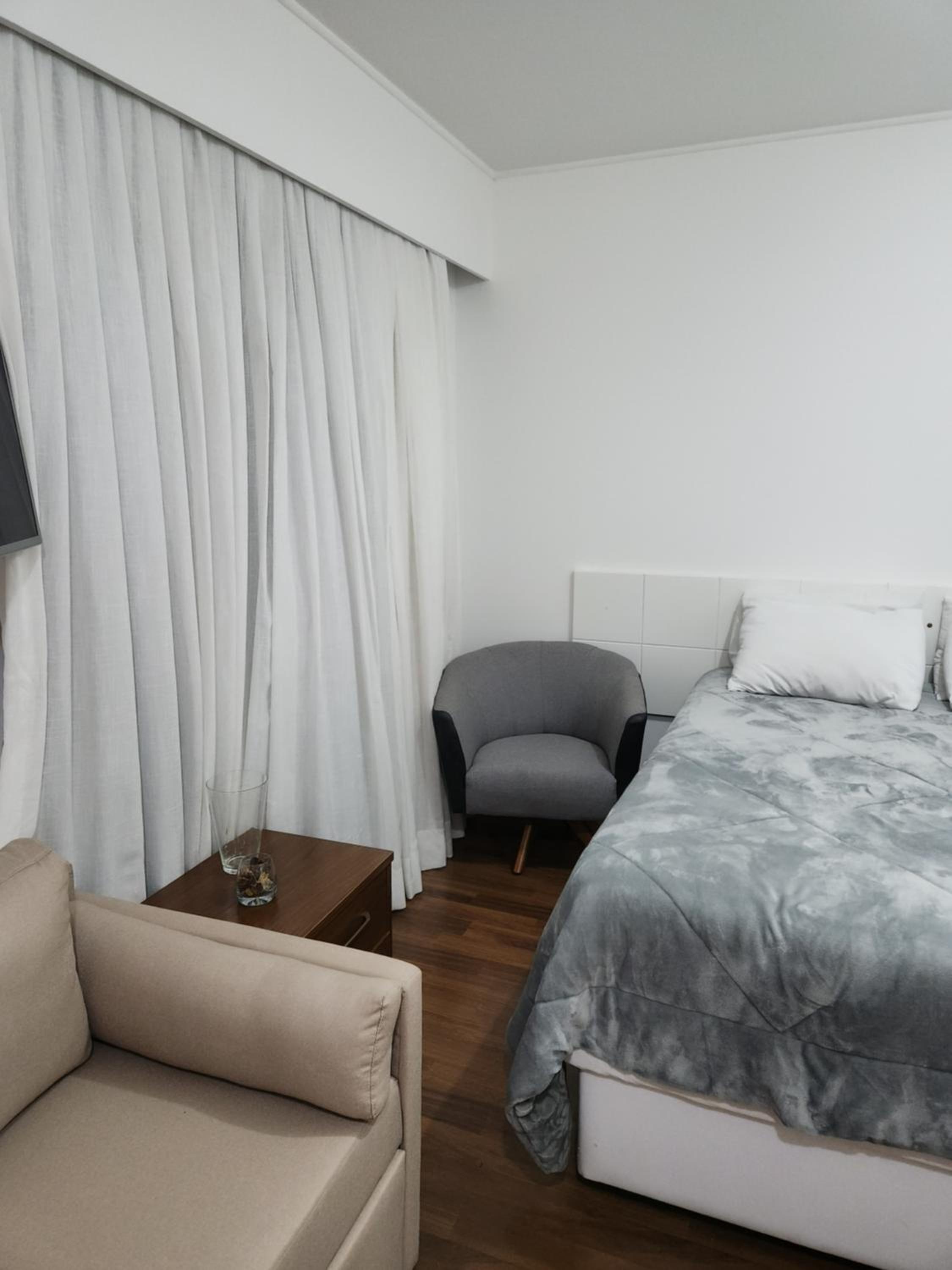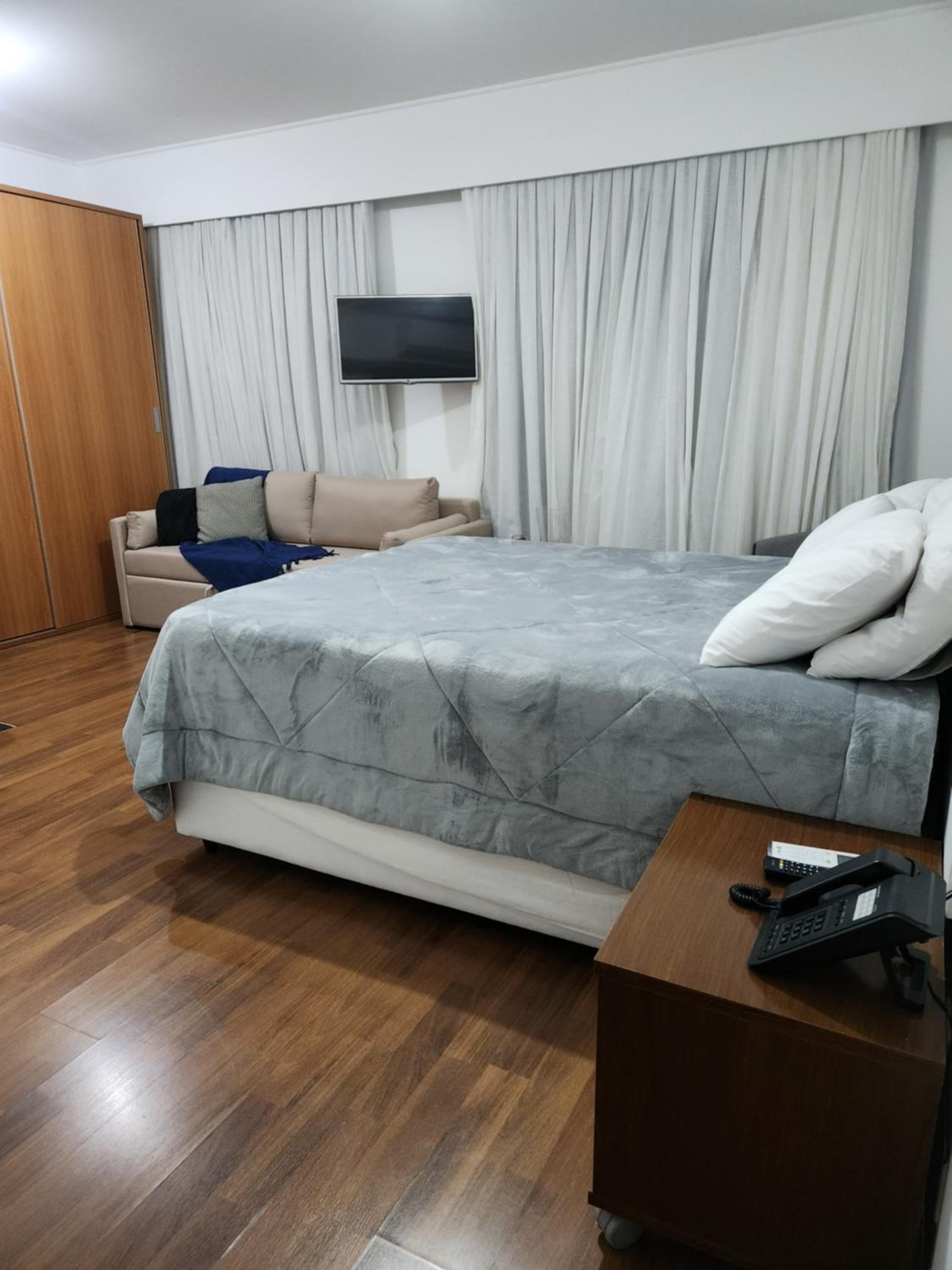 O layout out do quarto é bom. A cama /colchão confortável. Chuveiro muito.bom .
