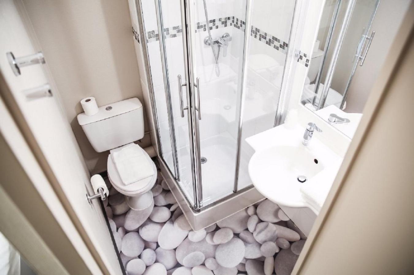 Dans la salle de bain les deux épaules touchent da part et d'autre. Ok je suis large. La douche n'est pas très grande non plus.