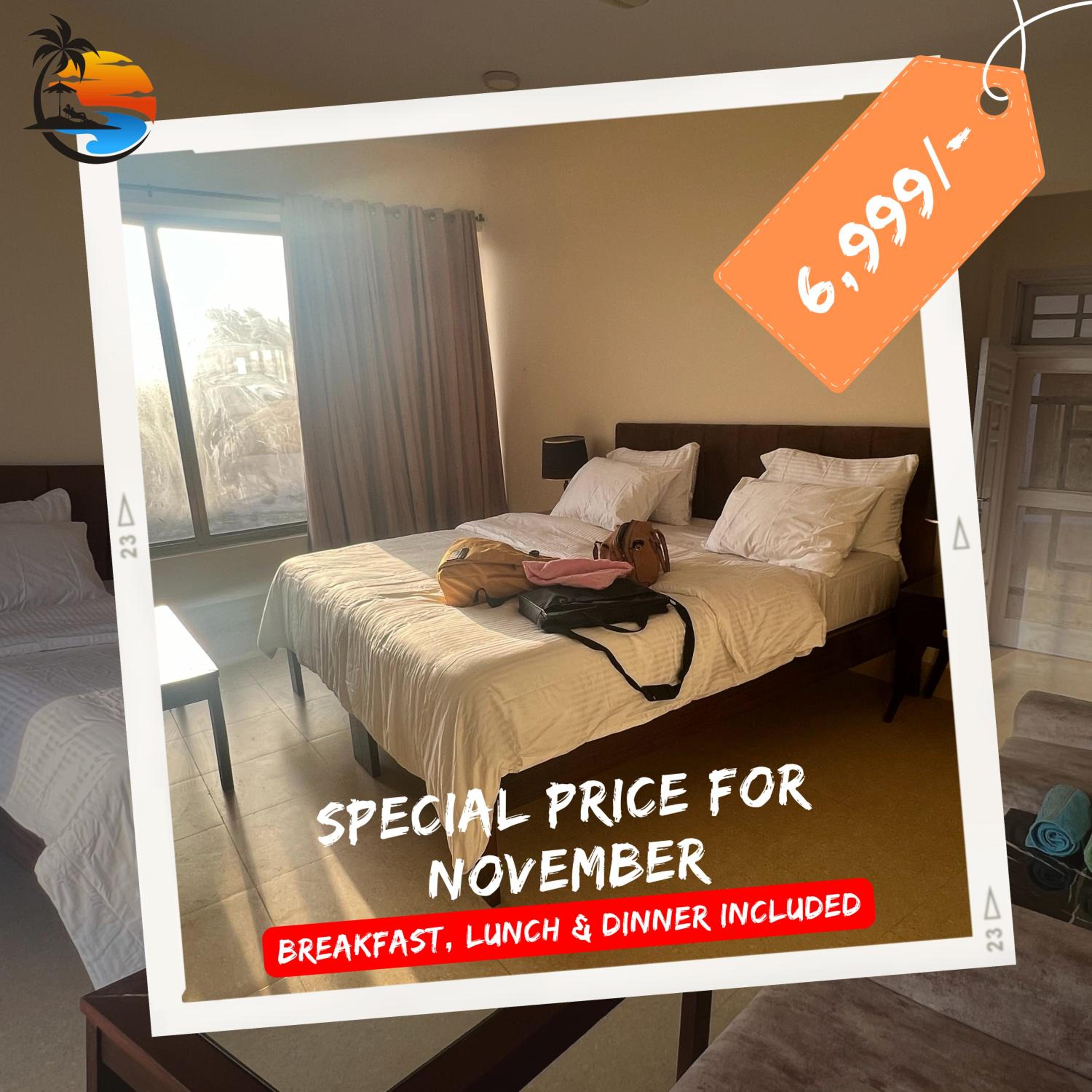 The accommodation is good and breakfast just OK. The beach was very good but there wasn't any activity at all. However we still got a chance to fly on what they called Ultra Light. It is the smallest flying machine with a capacity for two people, against each other so that one in front is the pilot, with a small engine and adjustable wings being manipulated by the pilot. The flight was for 15 minutes and costed just 6000.