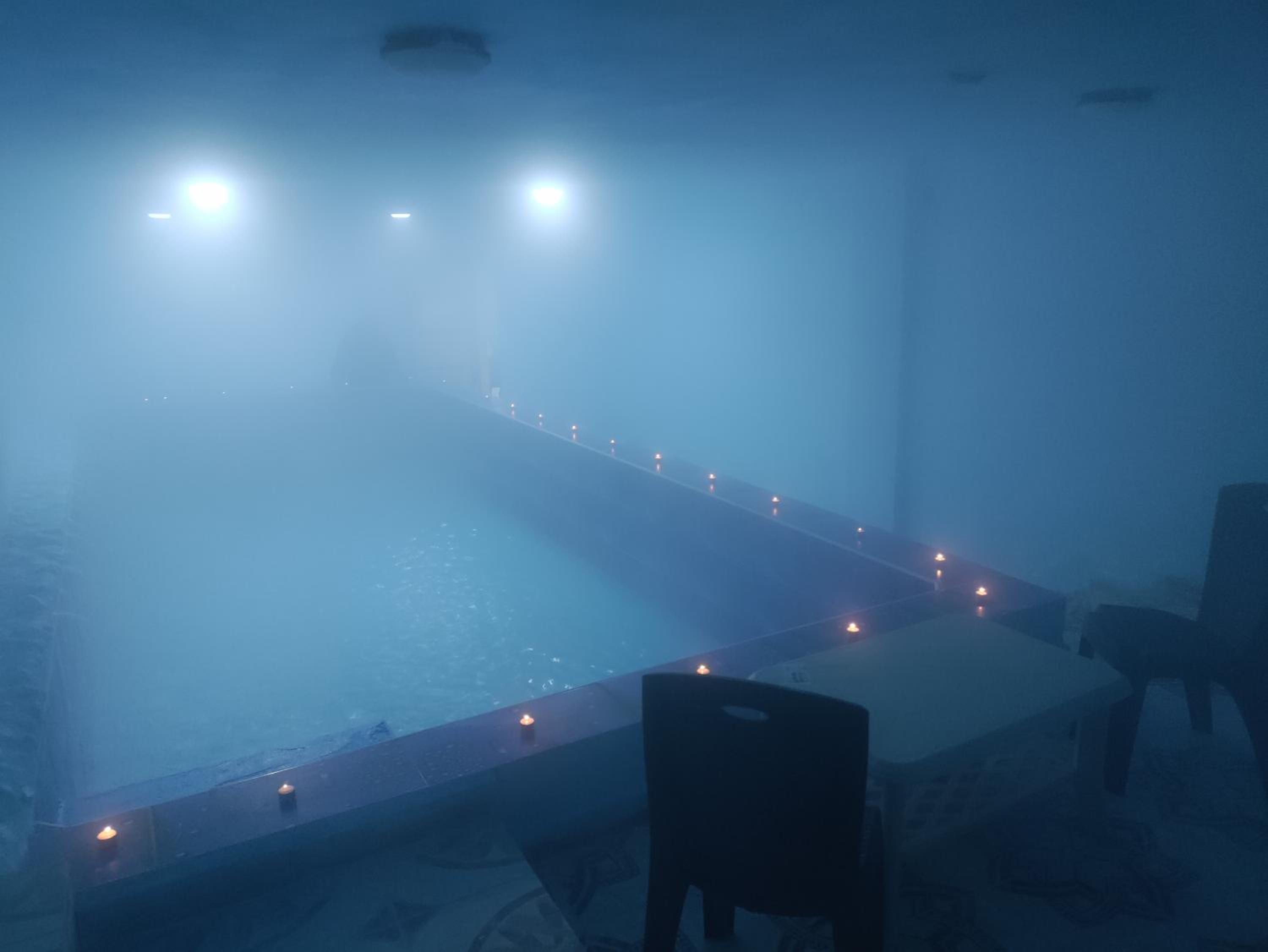 The owners were very friendly and nice. The room was clean and comfortable. Lots of seating around the pool and on the terrasse to relax on. The view from the terrasse was nice (green plants in the middle of the canyon). The sound of running water was relaxing. The warm water was the perfect temperature to swim in in the evening.