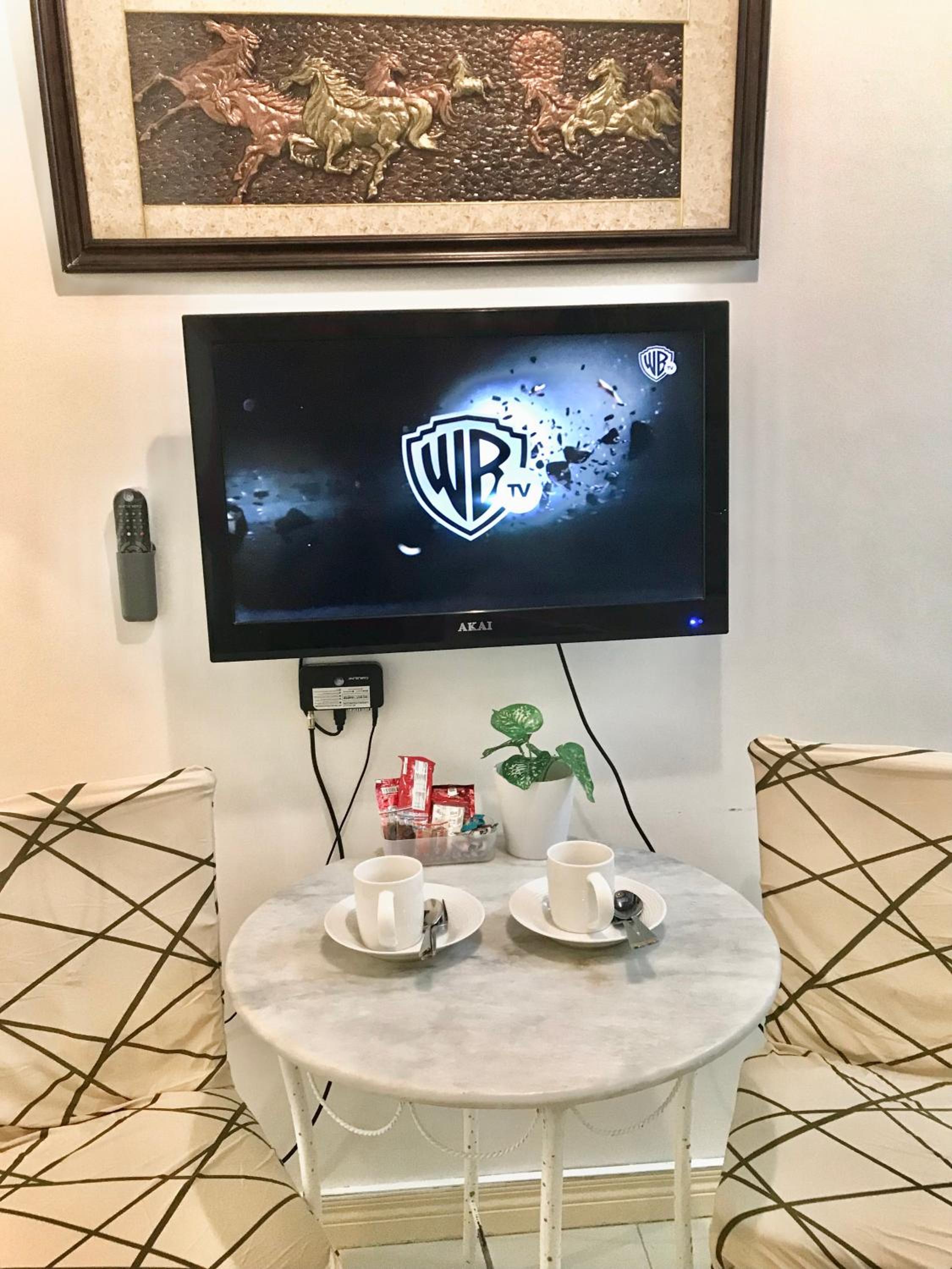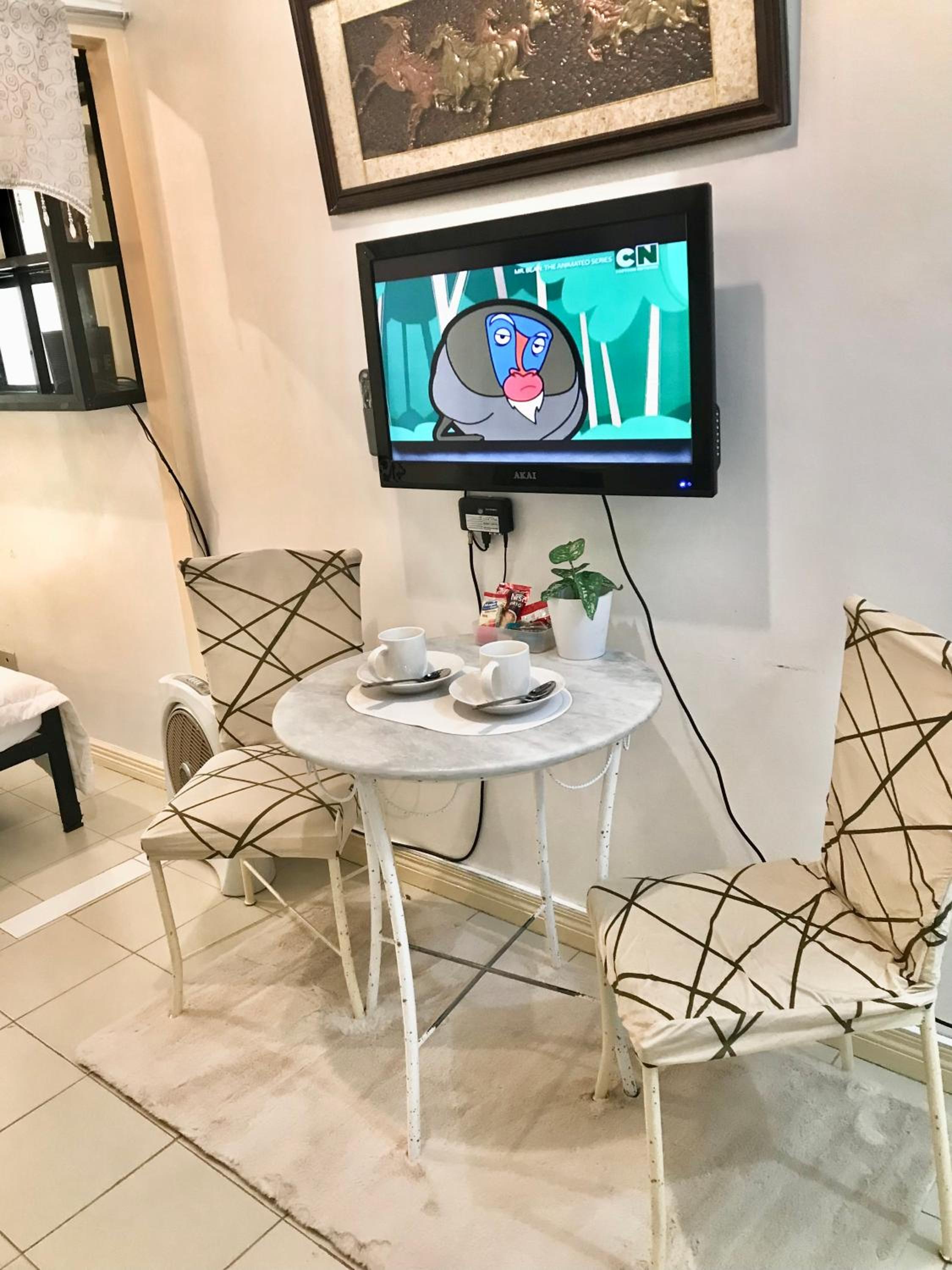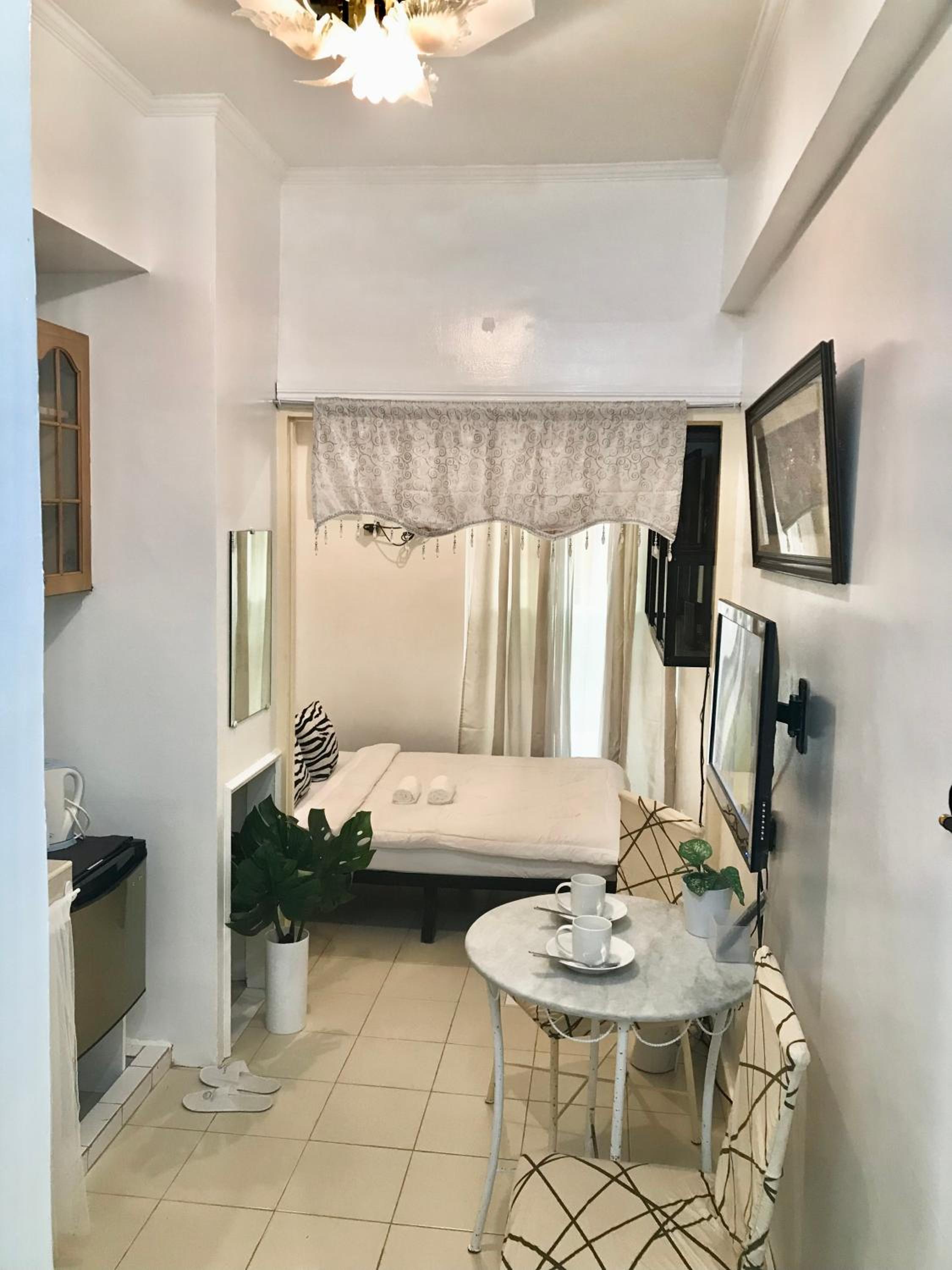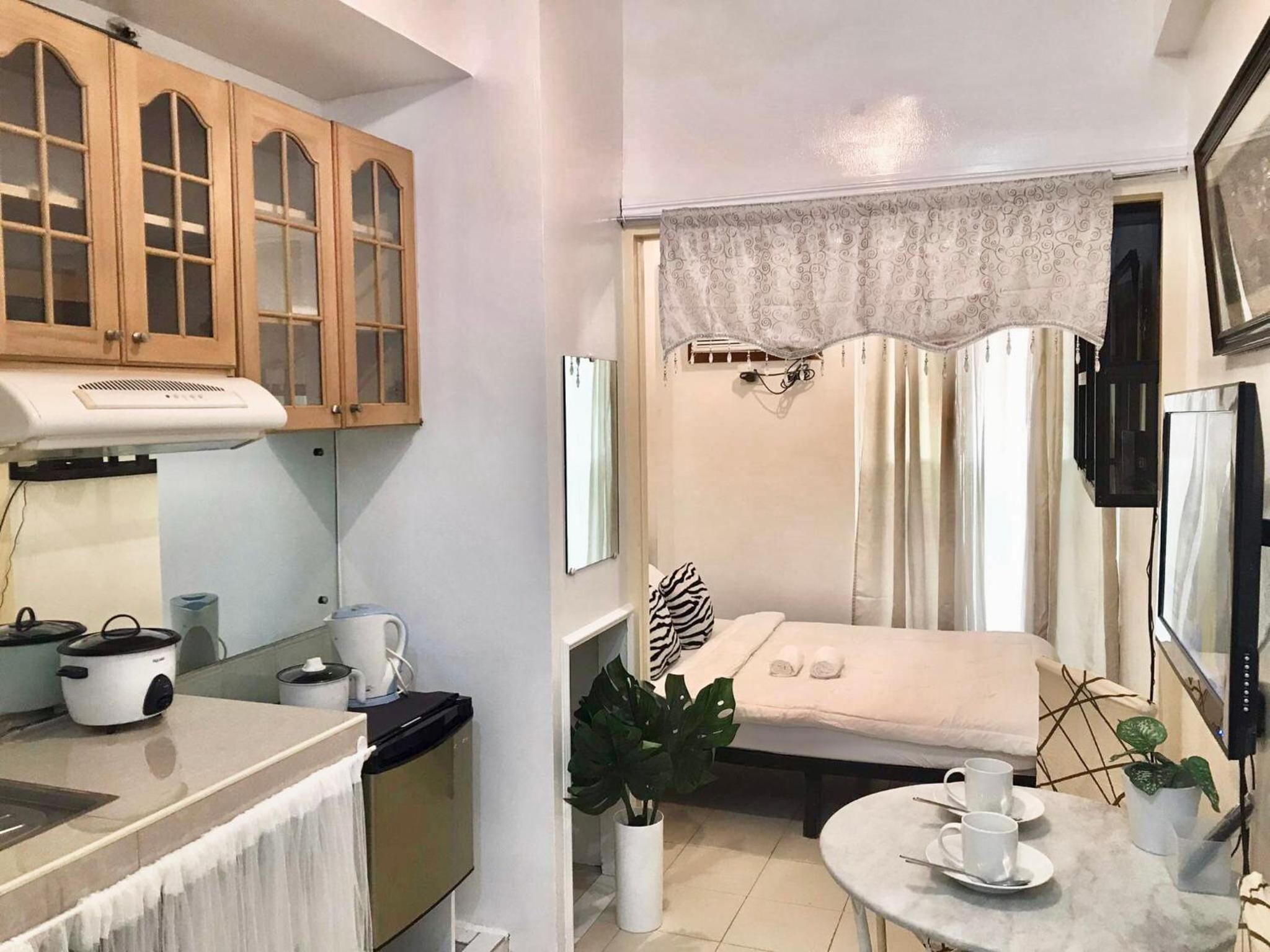 Comfortable Accommodation: Each studio unit at Chateau Elysee Lafayette cluster features modern amenities such as air conditioning, a flat-screen TV, and a fridge for a comfortable stay.