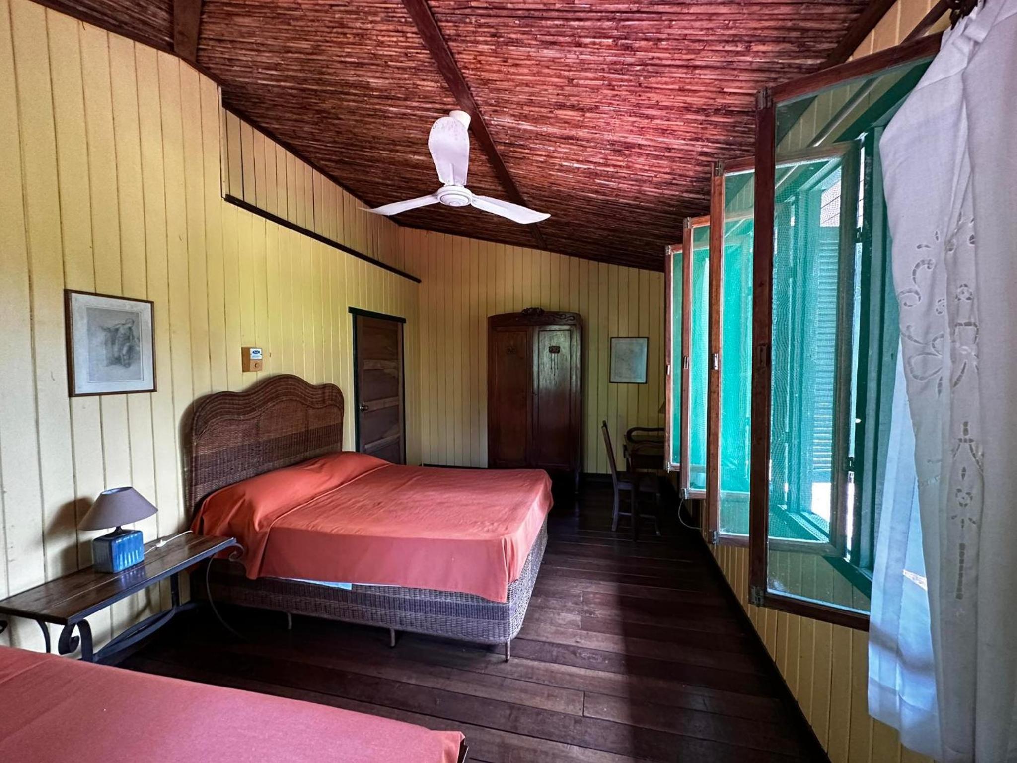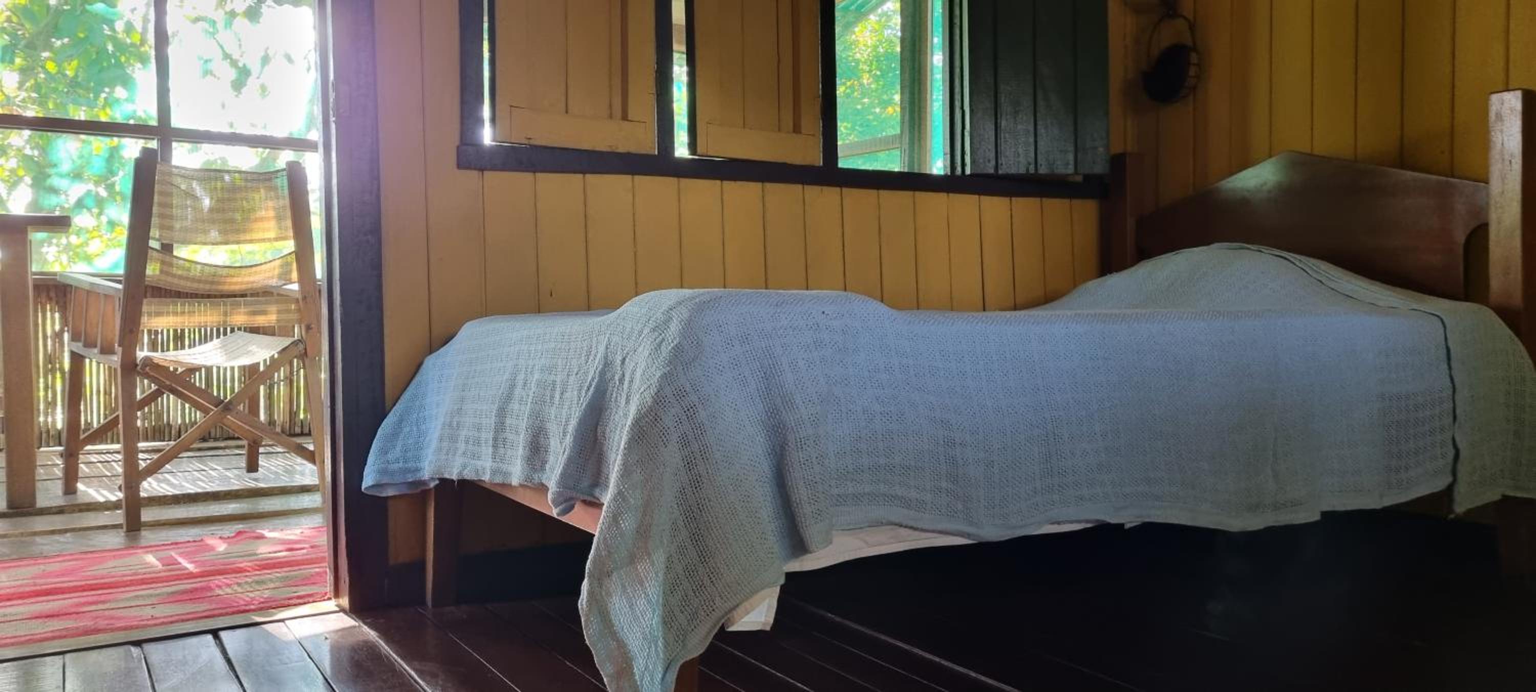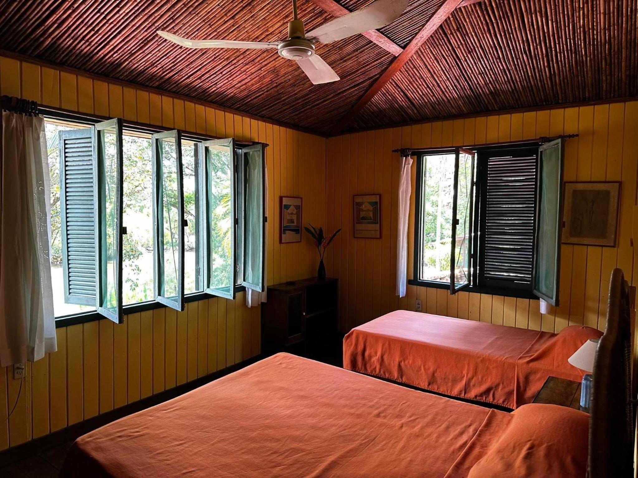 Relax in our charming bungalows featuring tiled floors, ample natural light, and private bathrooms. Enjoy a restful stay with the gentle breeze from the fan.