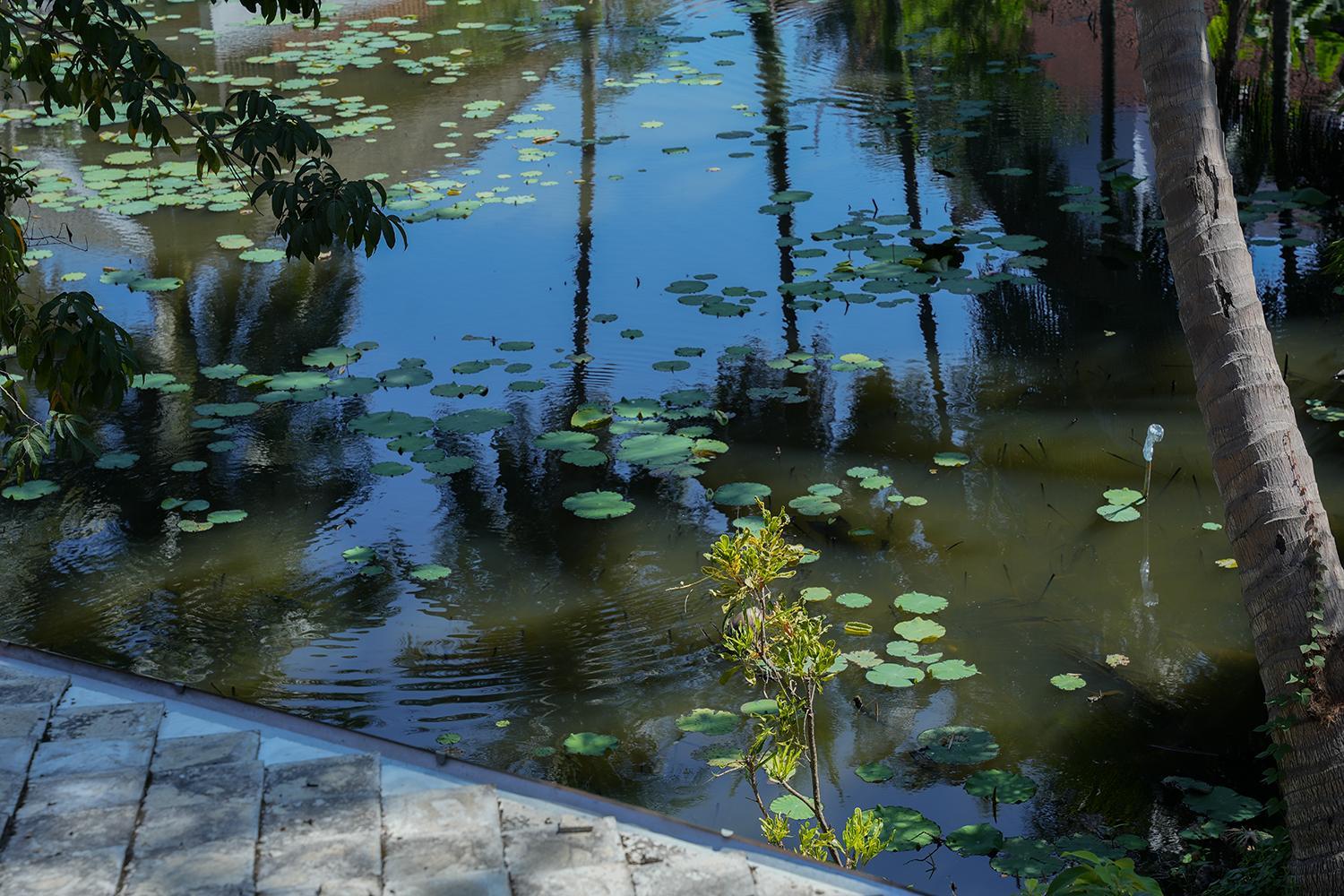 Very chilled atmosphere with the pond and the pool. The staff is nice and helpful.