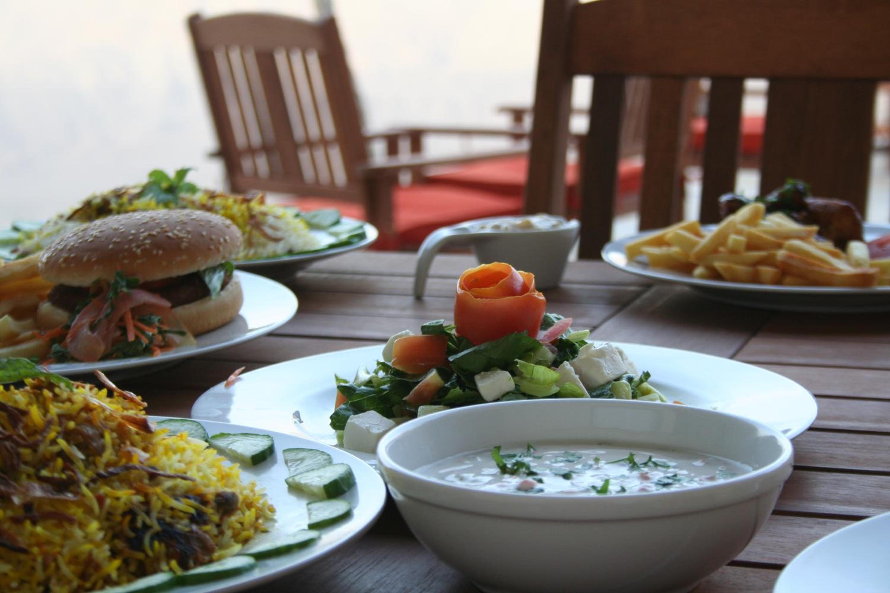 Het eten doe je buiten: mét een prachtig uitzicht, doch 's avonds behoorlijk fris.