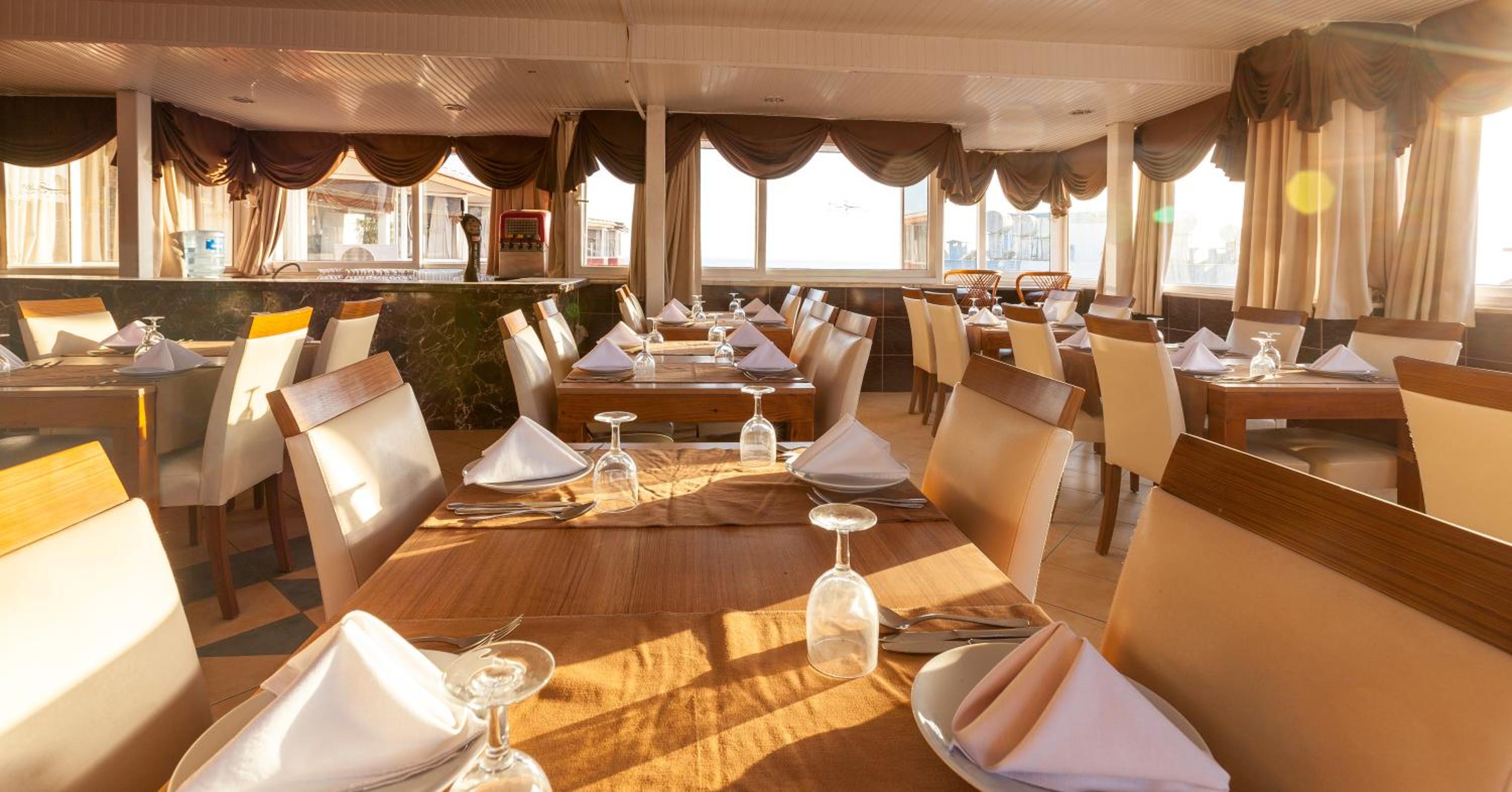 Sok all inclusive szállodában voltunk már, többek között Törökországban is, ez a szálló azonban nem felel meg ennek az elvárásnak. A parton fizetni kell mindenért, pusztán egy automatát raknak ki, amiből vizet és rettenetesen édes ócska szörpöt lehet inni. A napágyak és napernyők rossz állapotban vannak, senki nem rendezi el őket esténként, a part rettenetesen gondozatlan. Magunknak kellett kínlódni a napernyőkkel, már ha volt egyáltalán. Az ágyak mind töröttek voltak. A személyzet ingerülten ordibált, amikor megpróbáltuk leszúrni a napernyőt, ami sehogy nem akart megállni. Mindenki szenvedett vele. A part gondozatlan, nagy sziklák vannak, s nagyon hamar mélyül, nem ér le a lába senkinek 2-3 méter után. A medencénél nagyon kevés az ágy, tömeg van, hajnalban fel kell kelni helyet foglalni. Ott sem rendezik el esténként az ágyakat és napernyőket, nem takarítanak soha. Az étel mindig ugyanaz, normális hús vagy hal nincs, néha birka, illetve szenesre, keserűre égetett műhúst sütnek( valami párizsi féle). Reggelire sem rántotta, sem virsli nincs, egyedül főtt tojás van meleg étel. Mi zöldségeken( az tényleg van sok) és rizsen éltünk. Minden nap egyféle fehér kenyér van, a teljes kiőrlésűt nem ismerik, ahogy az édesítőt vagy a koffeinmentes kávét sem. Az étteremben a pincérek kikapkodják a tányért előlünk, meg sem kérdezik, befejezted-e az étkezést, ha felálltunk elmenni valamiért, elvitték az ételt, italt. Persze hogyan is kérdeznének bármit, mikor senki nem beszél angolul. A recepciósok közül is csak az egyik beszélt angolul, a másik kettő nem. Ez egy igazán olcsó szálloda, ami az utazóközönséget is meghatározza. Minősíthetetlenül viselkedő, hangoskodó részeg volt rengeteg.