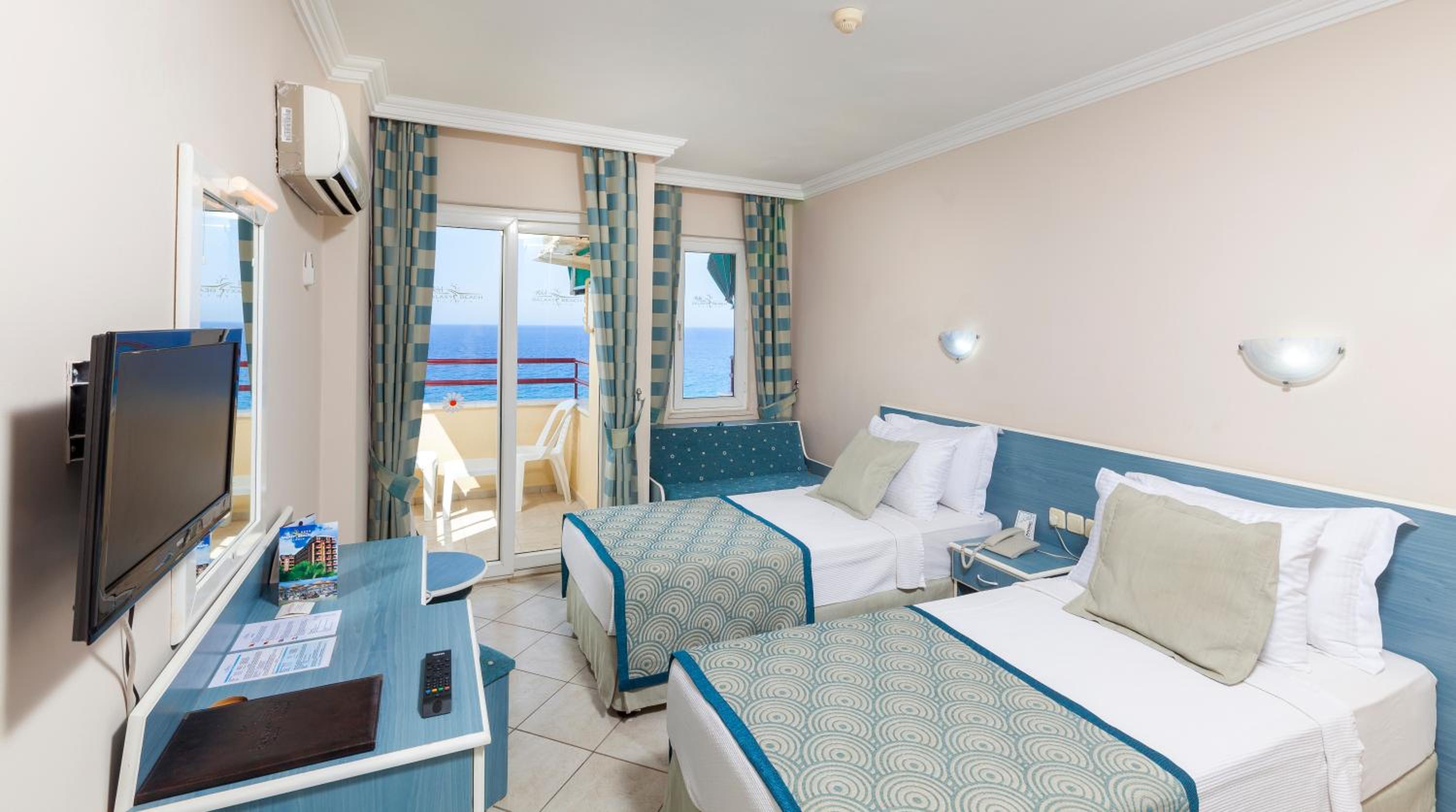 The Galaxy Beach Hotel Alanya offers a luxurious experience with its own private beach, sauna, and Turkish bath.