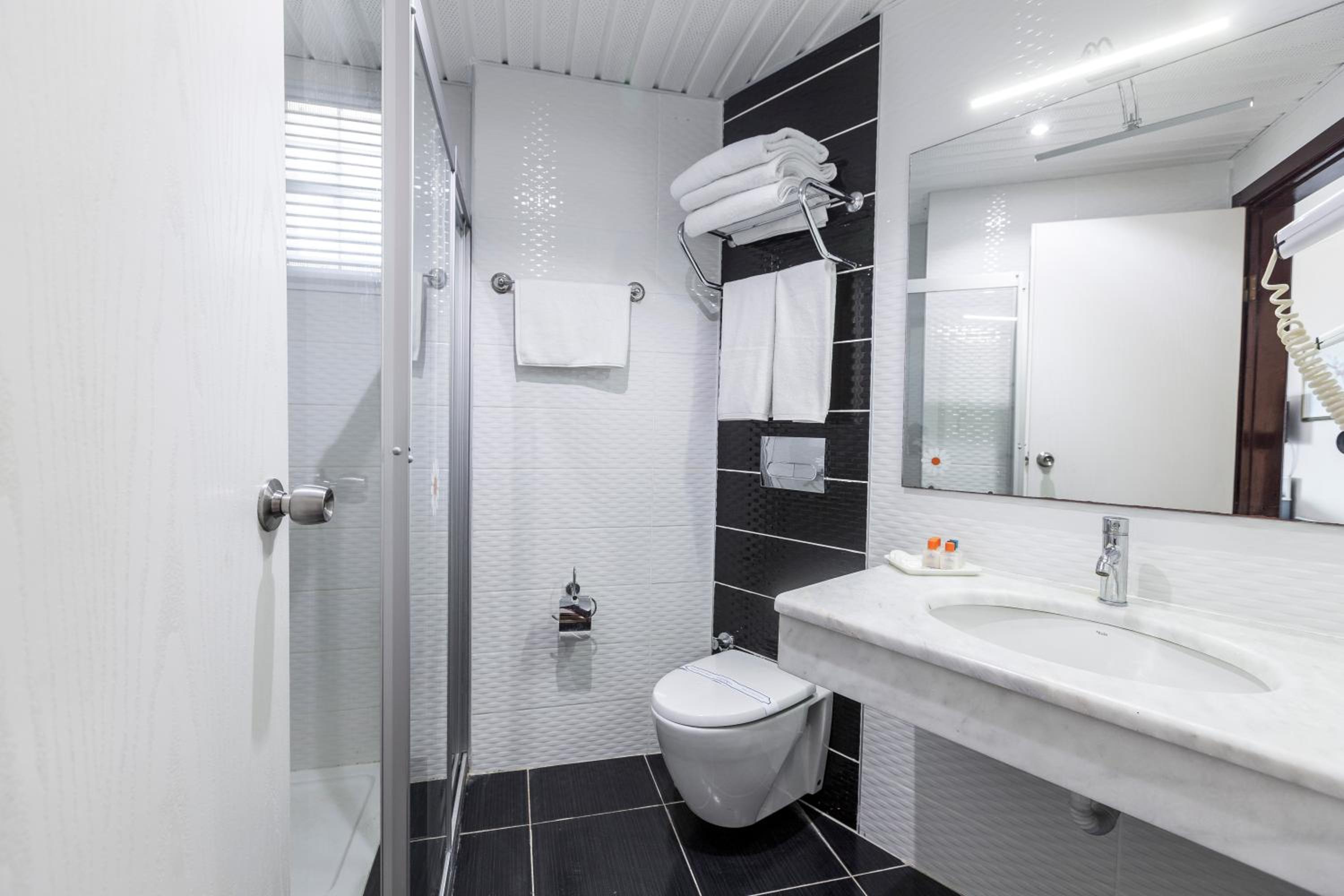 Nu au parcare,deși scrie ca au. Parchezi pe unde găsești. Nu exista locuri de parcare. în fata sau spatele hotelului. TV cu 5 programe si diagonala mica,sub 80.. Dacă nu ești turc nu ai ce sa vezi. Mancarea aceeași cam în fiecare zi. Pește nu am primit decât o data în 10 zile,deși la un alt hotel de 3 stele am primit de 2 ori,în aceeași perioada. În fiecare zi orez,paste și ardei umpluți.. Au mai avut cârnați de miel,pe care nu i-am putut manca.Mai dau un fel de șnițele congelate.Mancarea este suficienta,dar ieftina și nu de calitate. Berea,vinul alb și rosu ,de proasta calitate,ca și sucurile de la dozator. Salatele sunt chiar aceleasi în fiecare zi,de genul rosii simple,rosii cu castraveți,rosii cu ceapa,castraveți simpli,rosii cu varza alba,rosii cu varza mov,salata verde,,porumb,ceapa simpla,tatzichi,,rosii cu ardei iute și murături..Nu am văzut salate de vinete sau alte salate sofisticate,ca la alte hoteluri. Mai ales umbrelele sunt niste rable.Plaja are sezlonguri și umbrele insuficiente și uzate. În apa marii sunt pietre. Fără pantofi speciali,nu poți sa intri. Pe plaja au. gratuit sucuri,apa,ceai,cafea de la dozator. Restul cu bani. Internetul la hotel se plateste,3 euro pe zi. Jumătate din turiști sunt români.