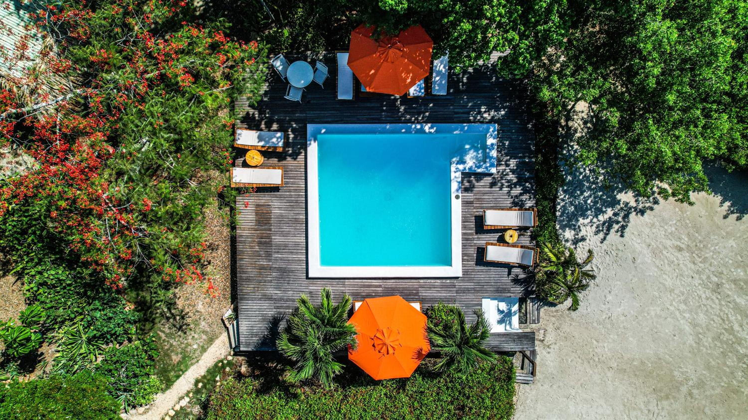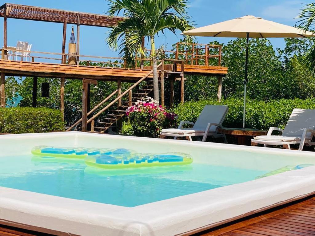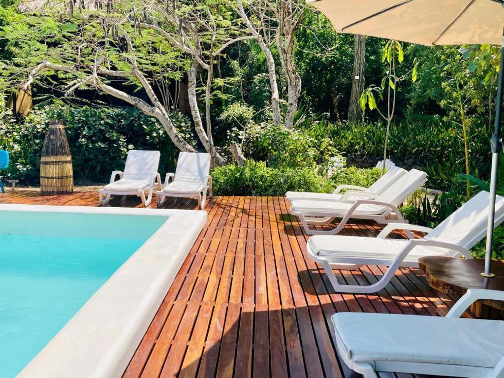 Sam hotel ma ekologiczny charakter, jest położony w bardzo cichym i spokojnym miejscu, idealnym do wypoczynku i odcięcia się od miejskiego zgiełku. To doskonała przestrzeń do relaksu, wyciszenia i kontaktu z naturą. Przy hotelu znajduje się niewielki basen, w którym można się schłodzić. Dostępne są leżaki z materacami oraz parasole, więc bez problemu można znaleźć sobie zacienione miejsce. Podczas naszego pobytu gości było niewielu, co dodatkowo potęgowało poczucie spokoju i prywatności. Domki bungalowowe są rozproszone, a my mieliśmy bungalow na piętrze z pięknym, wysokim widokiem na morze — widoki były naprawdę zachwycające.