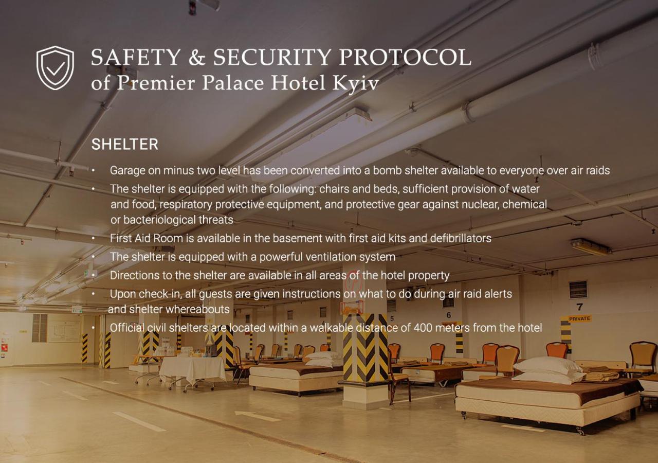 The hotel has a bomb shelter on -2 level, equipped with a powerful ventilation system, chairs and beds, sufficient provision of water and food, respiratory protective equipment, and protective gear against nuclear, chemical, or bacteriological threats.