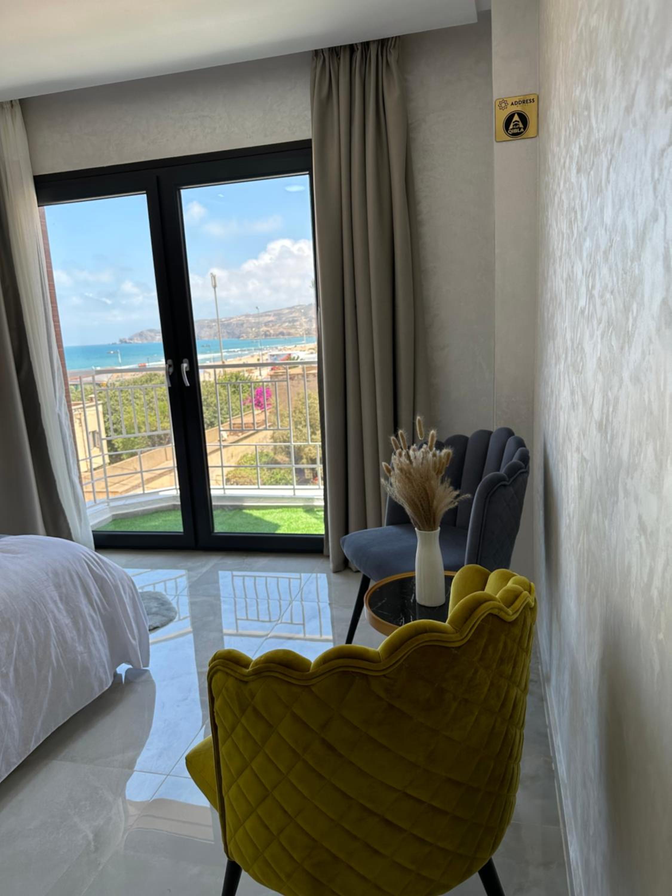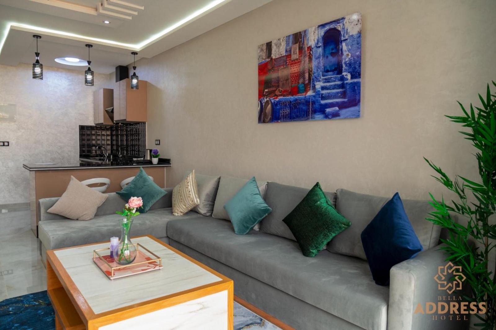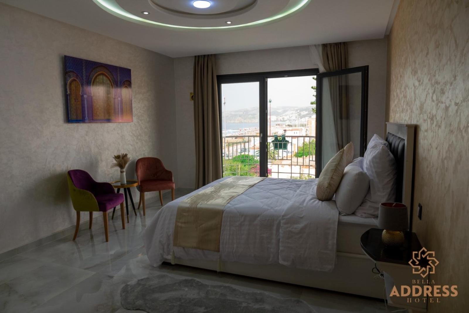Bella Address Hotel Beach in Saidia offers 4-star air-conditioned rooms with balconies, free WiFi, and modern amenities like flat-screen TVs and safety deposit boxes.