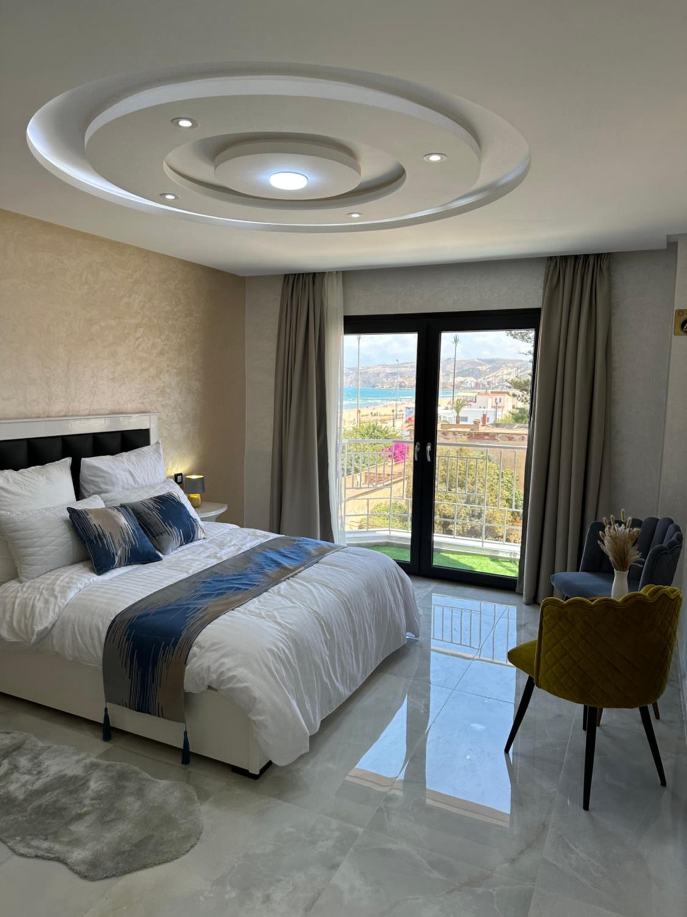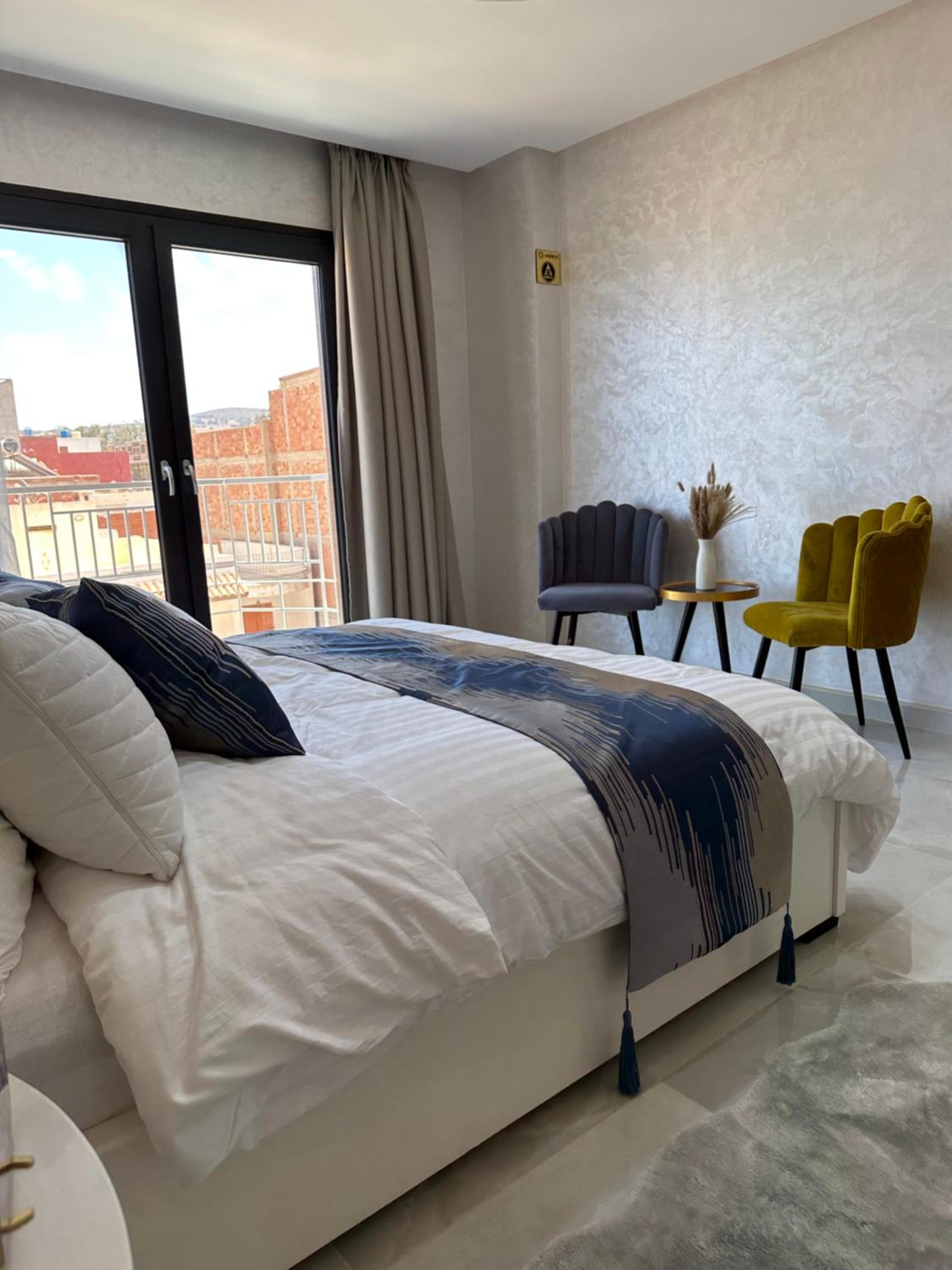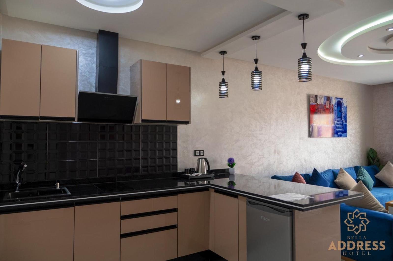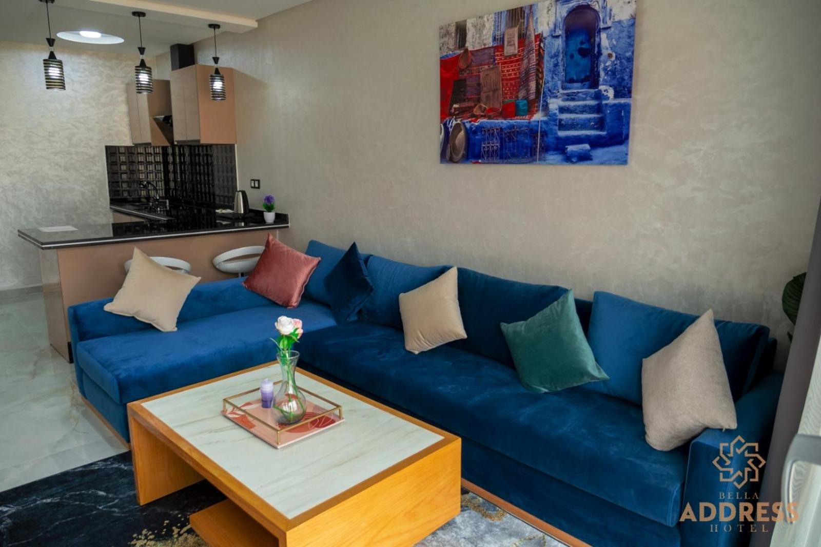 Bella Address Hotel Beach in Saidia offers 4-star air-conditioned rooms with balconies, free WiFi, and modern amenities like flat-screen TVs and safety deposit boxes.