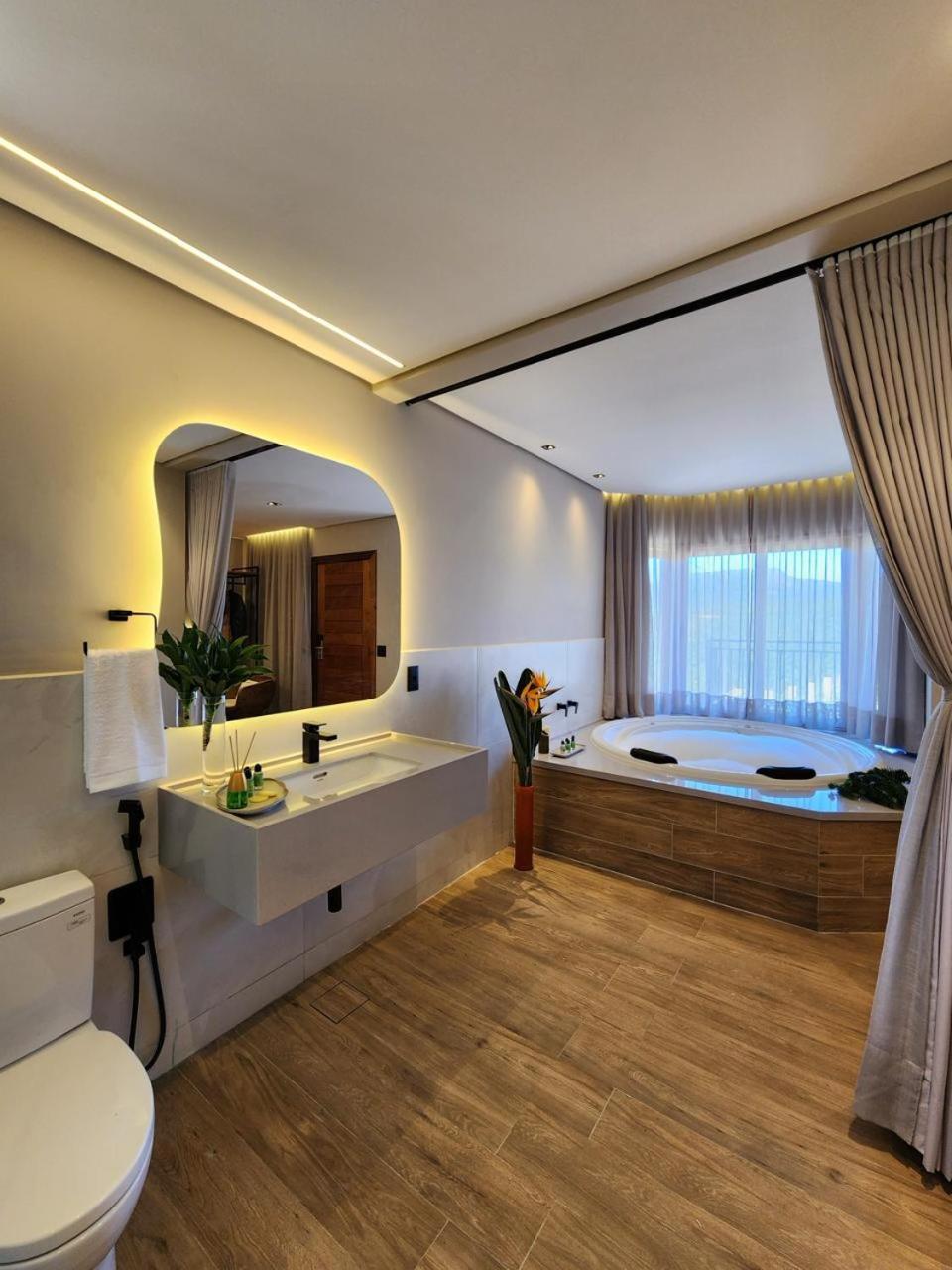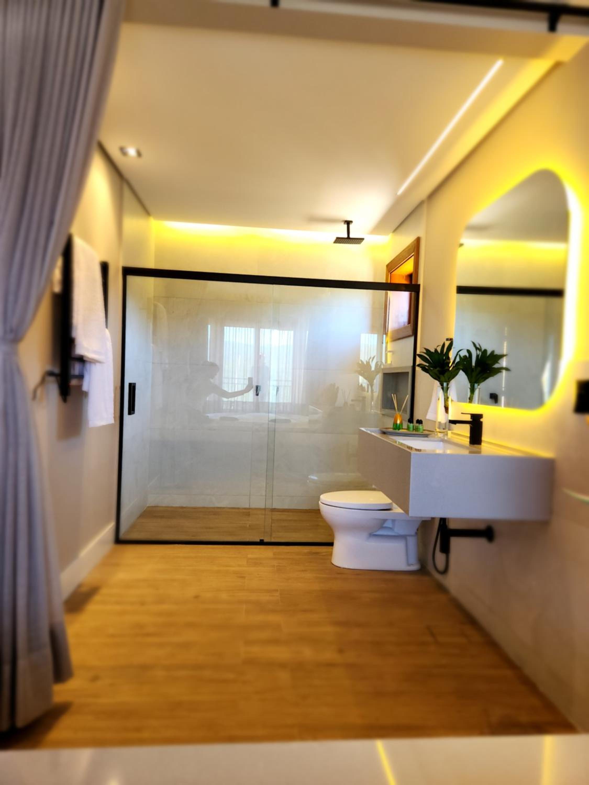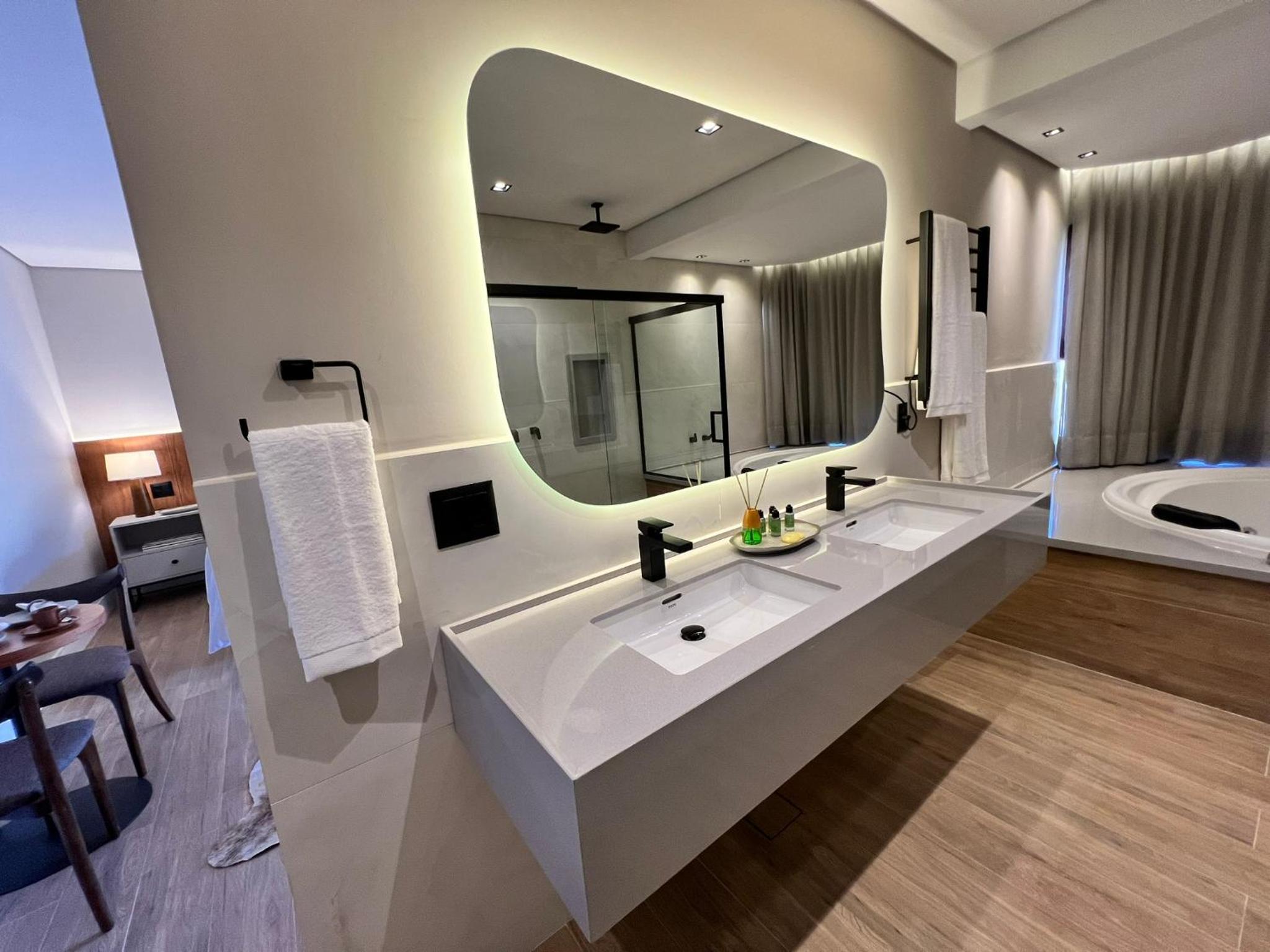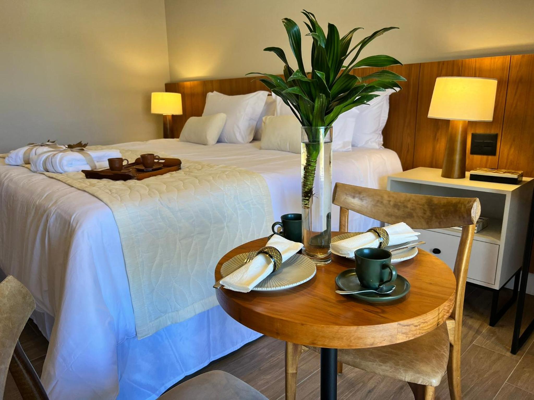 Reservamos três quartos e todos estavam impecáveis: organizados, limpos e muito bem cuidados. As camas e os travesseiros são extremamente confortáveis, e os quartos contam com ducha de qualidade, banheira, ar-condicionado e TV.