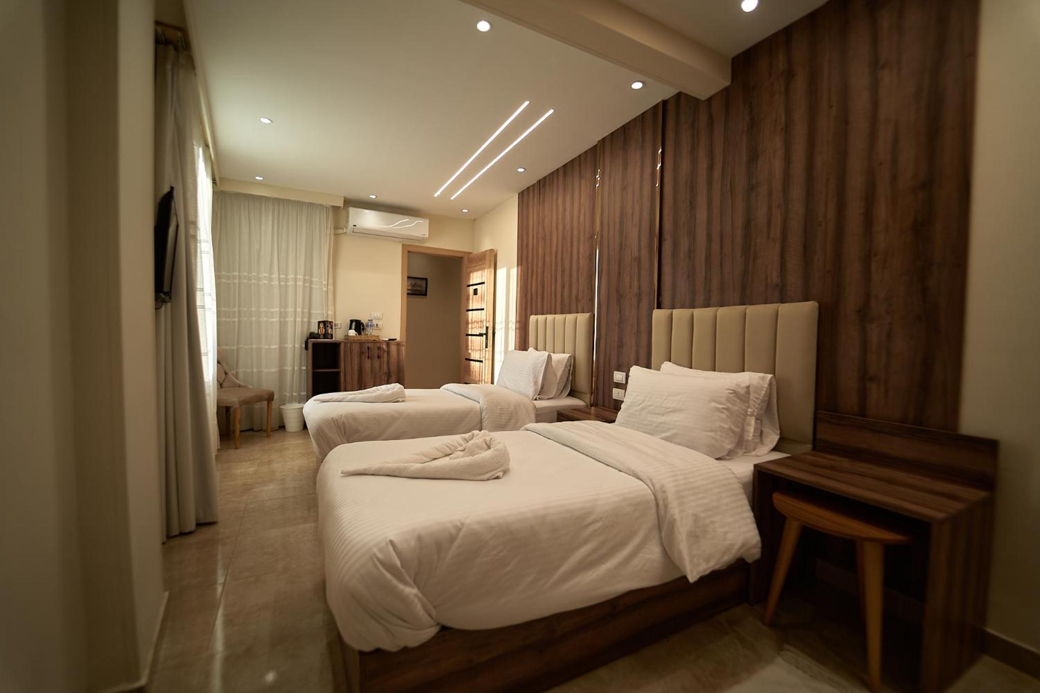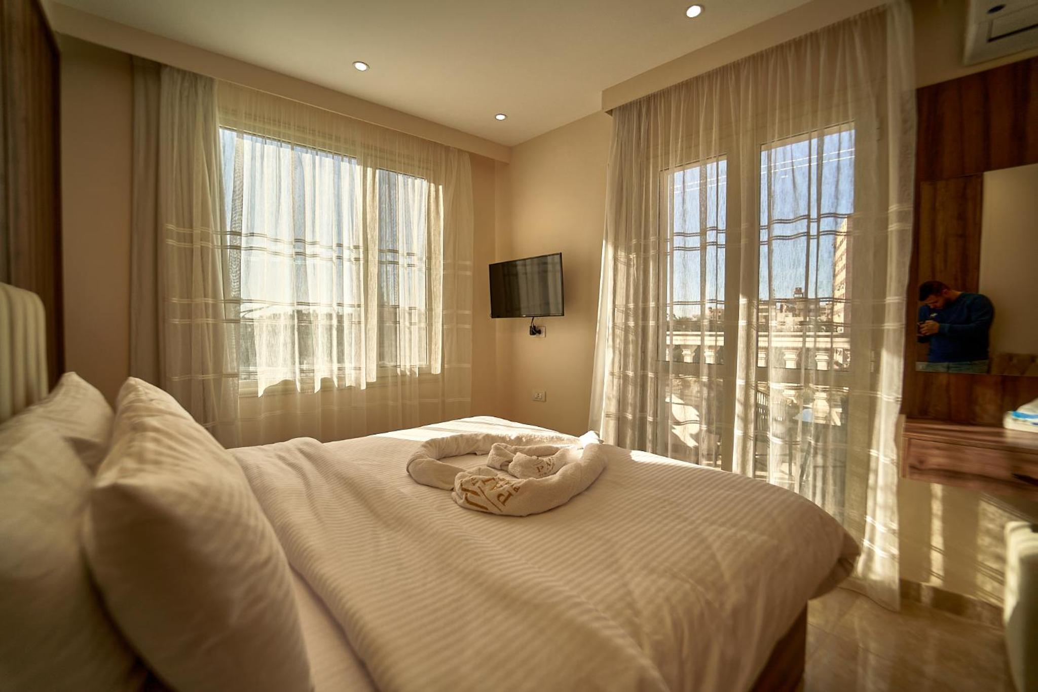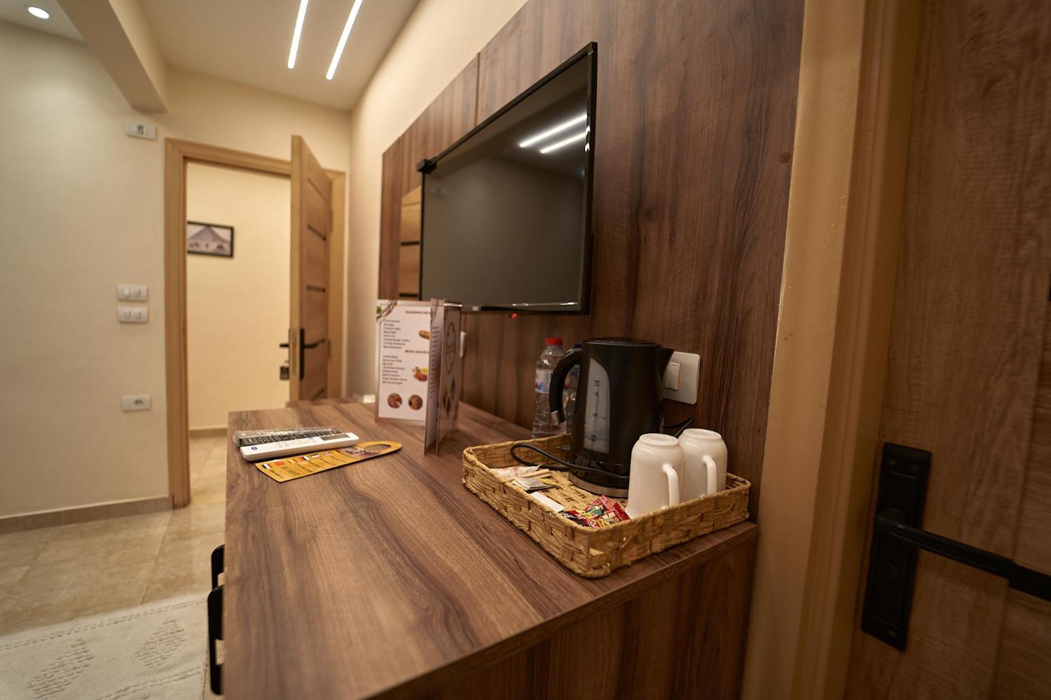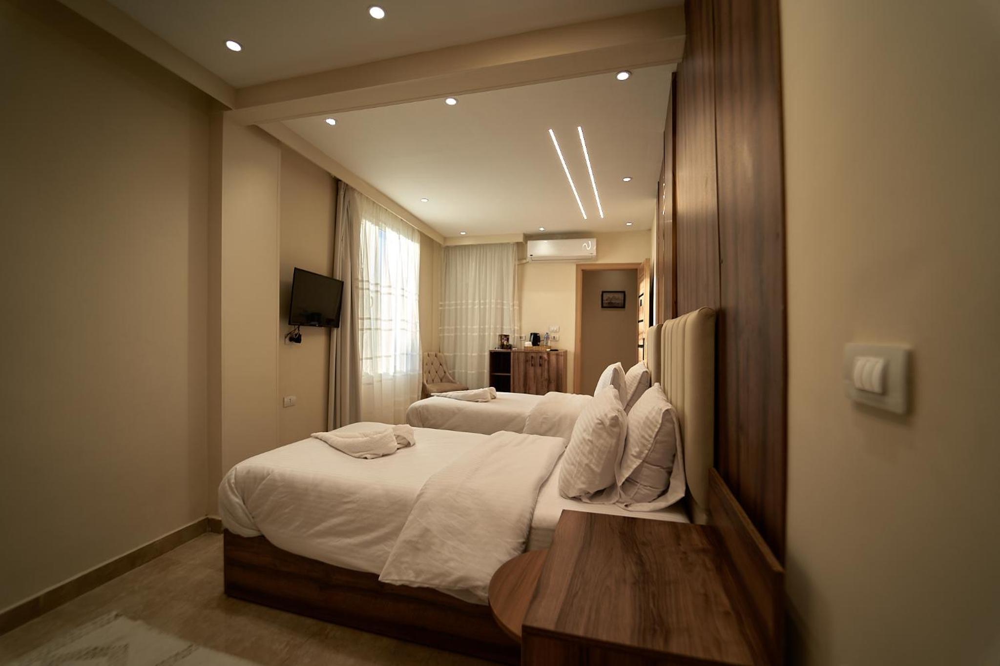 Beautiful hotel, it opened recently as Ahmed told us. Ahmed is the owner of the hotel and we were lucky enough to meet him. He helped us with everything we wanted to book in terms of tours and attractions. As for the hotel everything was perfect. The room was renovated and modern and it had everything we needed. It was really comfortable and clean as well. Our favourite part of the hotel was the rooftop, where we were having homemade breakfast with the outstanding view of the Pyramids. Location was great as well since we were only 10 minutes away from the pyramids and there were plenty of shops around the hotel. 100% recommended if you ever visit Giza.