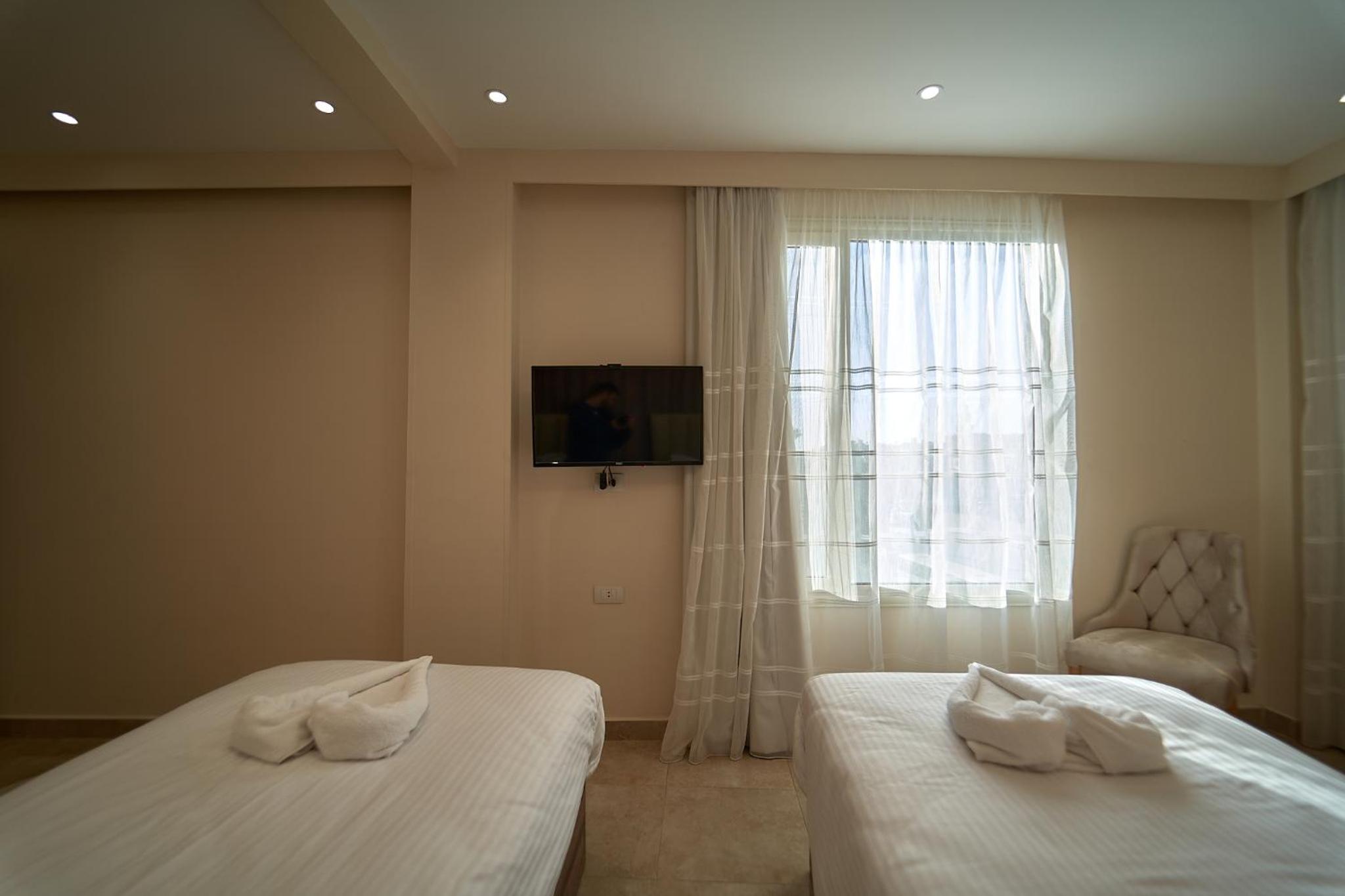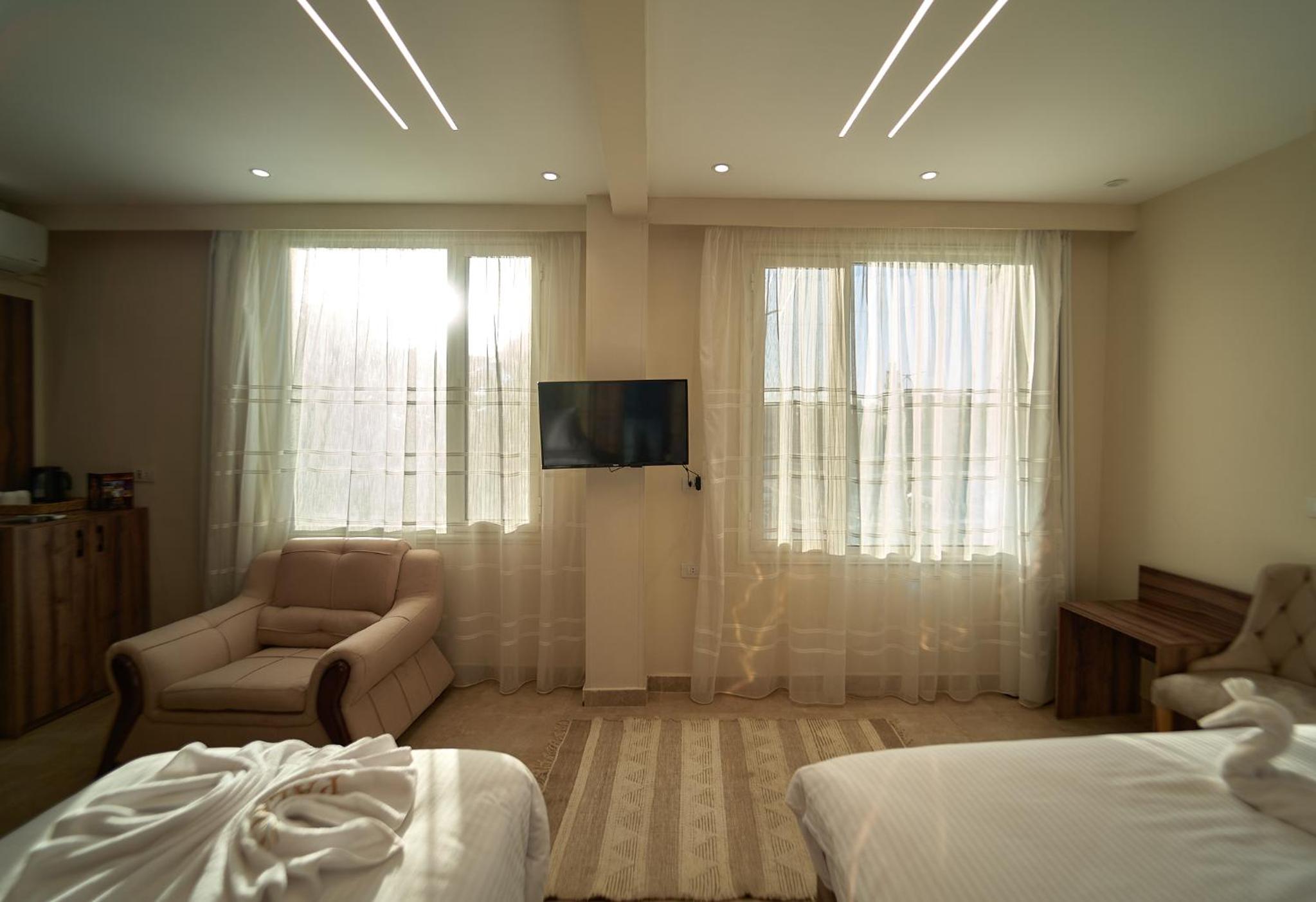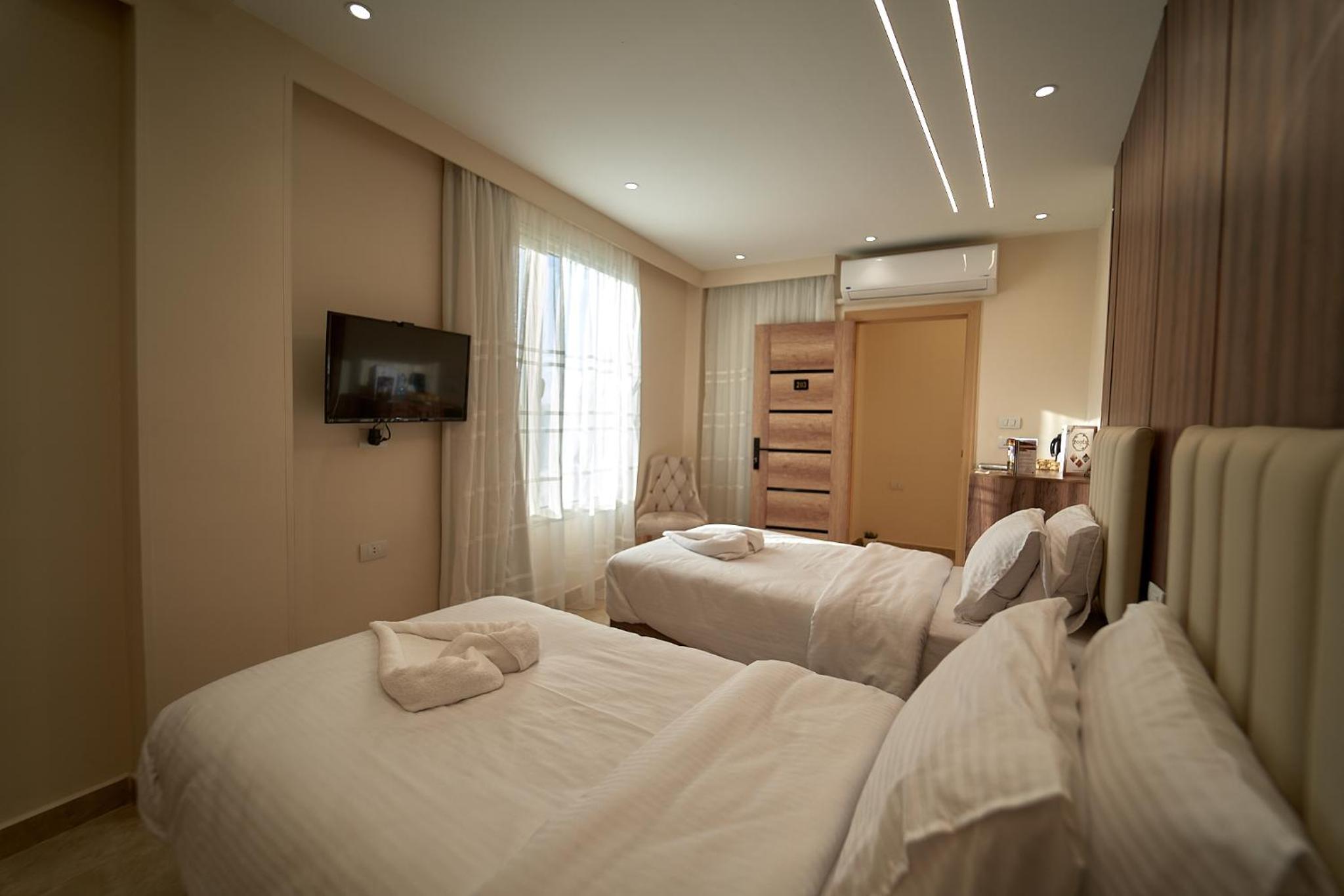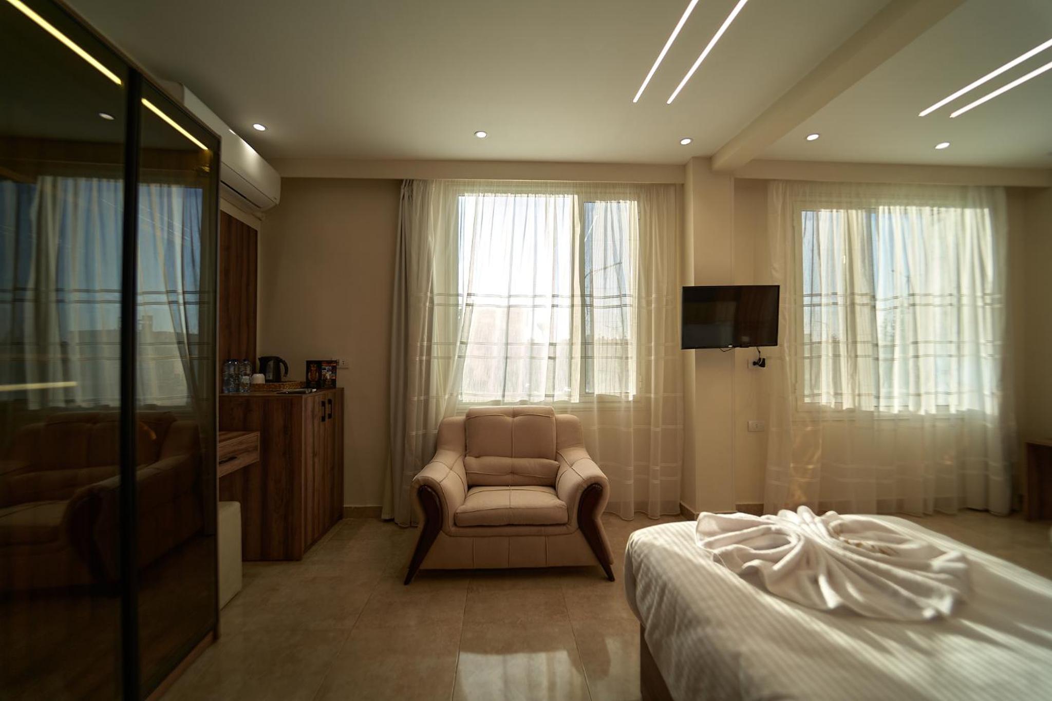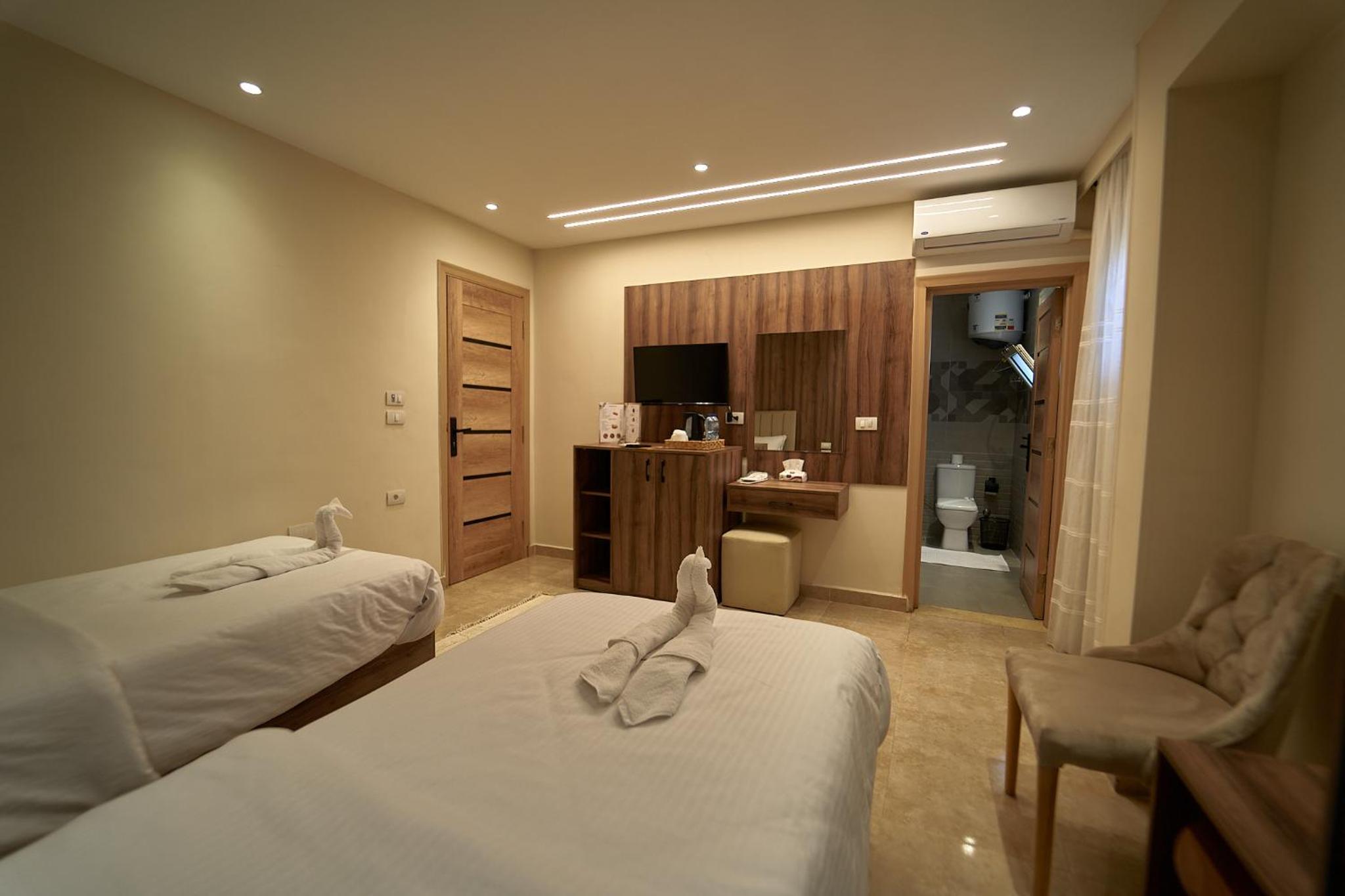 Beautiful hotel, it opened recently as Ahmed told us. Ahmed is the owner of the hotel and we were lucky enough to meet him. He helped us with everything we wanted to book in terms of tours and attractions. As for the hotel everything was perfect. The room was renovated and modern and it had everything we needed. It was really comfortable and clean as well. Our favourite part of the hotel was the rooftop, where we were having homemade breakfast with the outstanding view of the Pyramids. Location was great as well since we were only 10 minutes away from the pyramids and there were plenty of shops around the hotel. 100% recommended if you ever visit Giza.