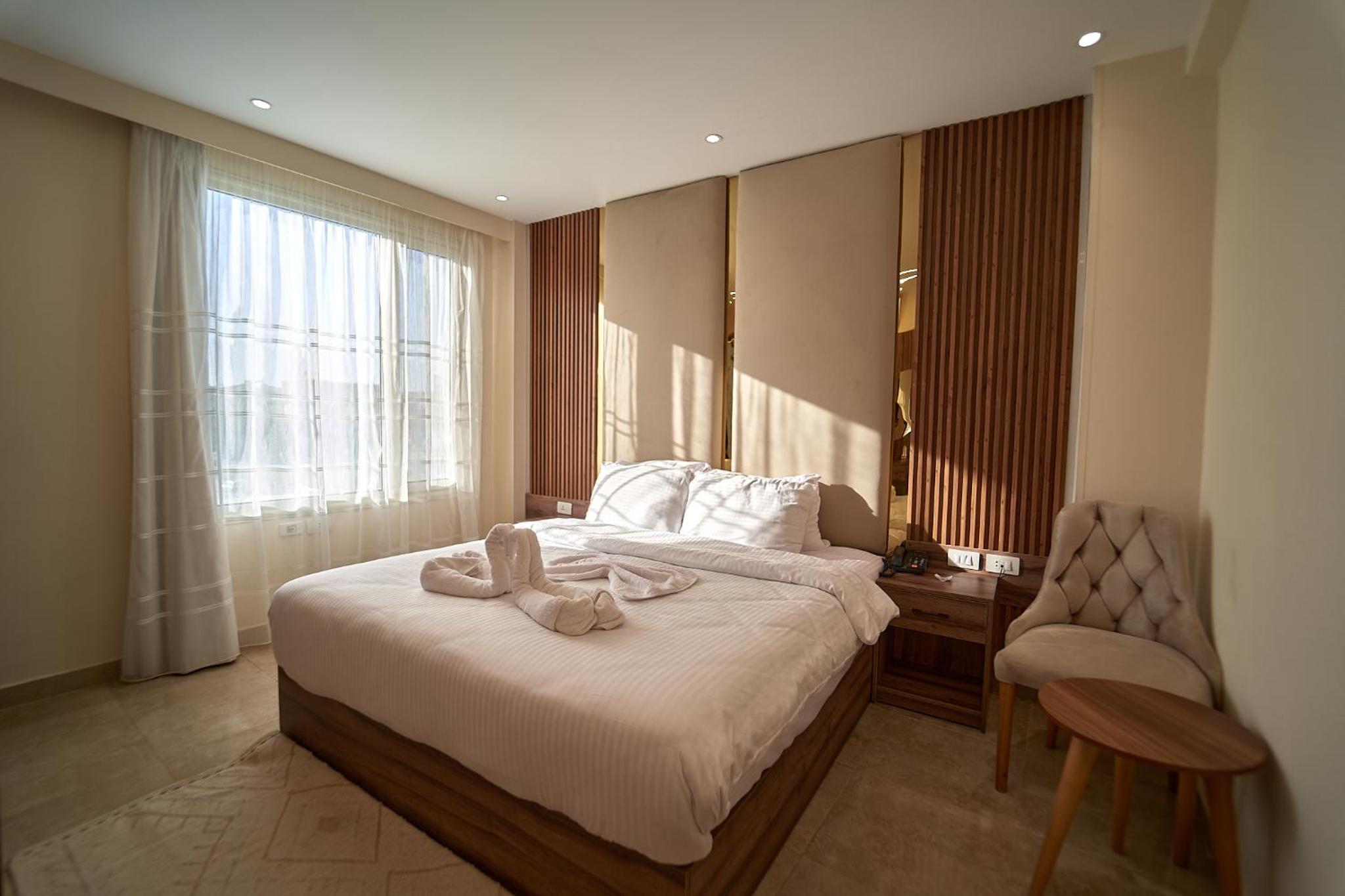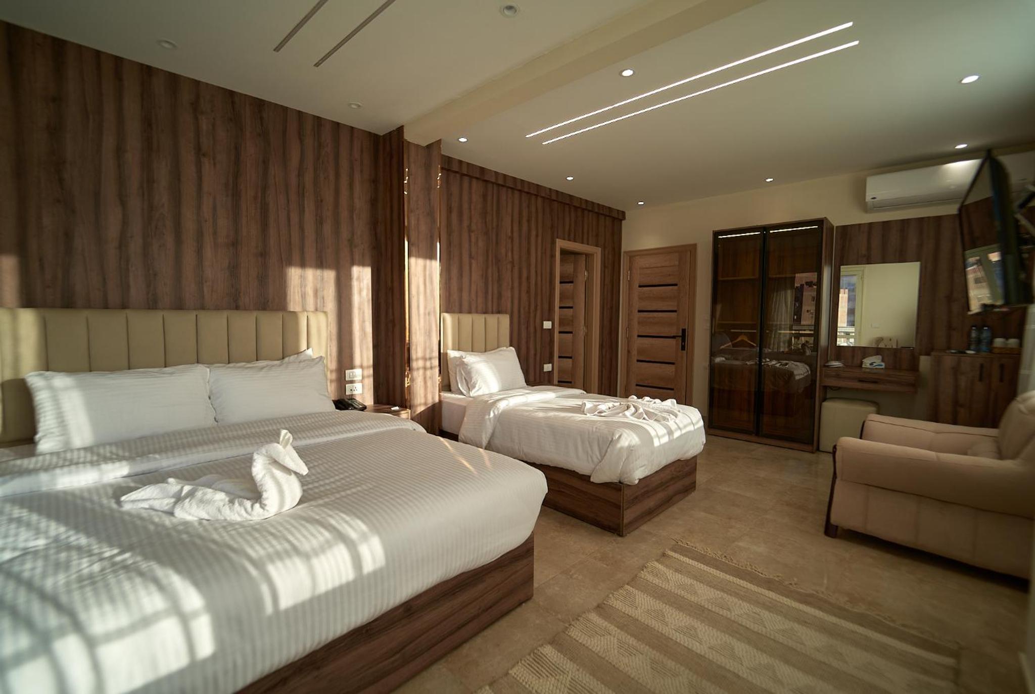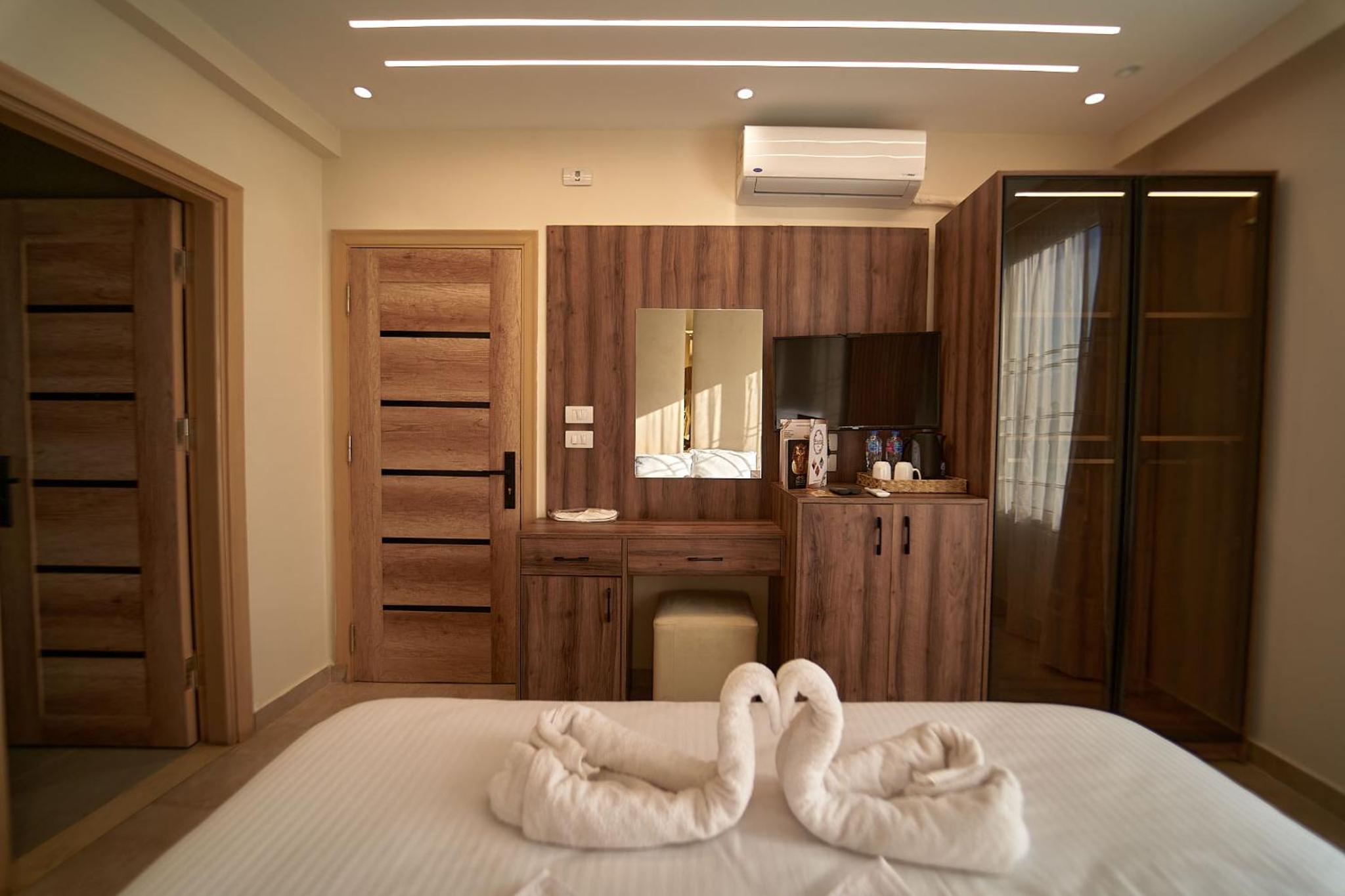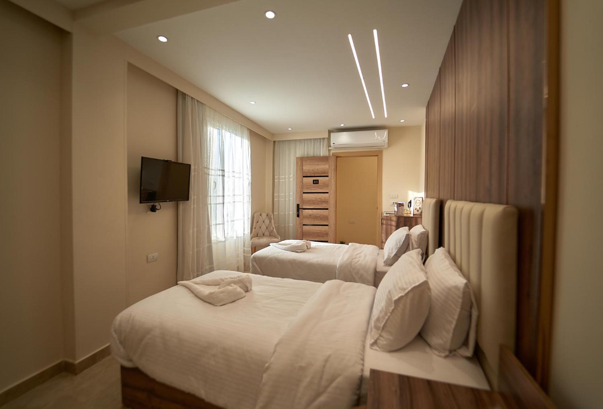 Beautiful hotel, it opened recently as Ahmed told us. Ahmed is the owner of the hotel and we were lucky enough to meet him. He helped us with everything we wanted to book in terms of tours and attractions. As for the hotel everything was perfect. The room was renovated and modern and it had everything we needed. It was really comfortable and clean as well. Our favourite part of the hotel was the rooftop, where we were having homemade breakfast with the outstanding view of the Pyramids. Location was great as well since we were only 10 minutes away from the pyramids and there were plenty of shops around the hotel. 100% recommended if you ever visit Giza.