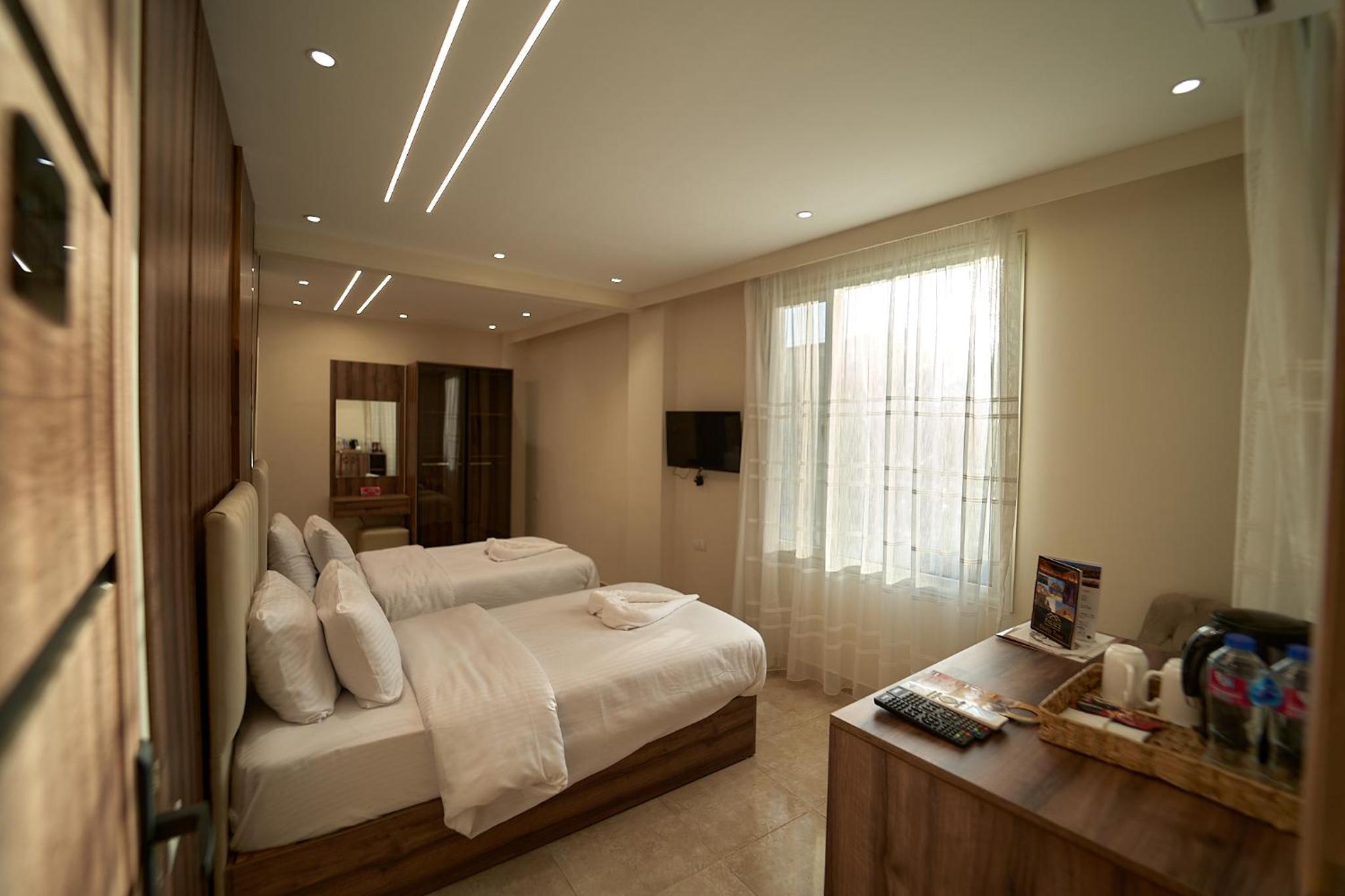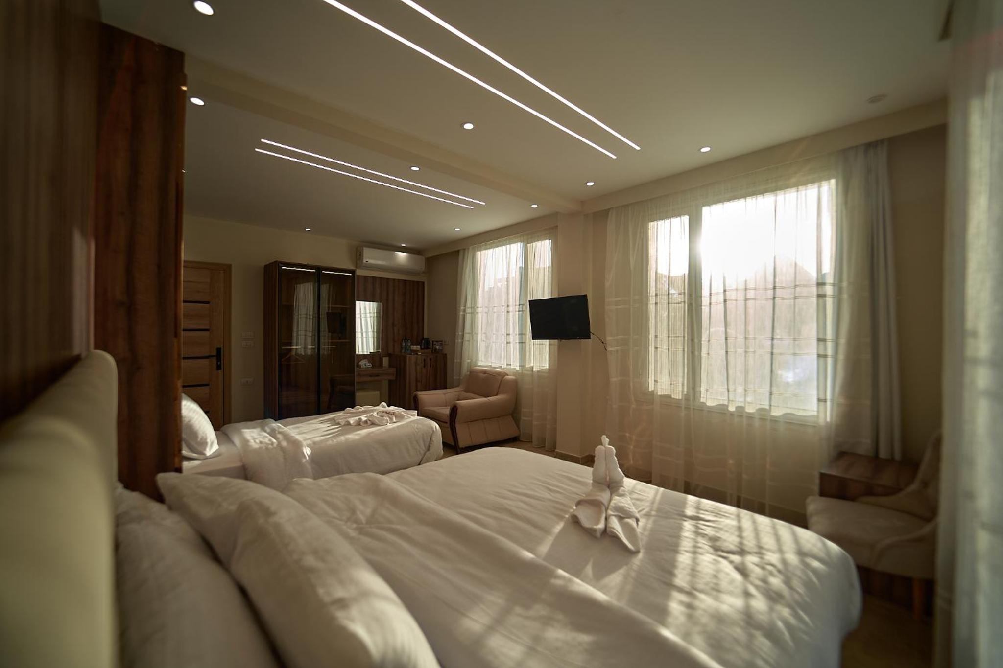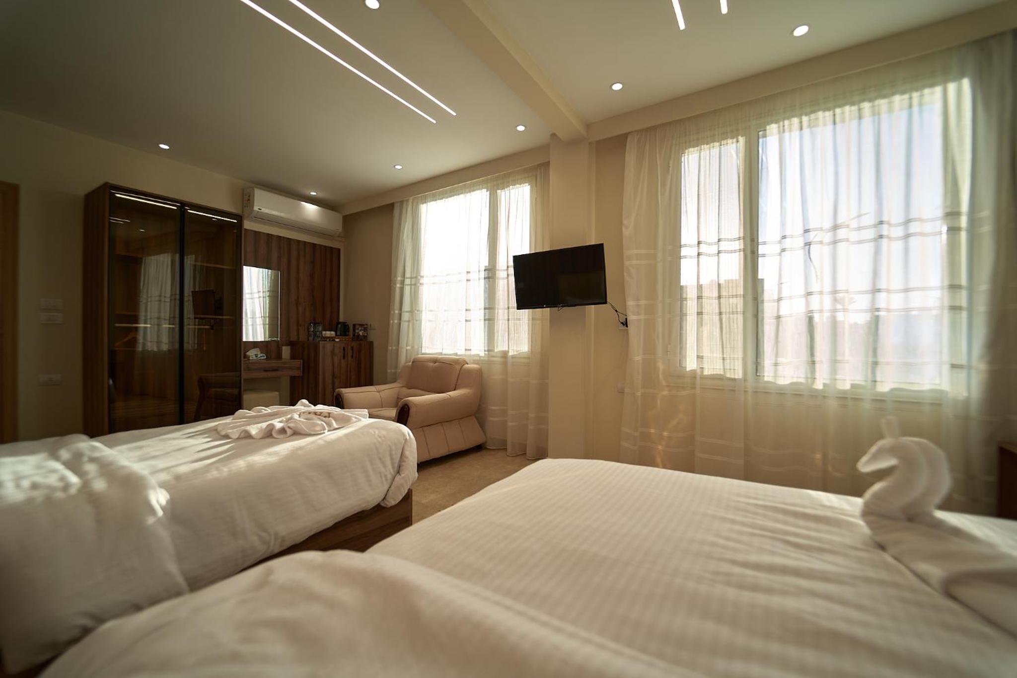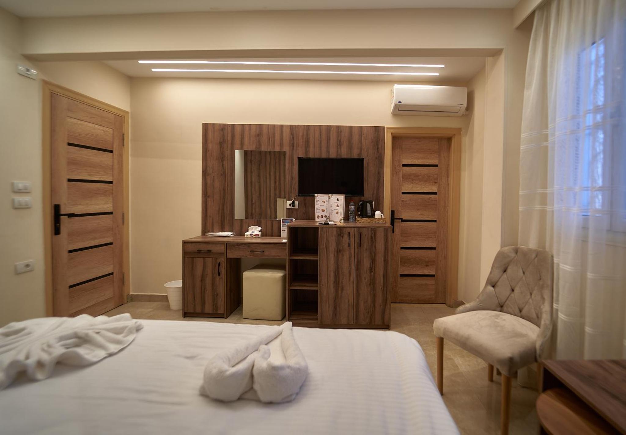 Beautiful hotel, it opened recently as Ahmed told us. Ahmed is the owner of the hotel and we were lucky enough to meet him. He helped us with everything we wanted to book in terms of tours and attractions. As for the hotel everything was perfect. The room was renovated and modern and it had everything we needed. It was really comfortable and clean as well. Our favourite part of the hotel was the rooftop, where we were having homemade breakfast with the outstanding view of the Pyramids. Location was great as well since we were only 10 minutes away from the pyramids and there were plenty of shops around the hotel. 100% recommended if you ever visit Giza.