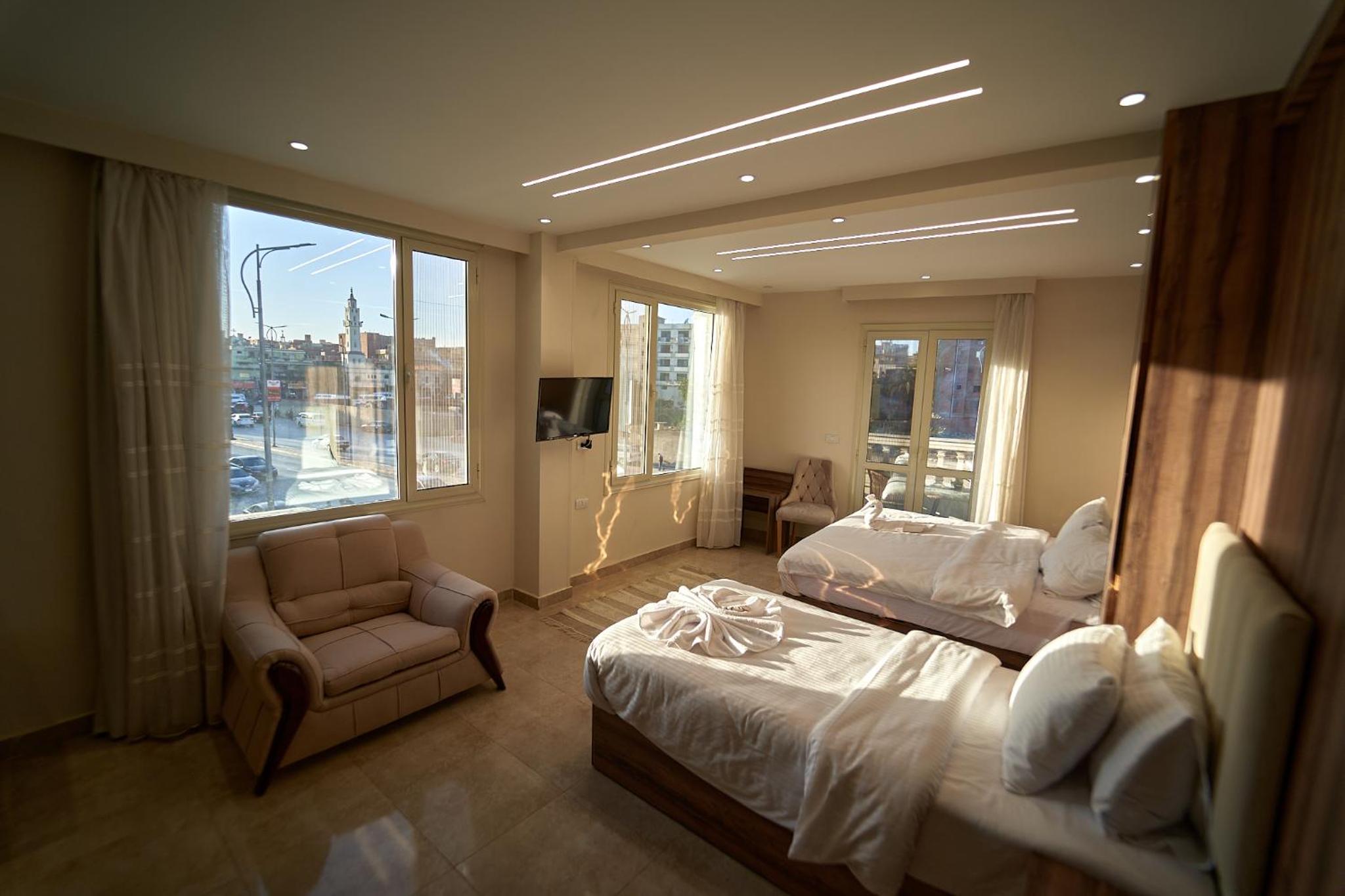 Located just 1.7 km from the Great Sphinx, The Palace Pyramids Hotel offers a terrace with breathtaking views of the iconic Giza Pyramids. Enjoy a morning coffee or an evening cocktail while taking in the mesmerizing sights.