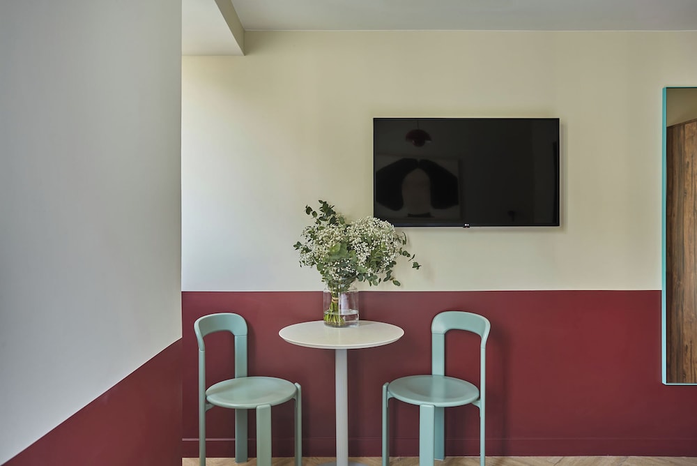 Very convenient location. Clean room, nice staff, washing machine was great to have on a hot summer day, and small kitchen a plus for eating in with food bought from French bakeries.