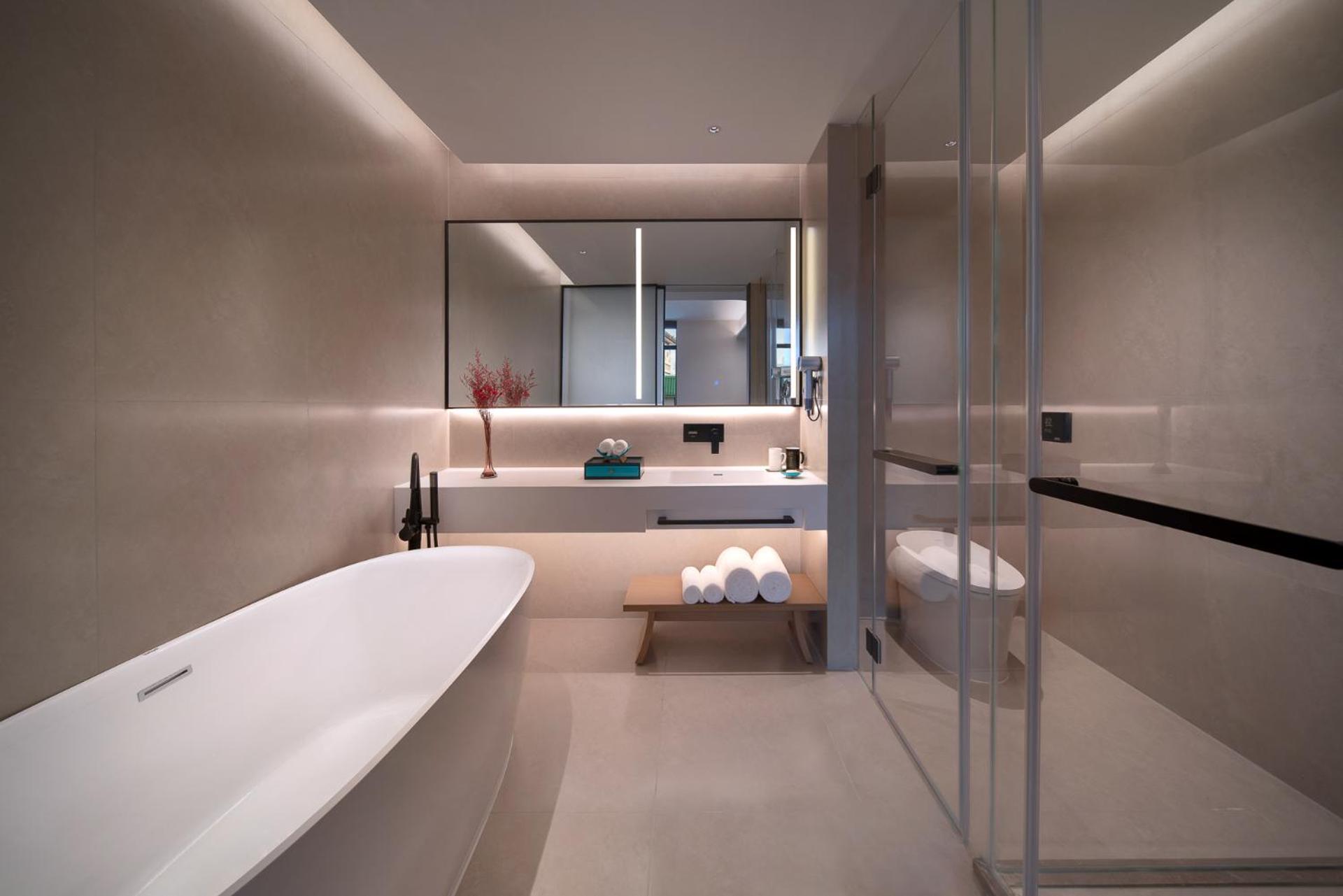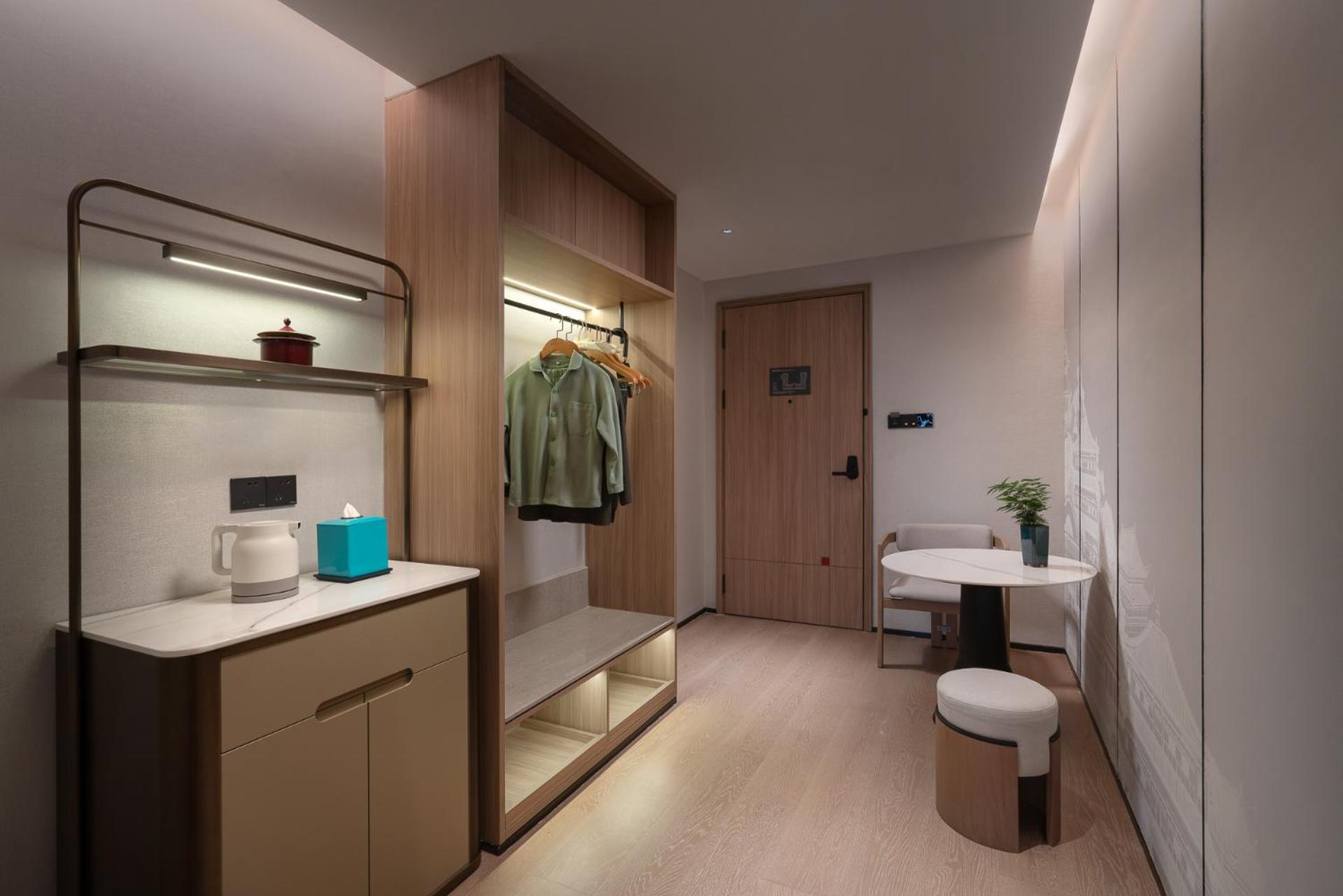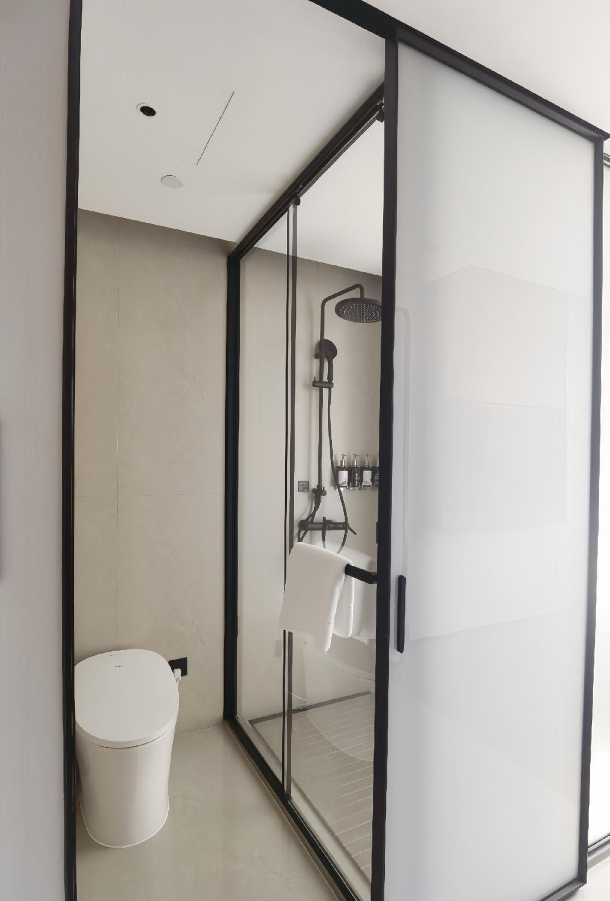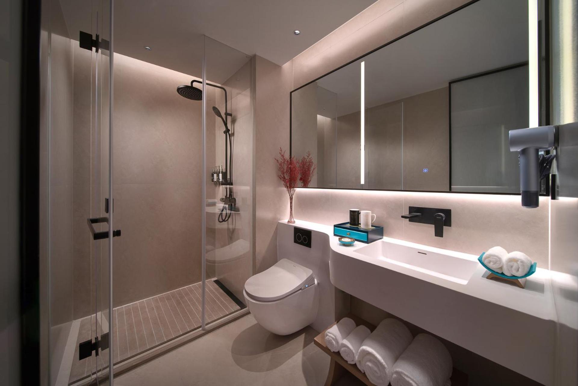A few small things could be improved. There was only one small roll of toilet paper in the room, which might not be enough even for a one-night stay. The bed was about 1.9 m long, which may feel short for taller guests. Soundproofing could also be better, as we could hear the upstairs kids jumping at night. All curtains and lights are controlled electronically, which is very modern but may not suit everyone.