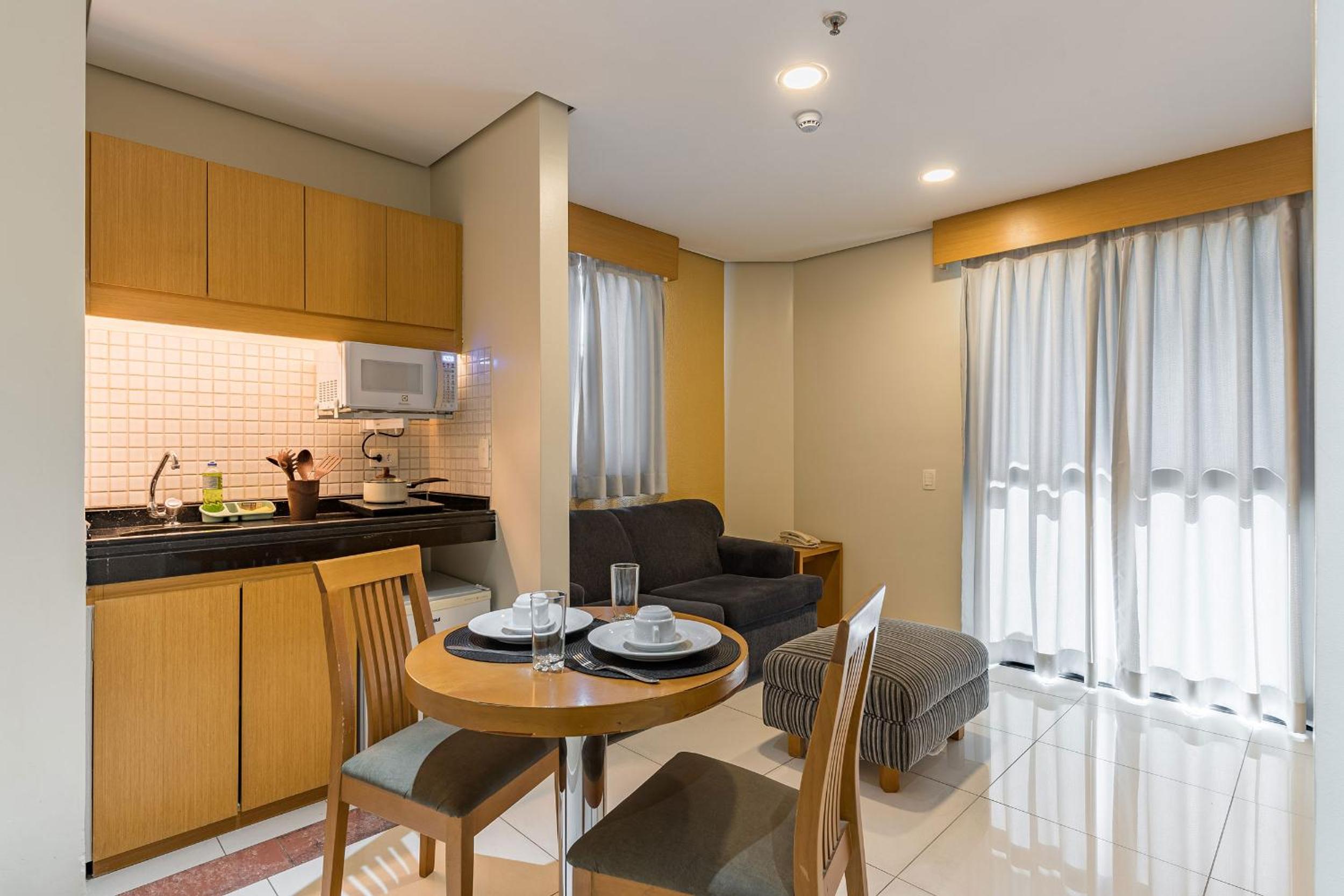 Relax in the air-conditioned 1-bedroom aparthotel equipped with a cable flat-screen TV, fully equipped kitchenette, and cozy living room. Unwind in the sauna or seek assistance from the 24-hour front desk.