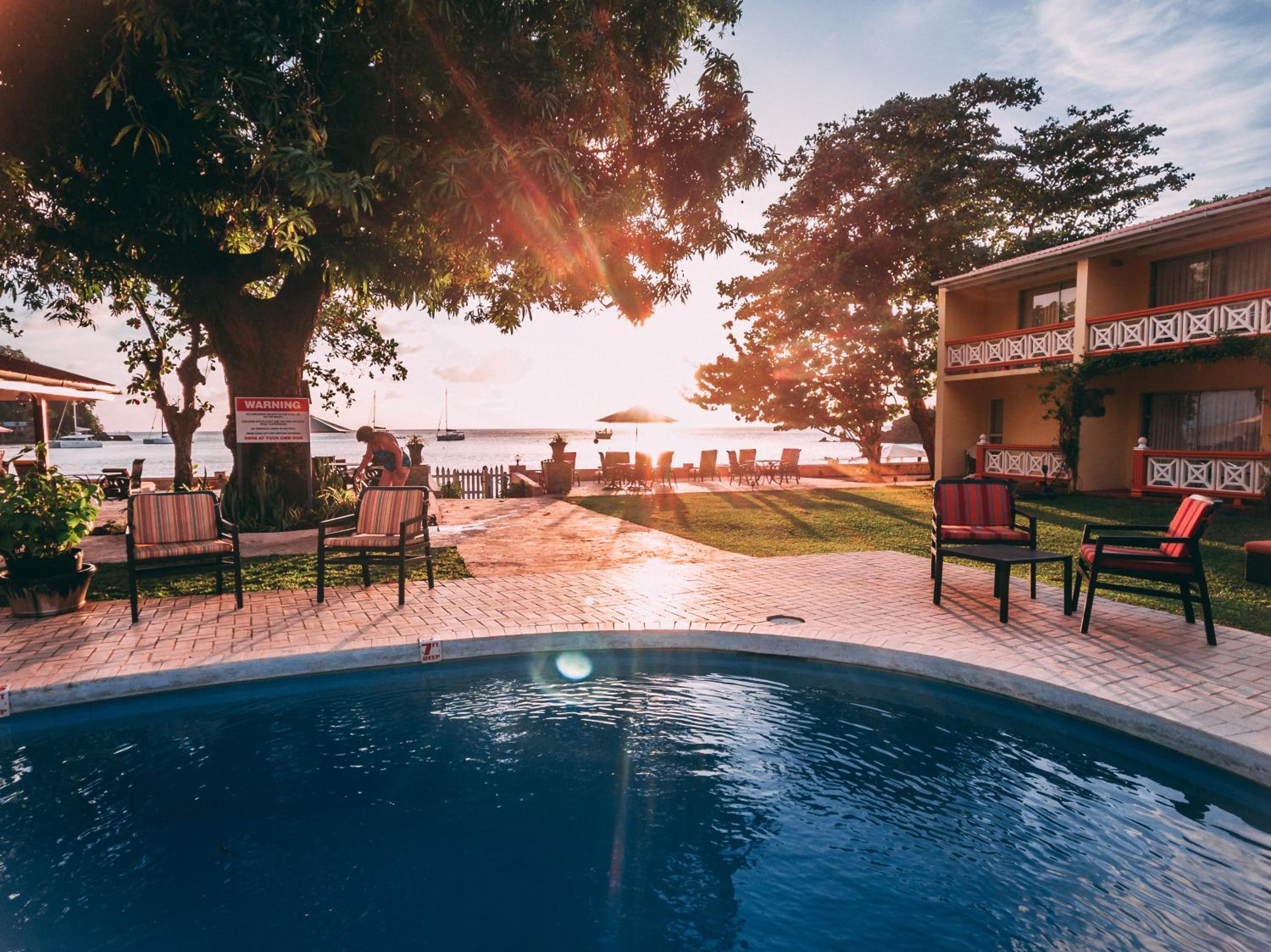 We were hugely disappointed that early each morning the beach is completely lined with umbrellas, lounge chairs, drink carts etc. by vendors and filled with cruise ship travelers who are taxied there from the ships moored in Kingstown. Therefore, the beach was extremely loud and crowded with no room for the hotel guests to enjoy the space.